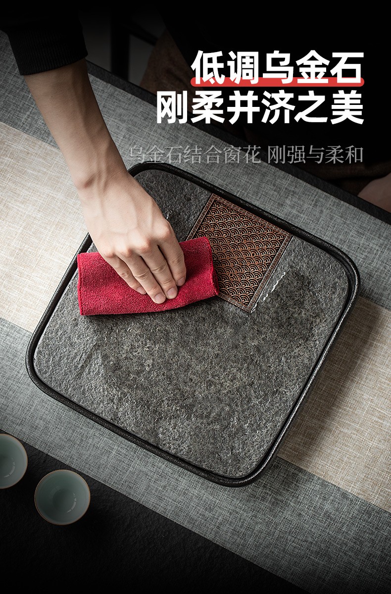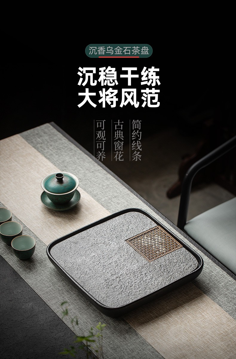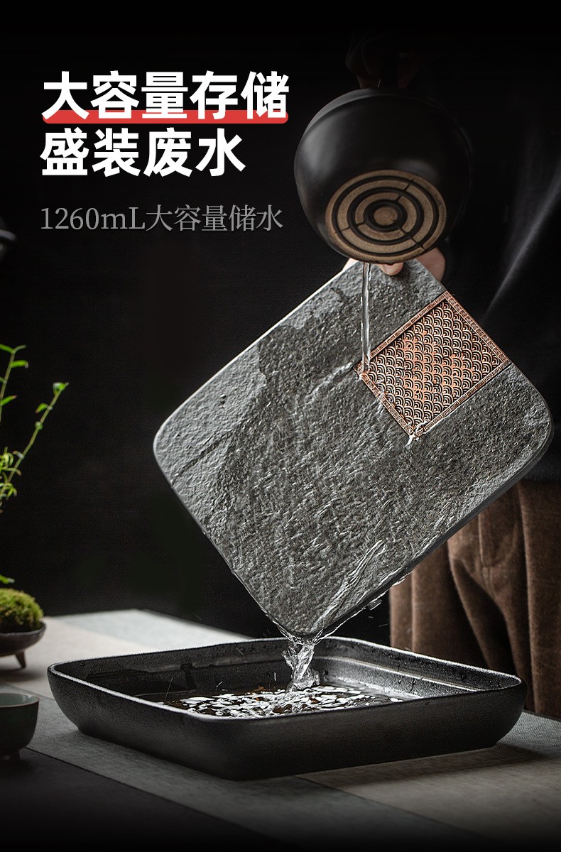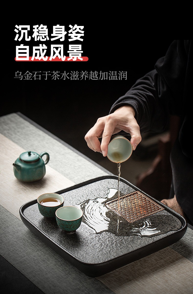 陶瓷乌金石茶盘家用轻奢简约沥水盘石头茶台功夫干泡茶托盘 沉香乌金石茶盘-浪花(二)K3c(英调)