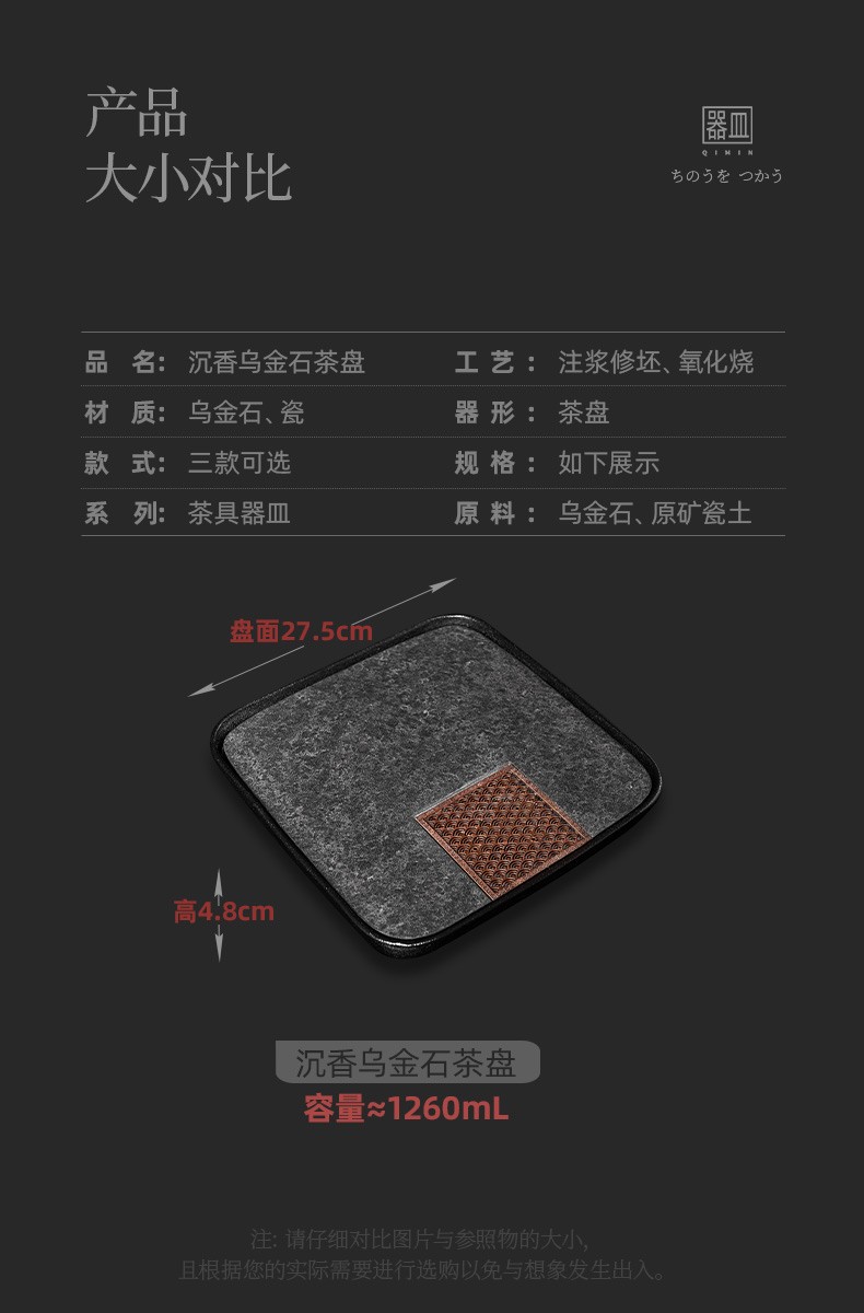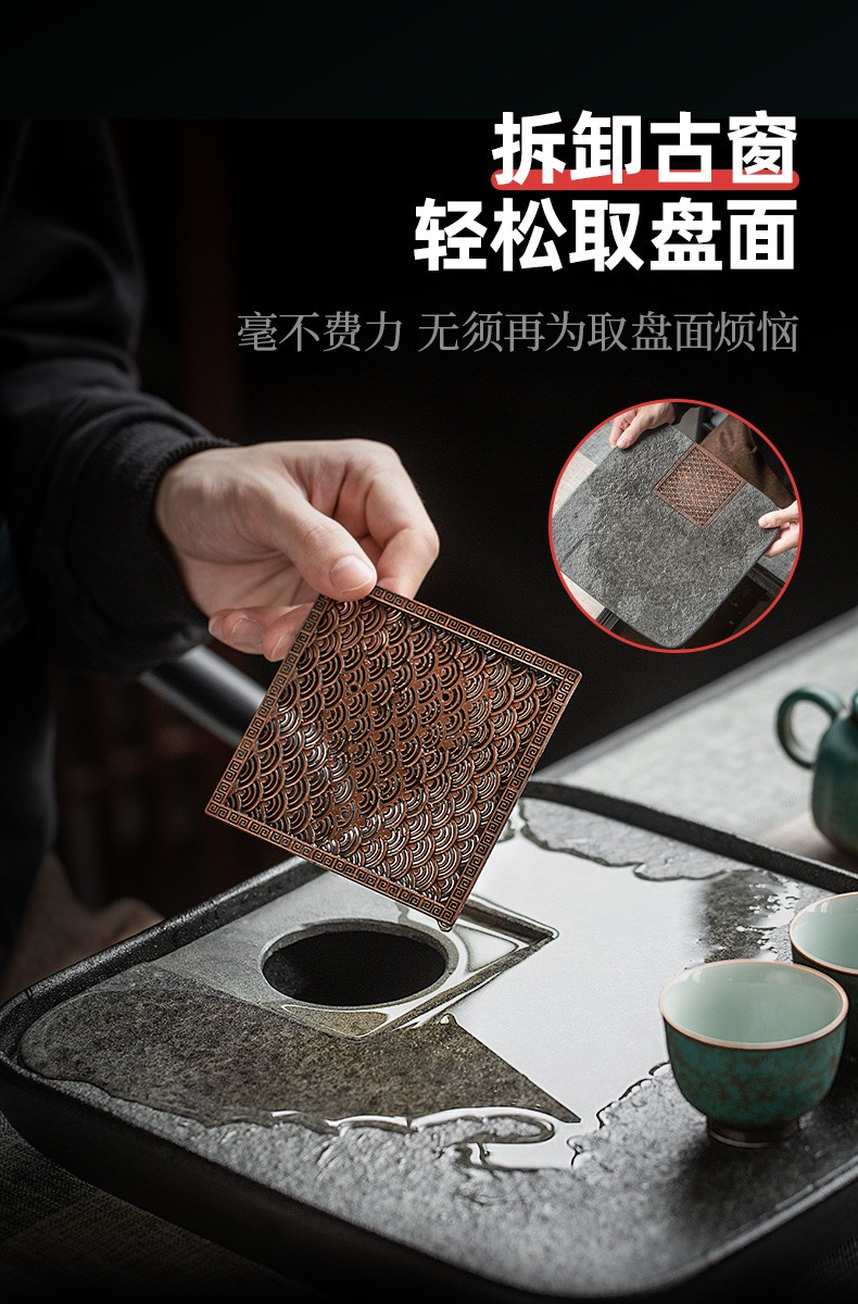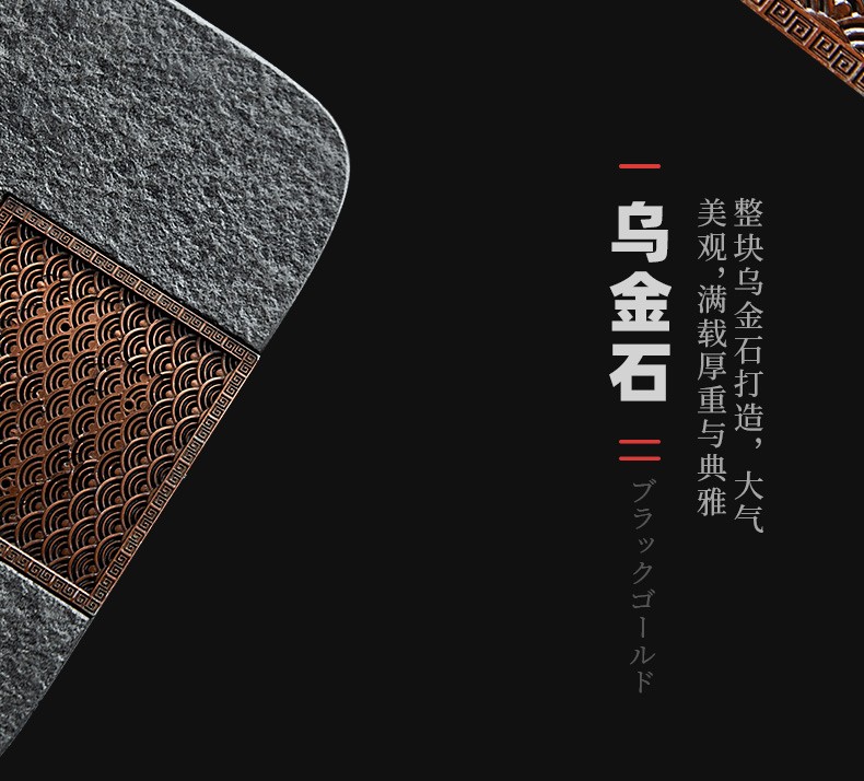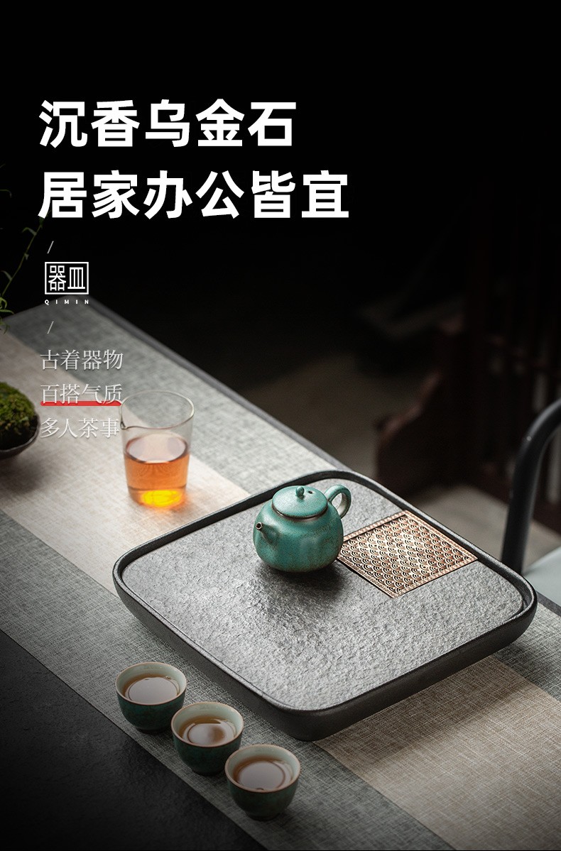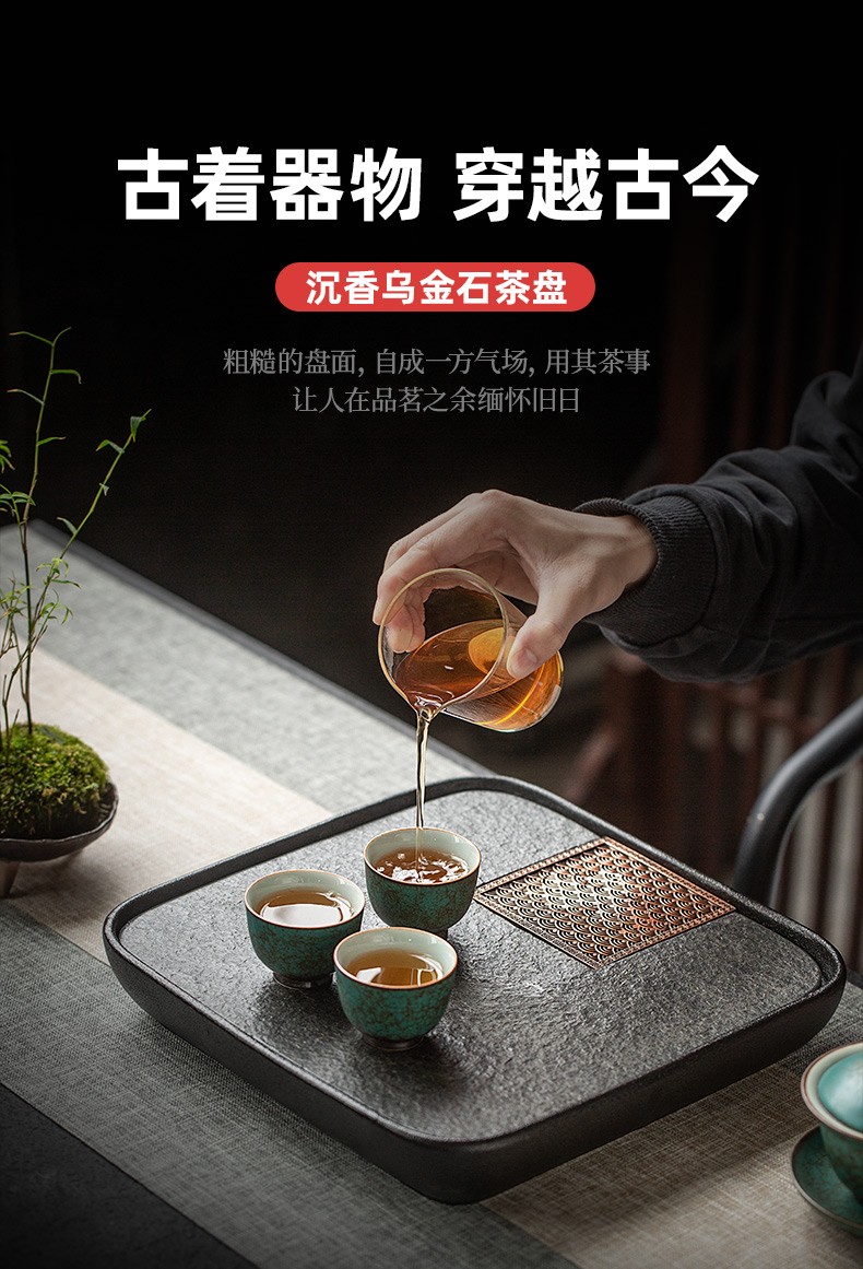 陶瓷乌金石茶盘家用轻奢简约沥水盘石头茶台功夫干泡茶托盘 沉香乌金石茶盘-浪花(二)K3c(英调)