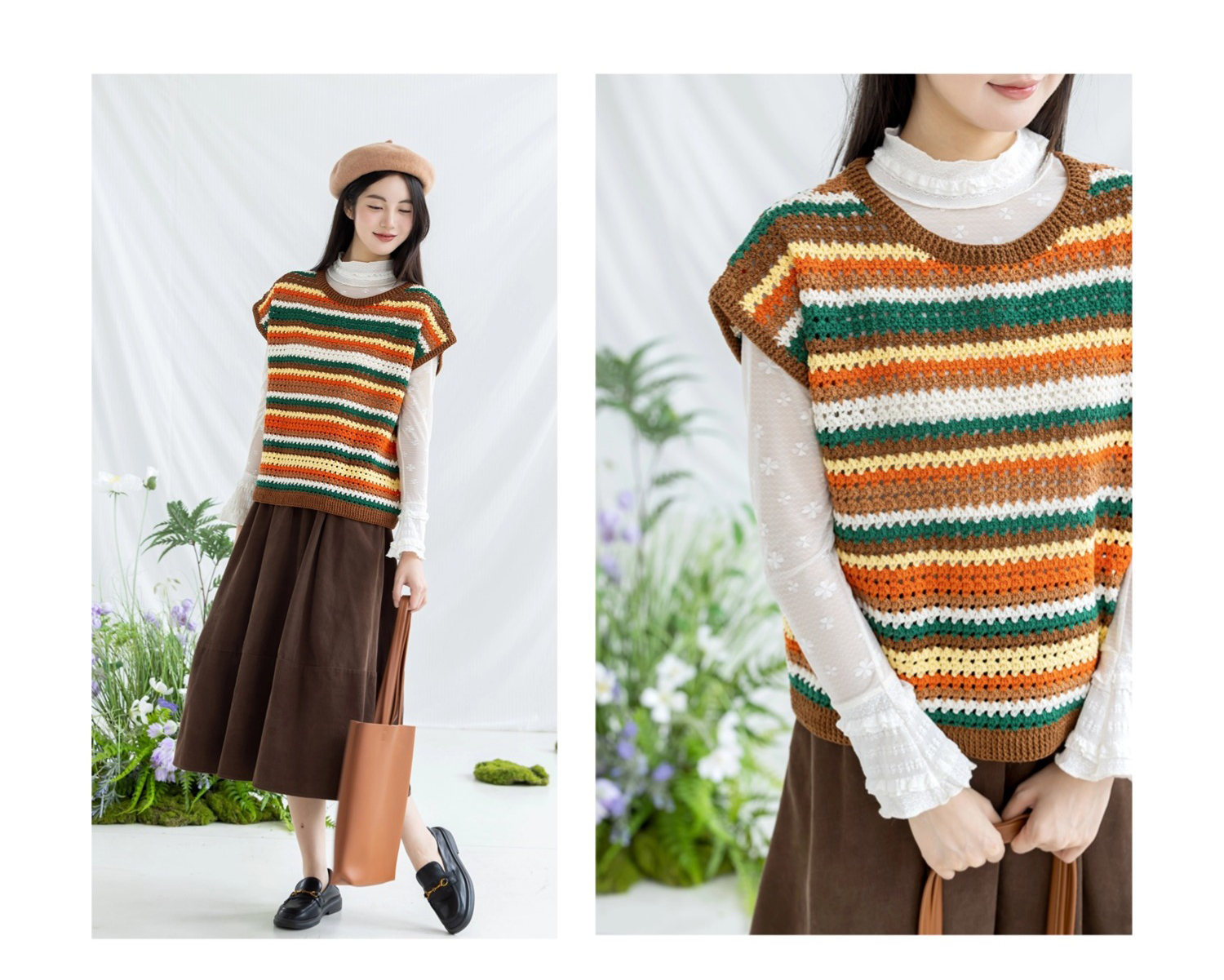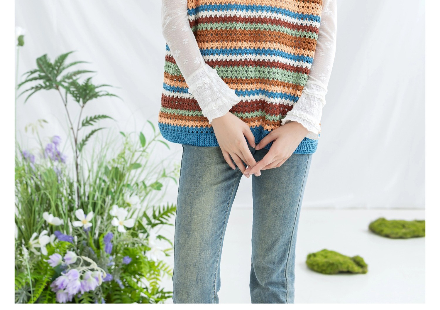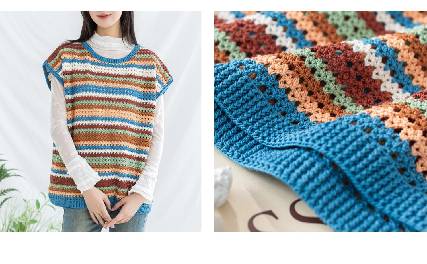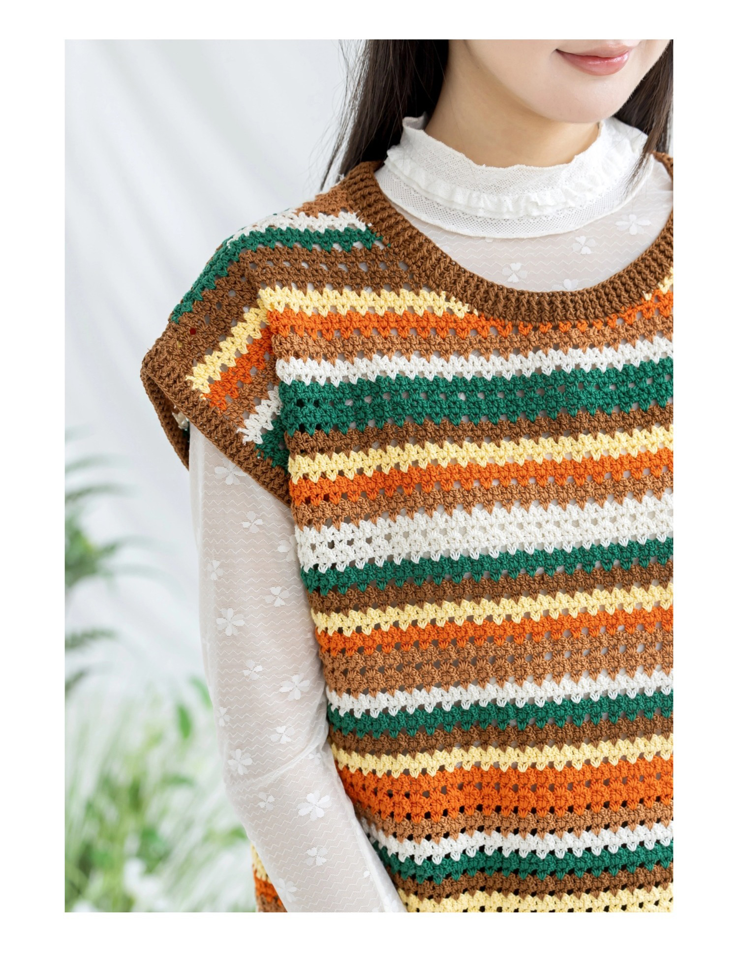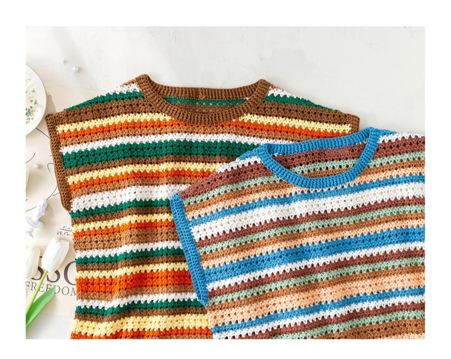 苏苏姐家复古条纹短袖手工diy编织钩针蕾丝线毛线团自制衣服材料包