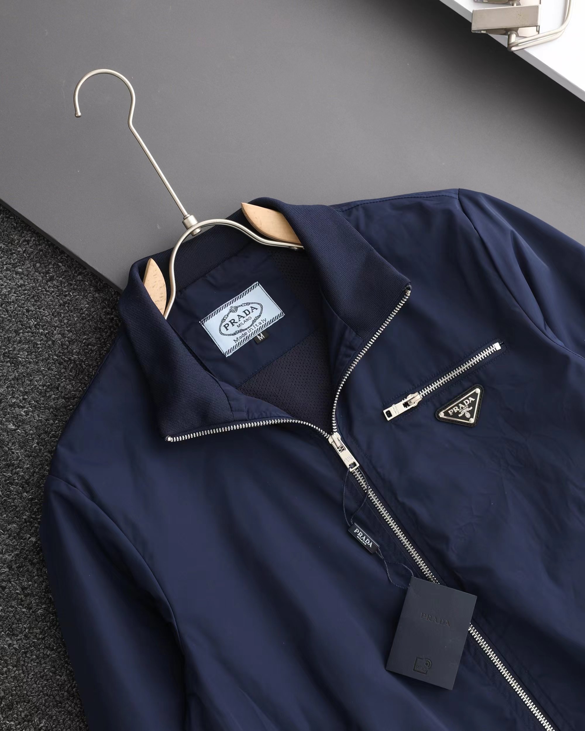 春秋新款立领夹克工装外套 定制再生华达呢面料 多口袋工装设计 b备搭配单品、 满满的暗黑技能风格、胸前口袋倒三角标识 无处不在的羔级感十足!