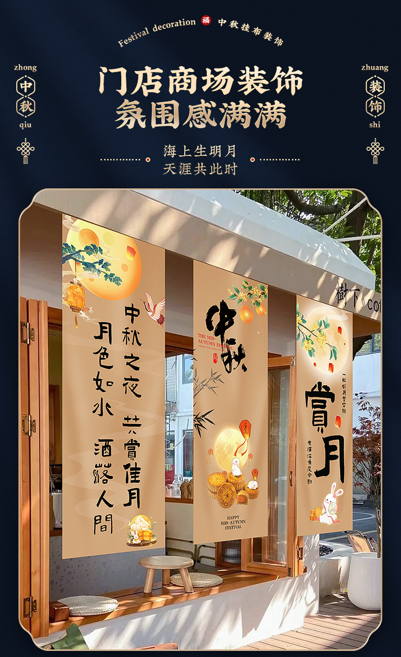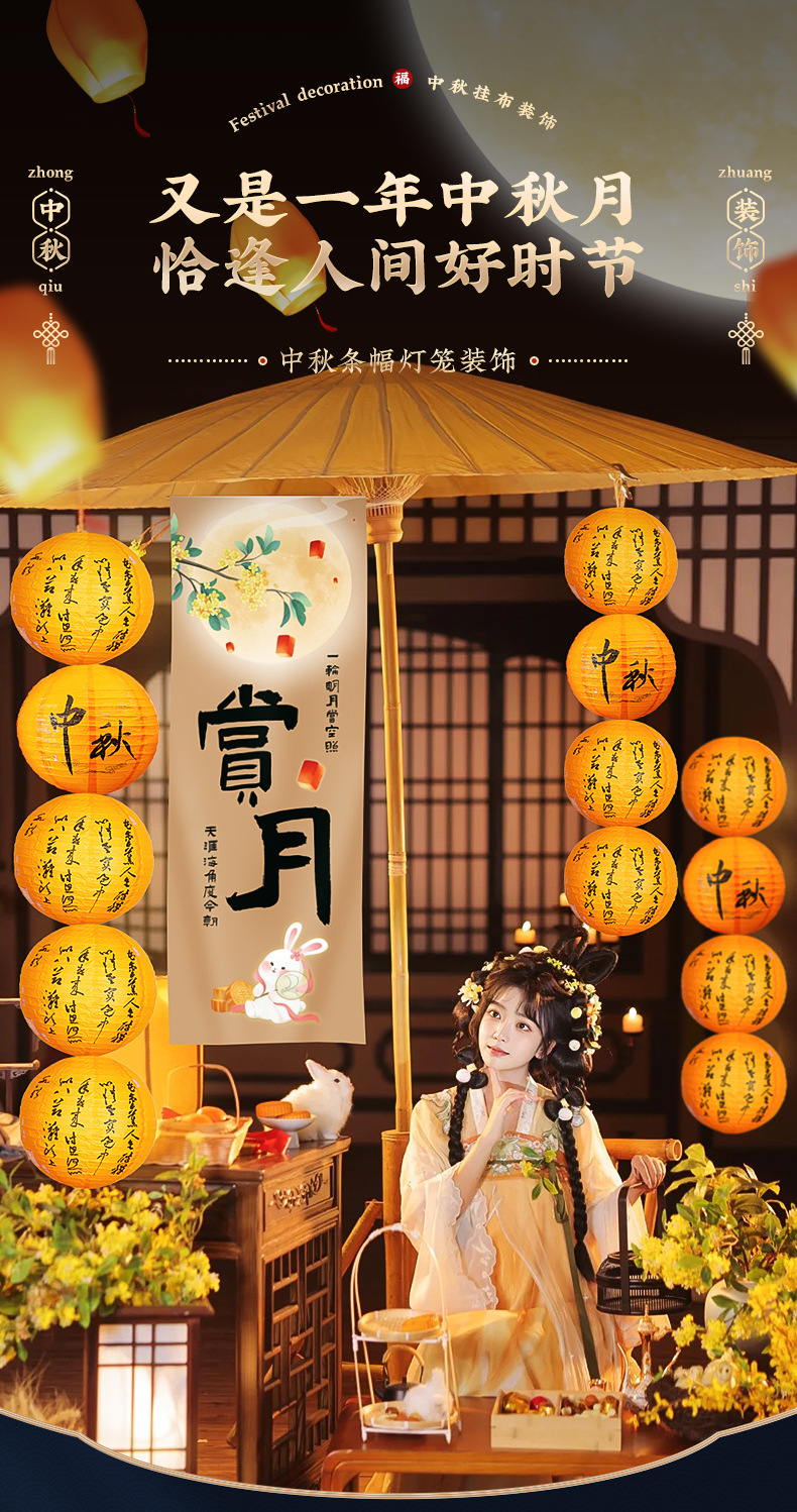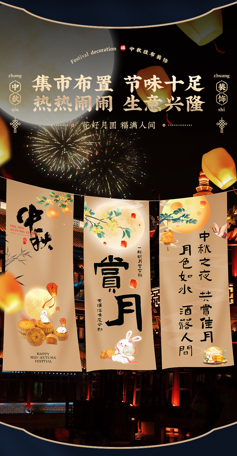 中秋节游园会装饰条幅挂布场景布置夜市摆摊氛围活动拍照道具挂件