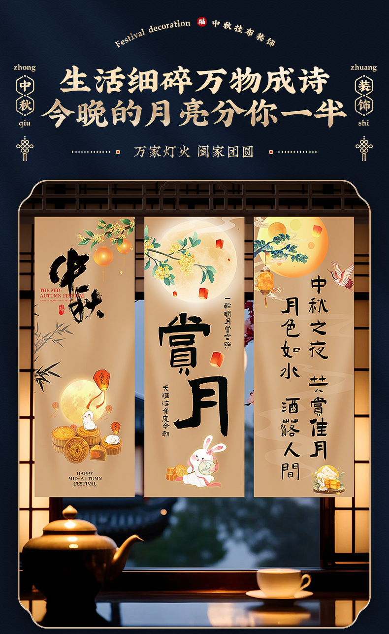 【中秋限定❗️氛围感拉满的装饰套装】花好月圆,万家灯火,阖家团圆!节日灯笼场景布置商场门店橱窗挂布拍照打卡背景墙条幅
