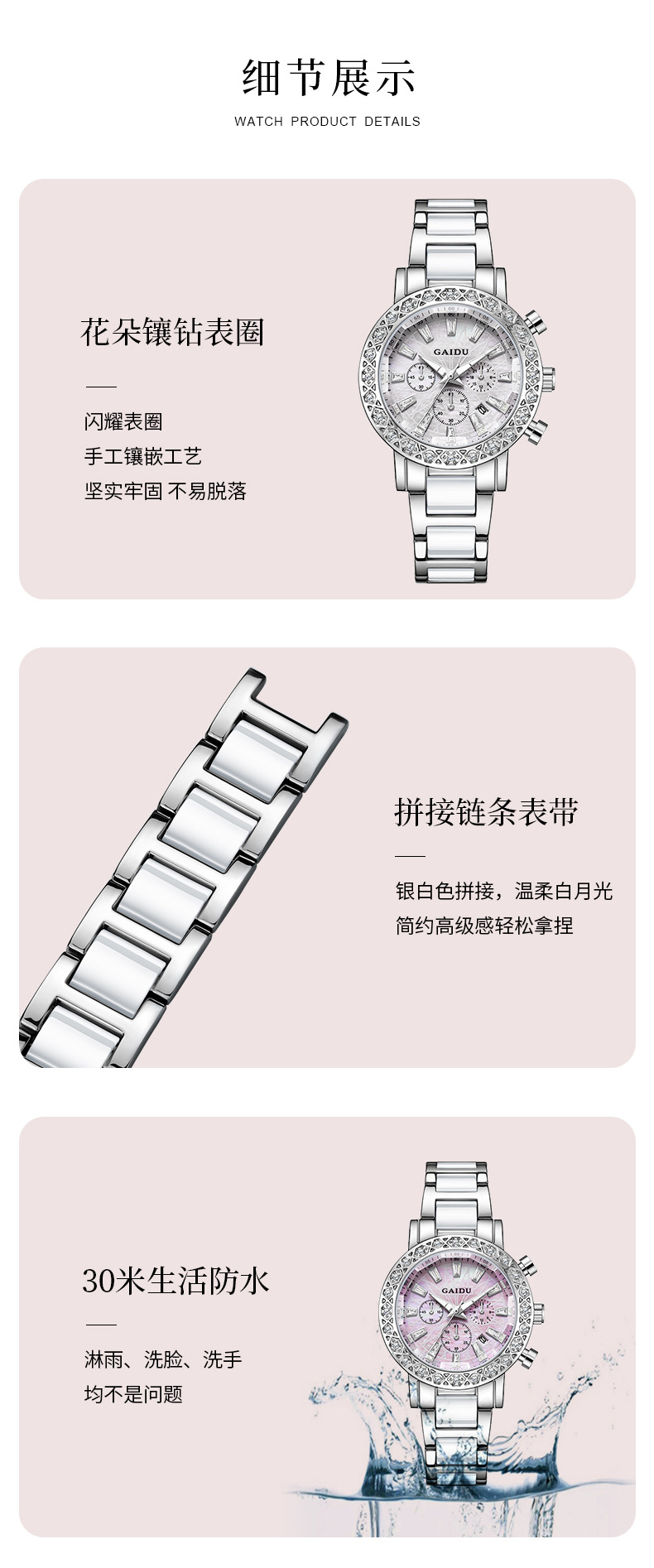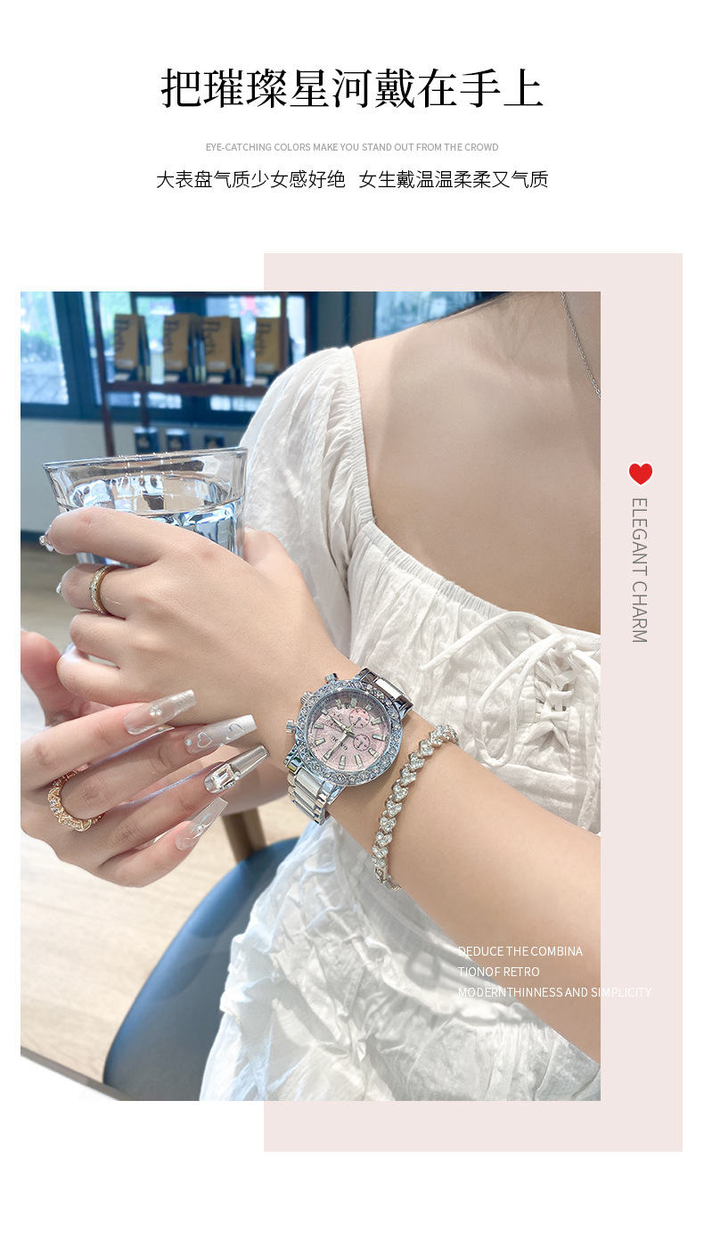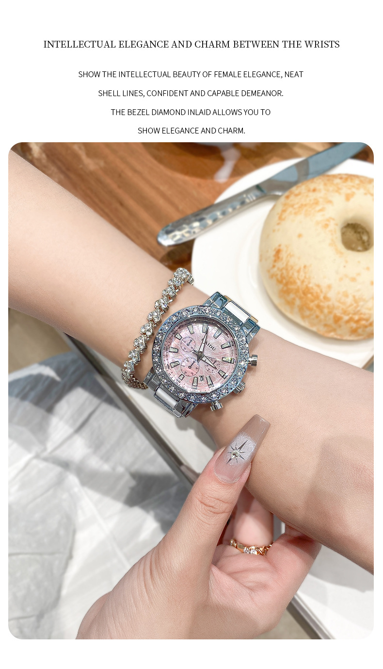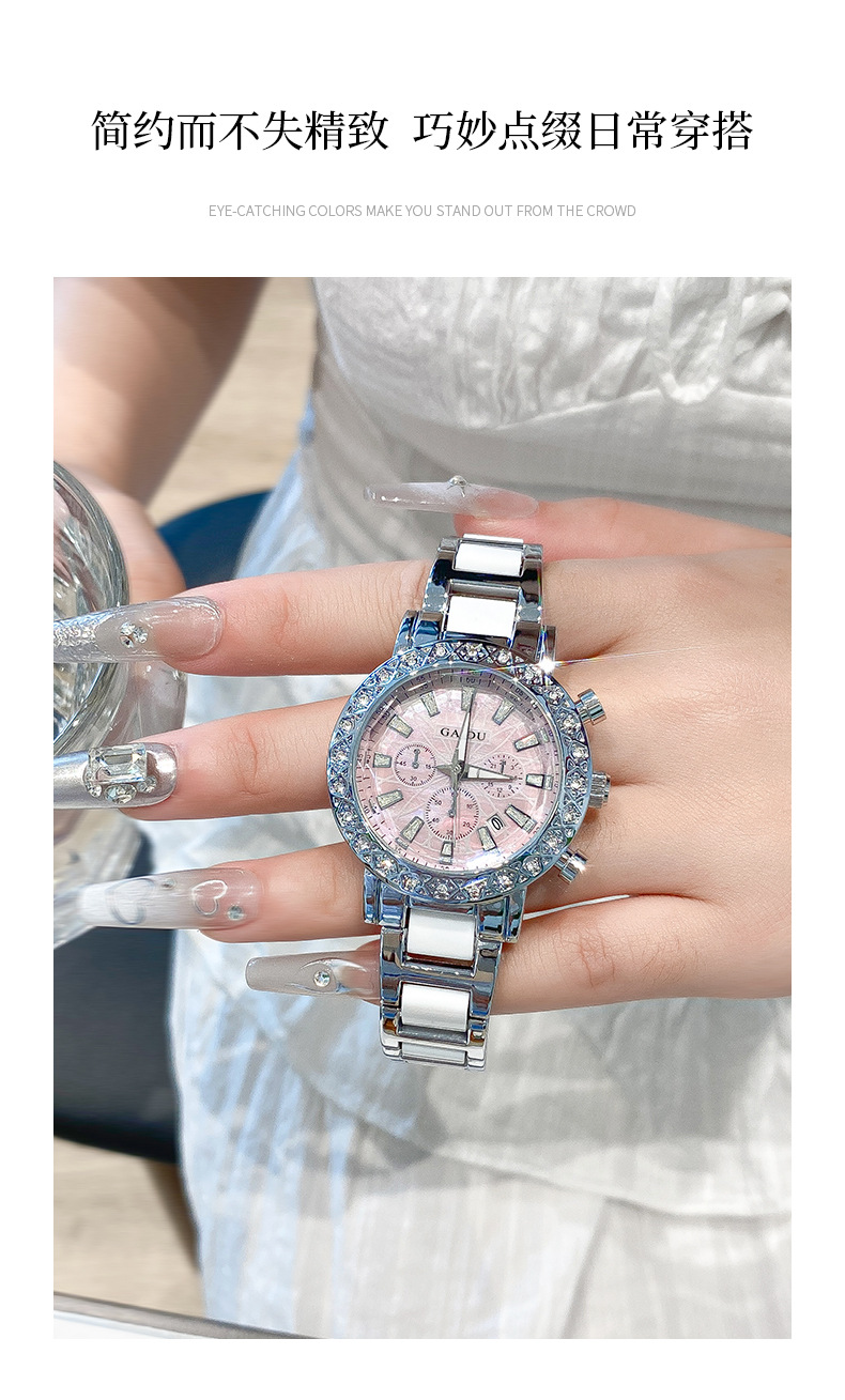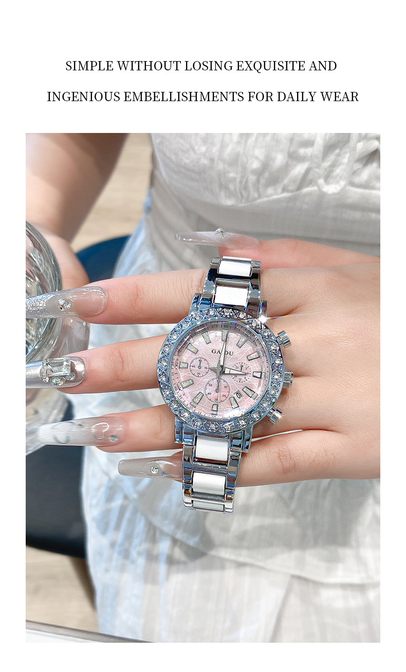 【知性优雅❗️夜光贝母石英女表】水钻环绕镶嵌,自带轻奢感,清晰通透防刮表镜,巧妙点缀日常穿搭,爆款时尚表圆形镶钻日历陶瓷腕表情人节礼物QQ