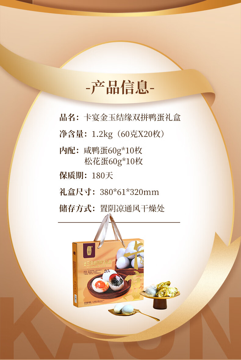 卡宴咸鸭蛋松花蛋双拼礼盒 高邮特产流油咸鸭蛋*10枚 松花蛋*10枚