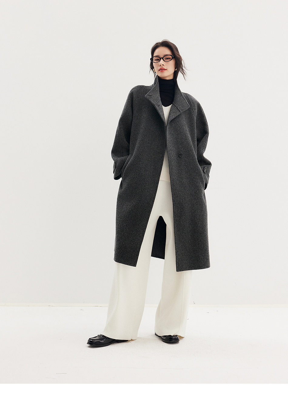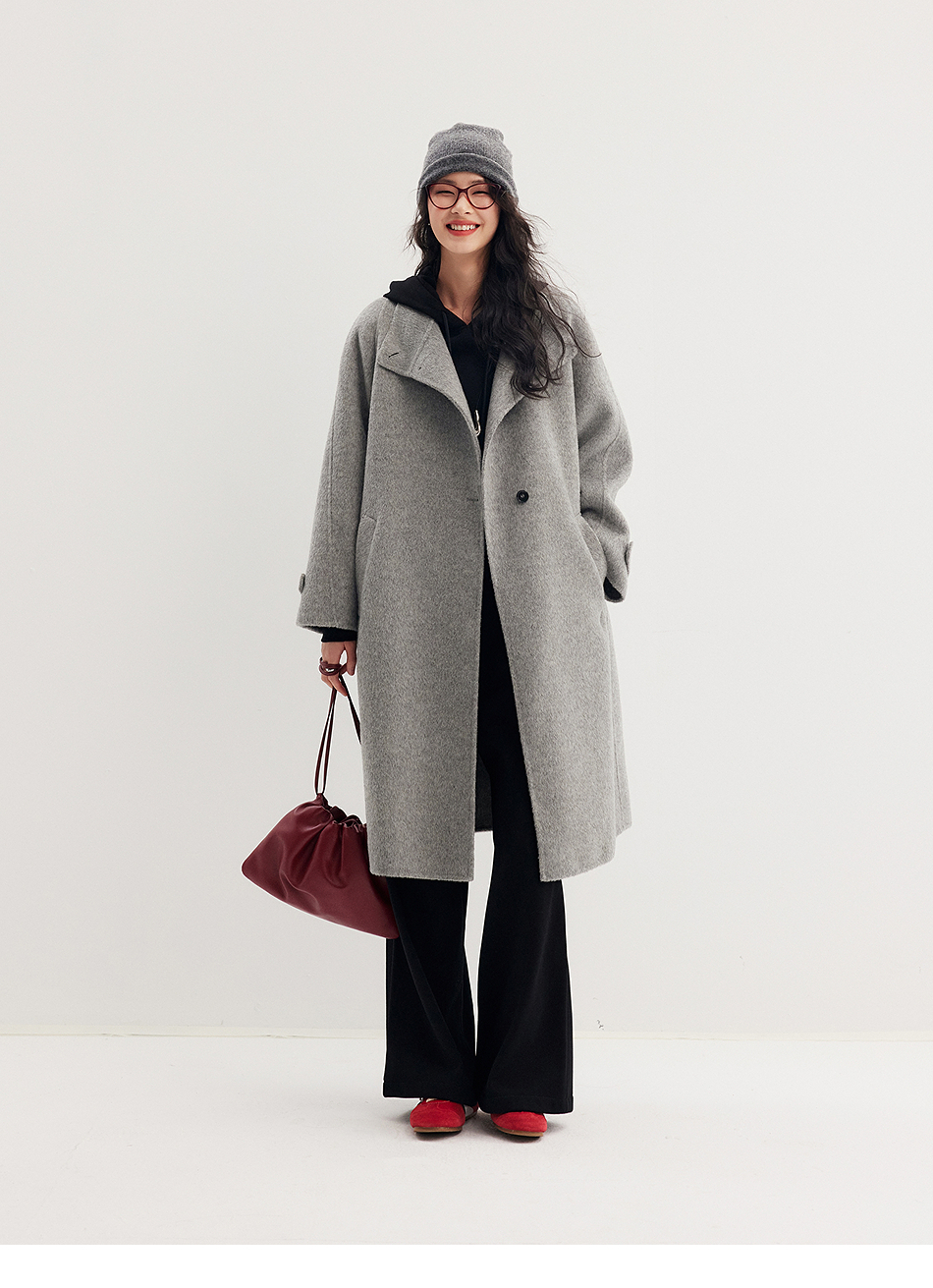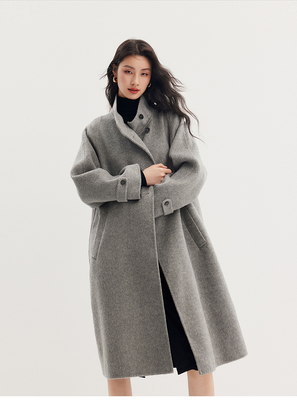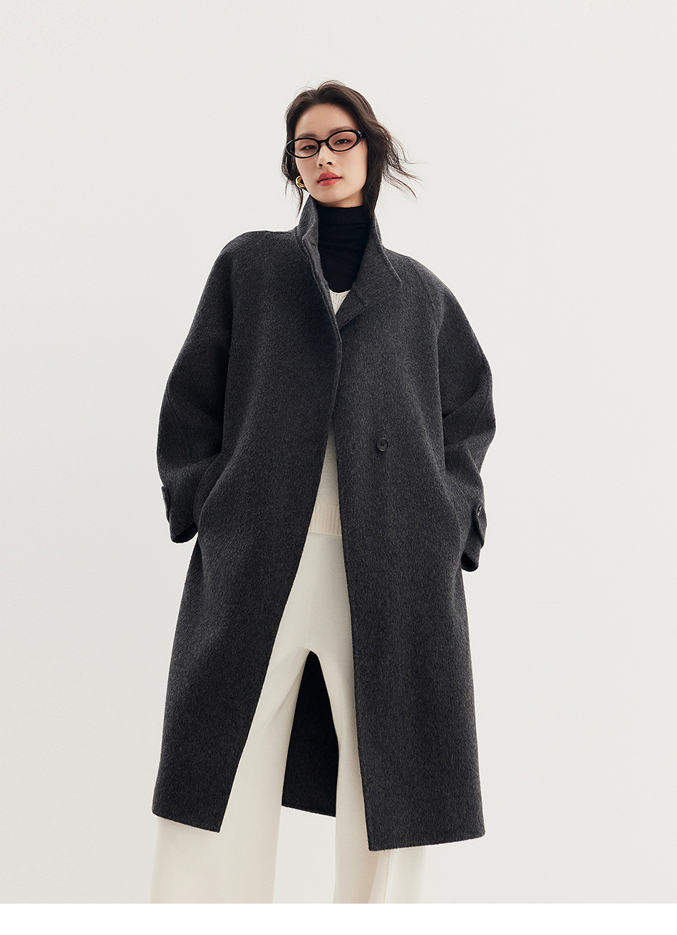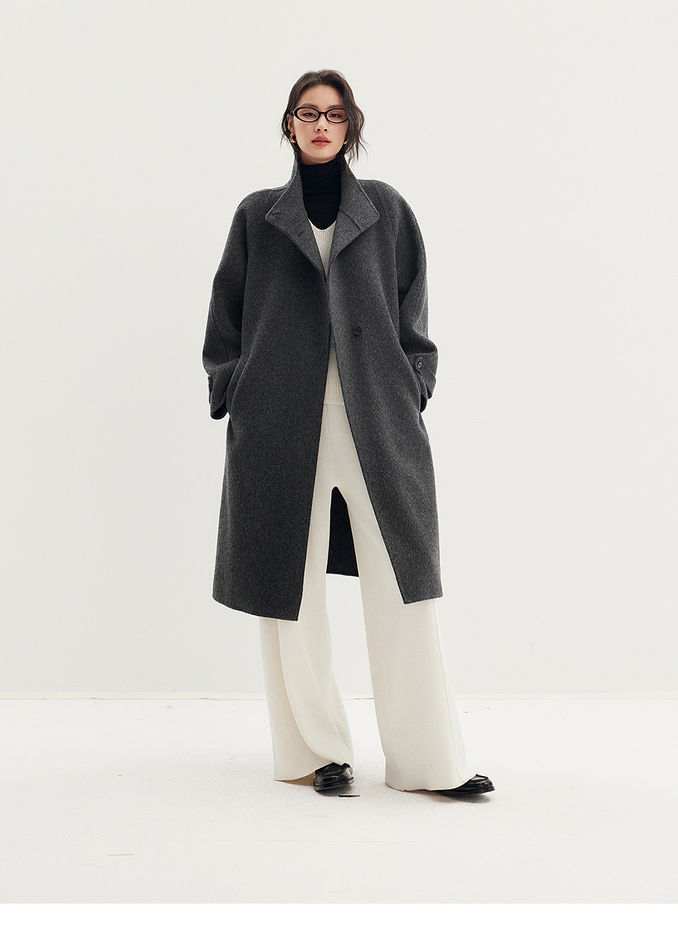 棉仓357666016-羊毛大衣简约立领单排扣廓形双面呢大衣