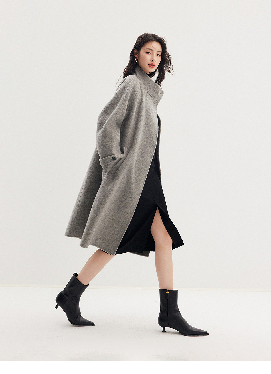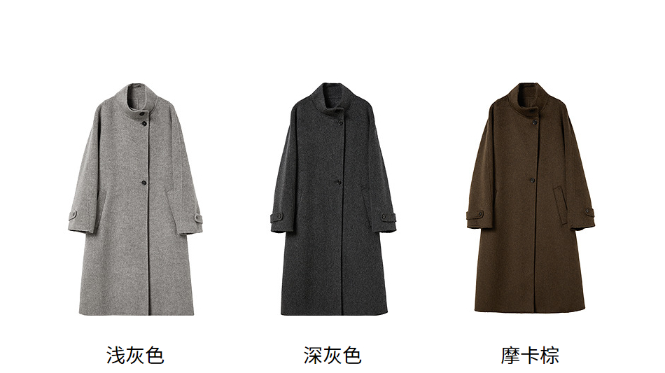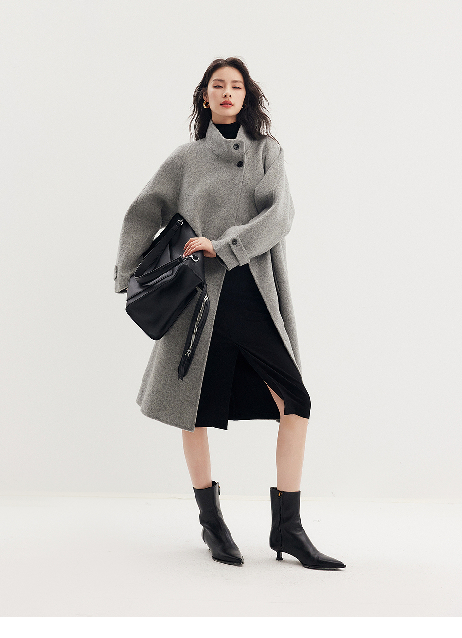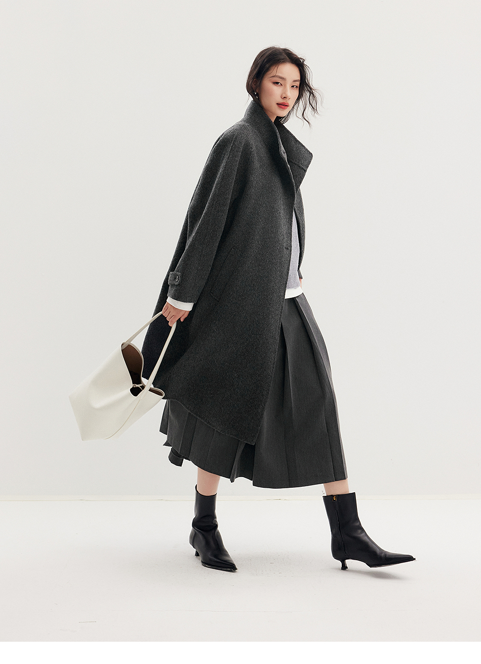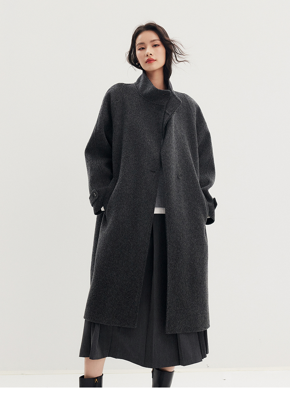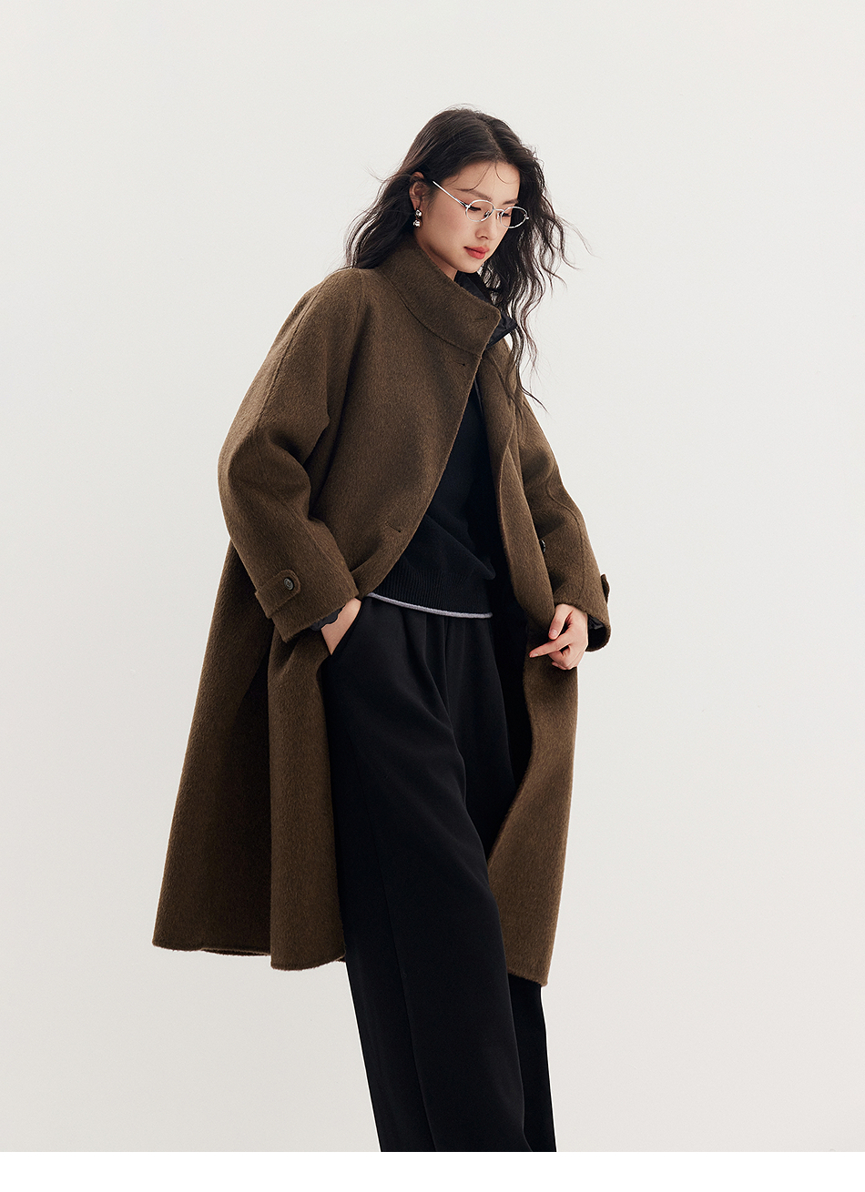 棉仓357666016-羊毛大衣简约立领单排扣廓形双面呢大衣