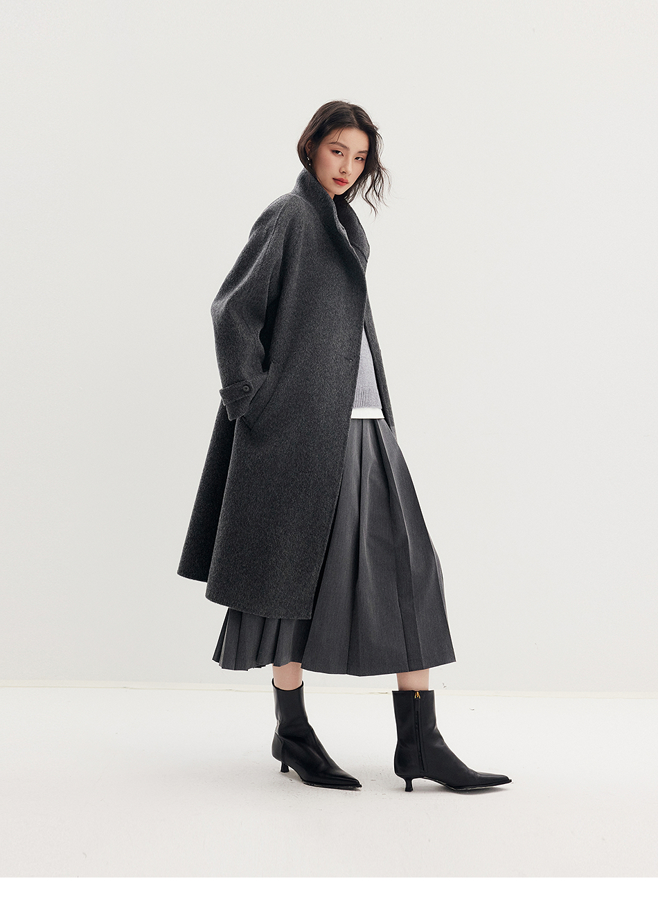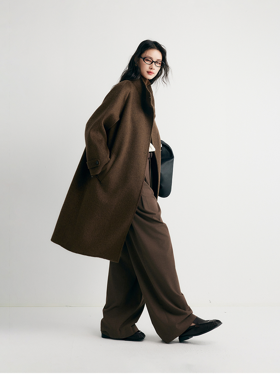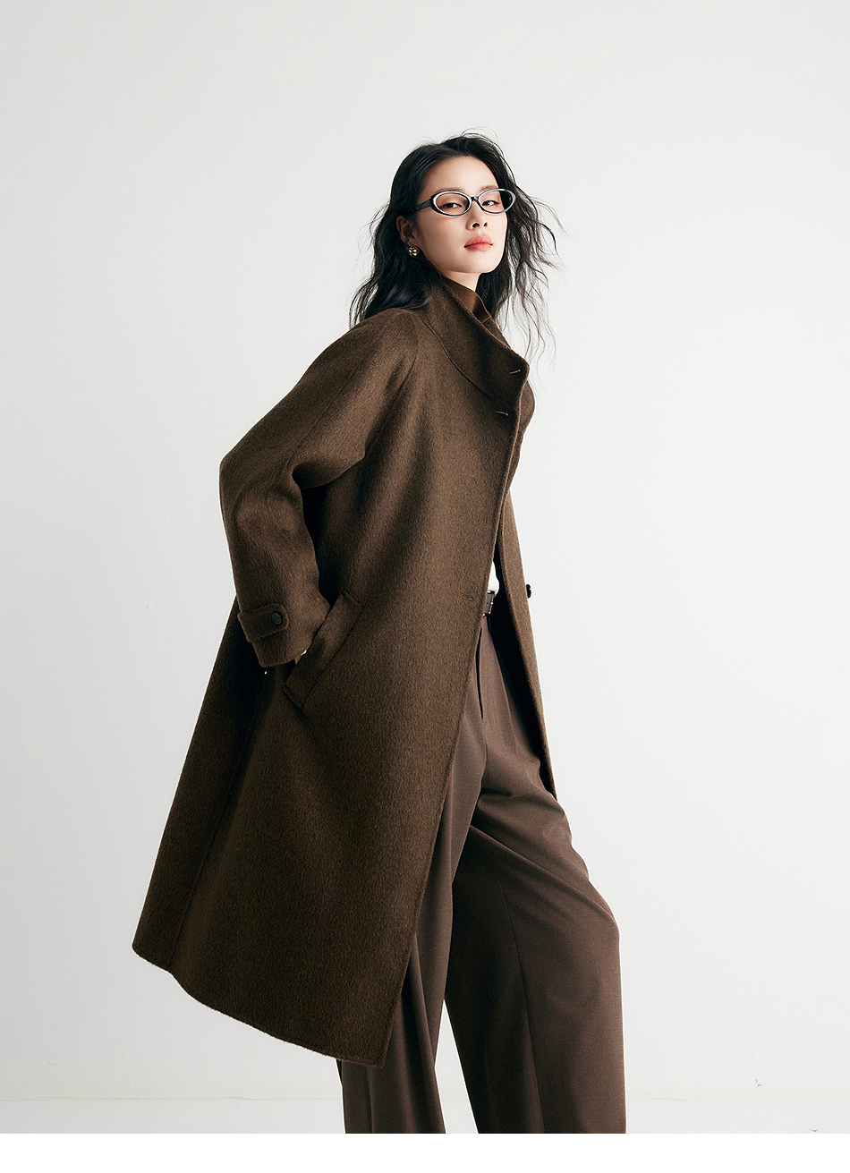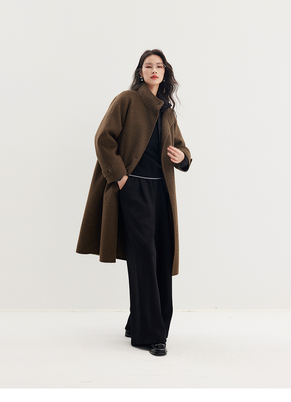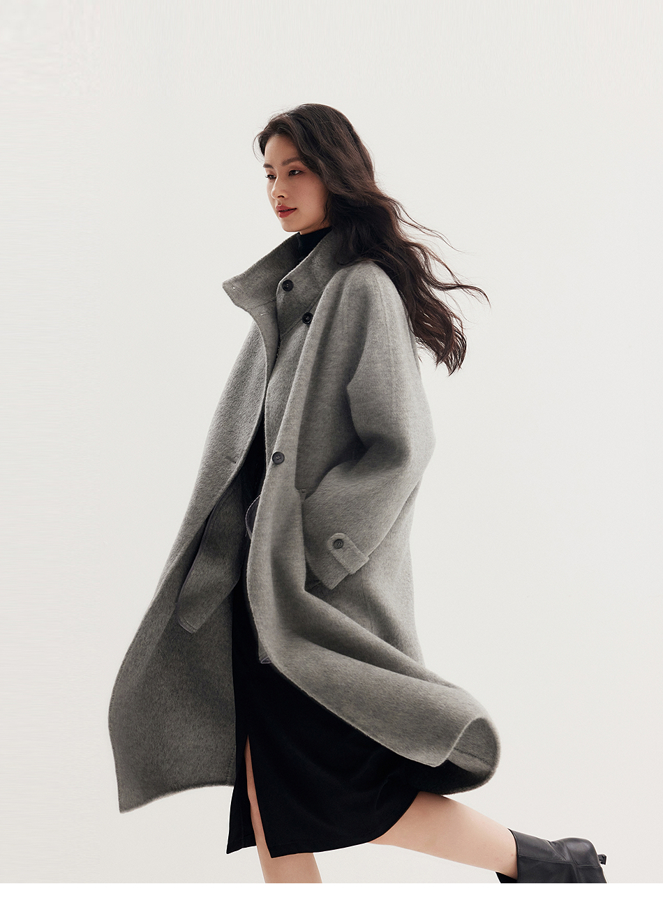 棉仓357666016-羊毛大衣简约立领单排扣廓形双面呢大衣