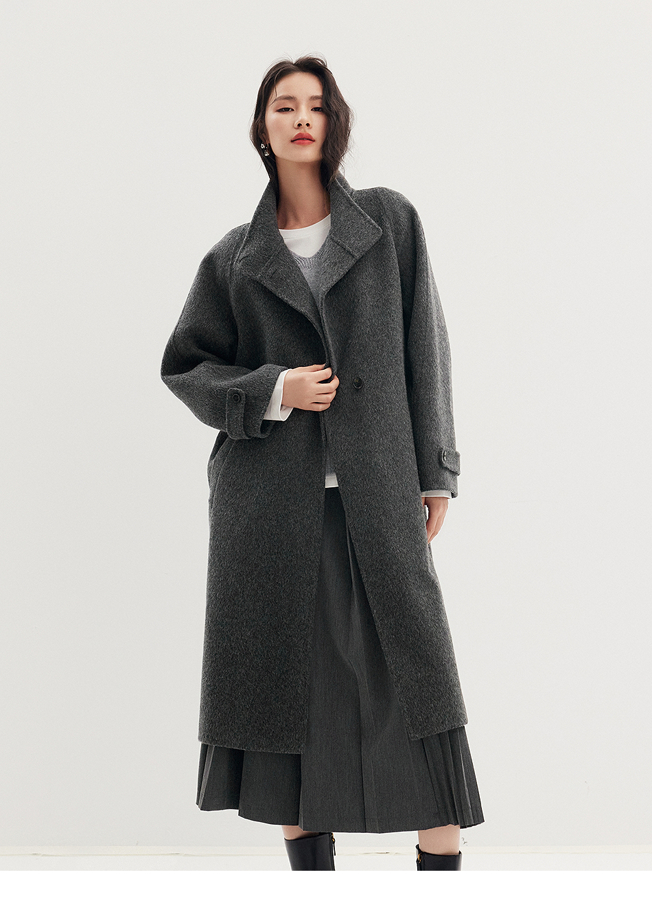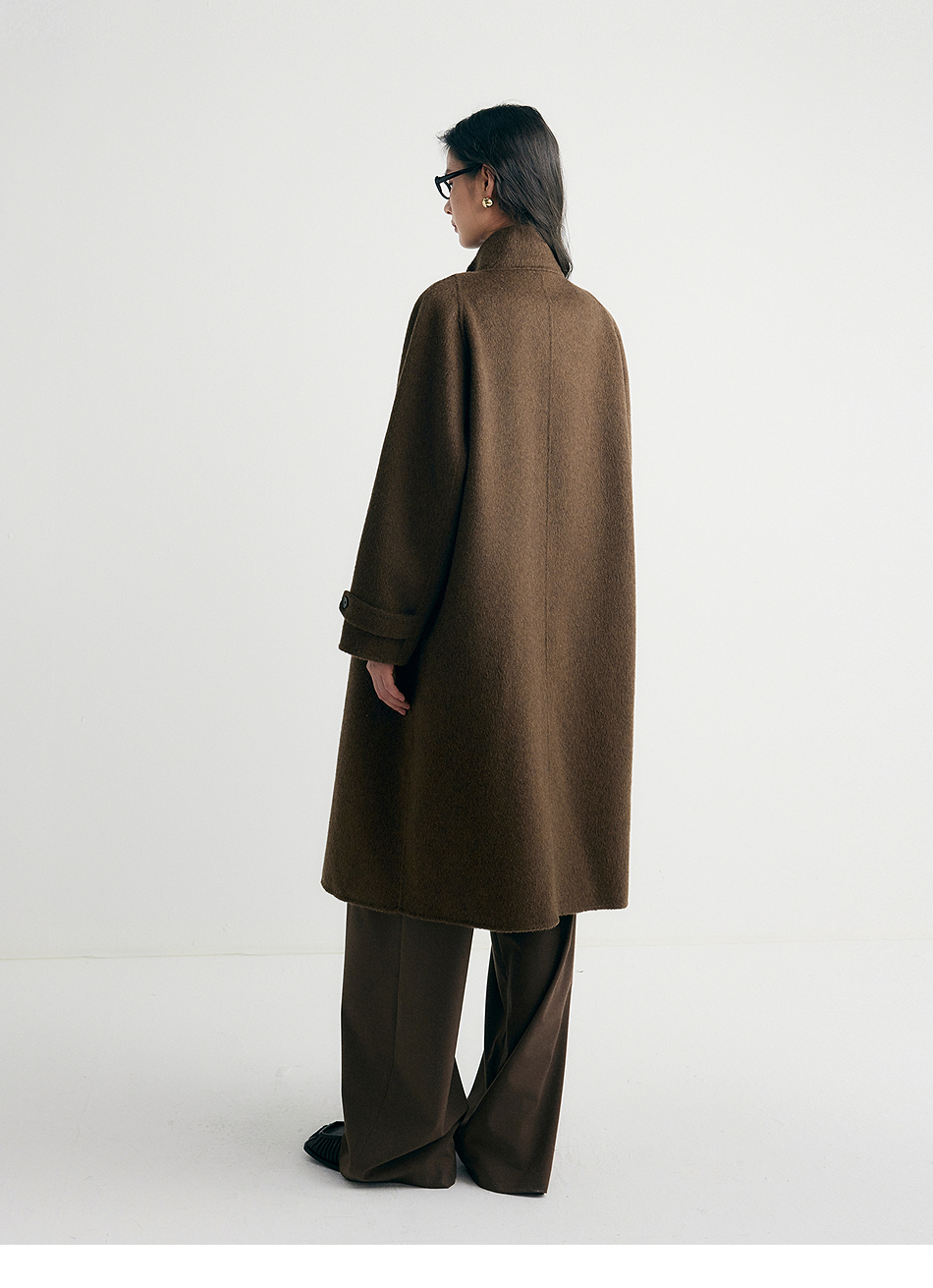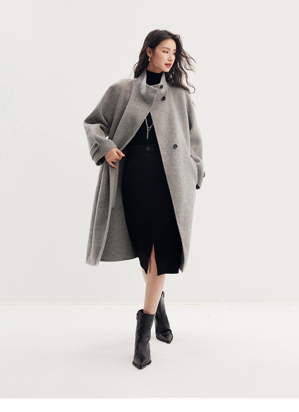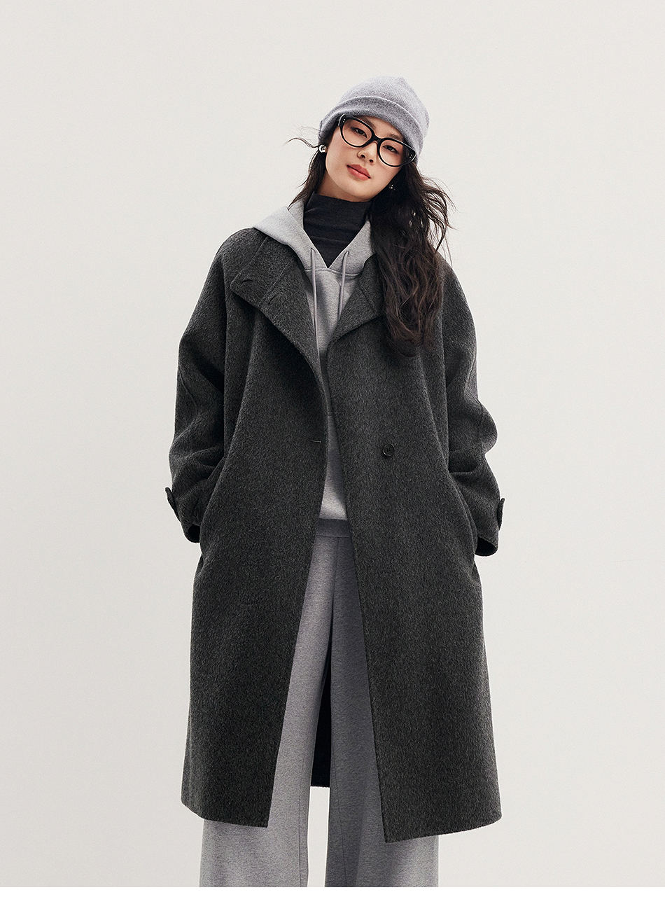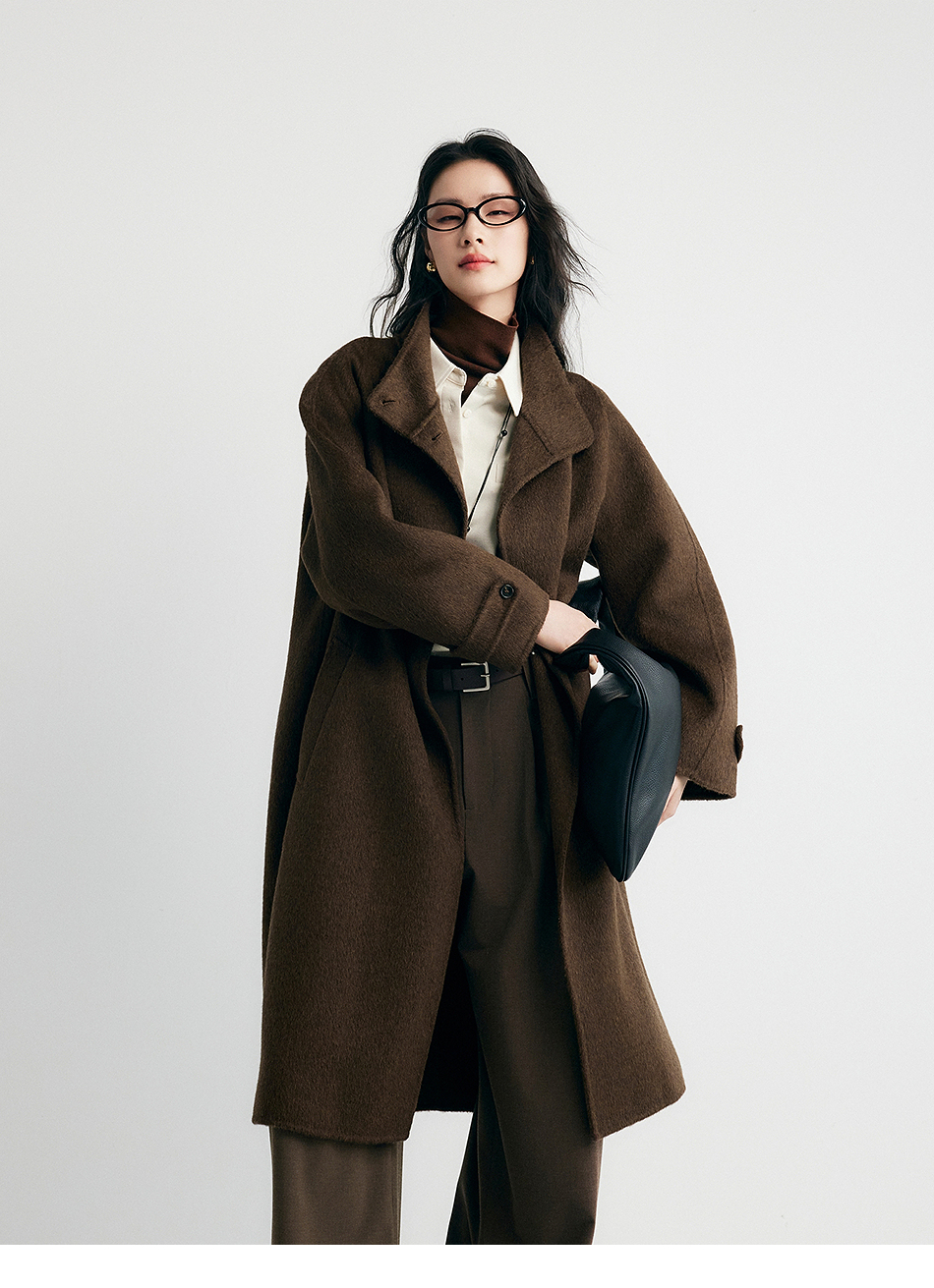 棉仓357666016-羊毛大衣简约立领单排扣廓形双面呢大衣