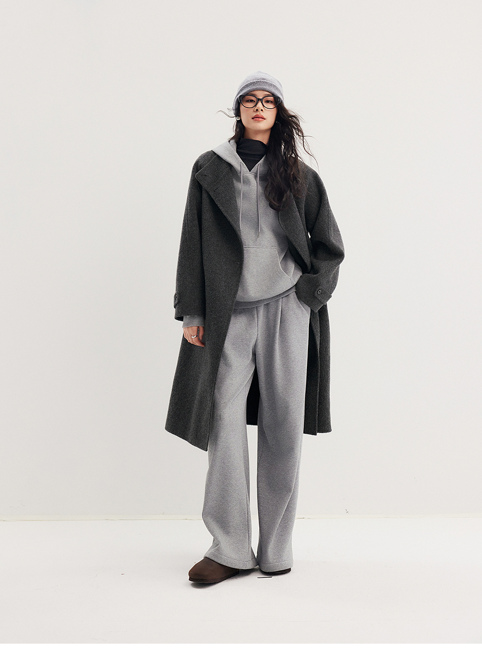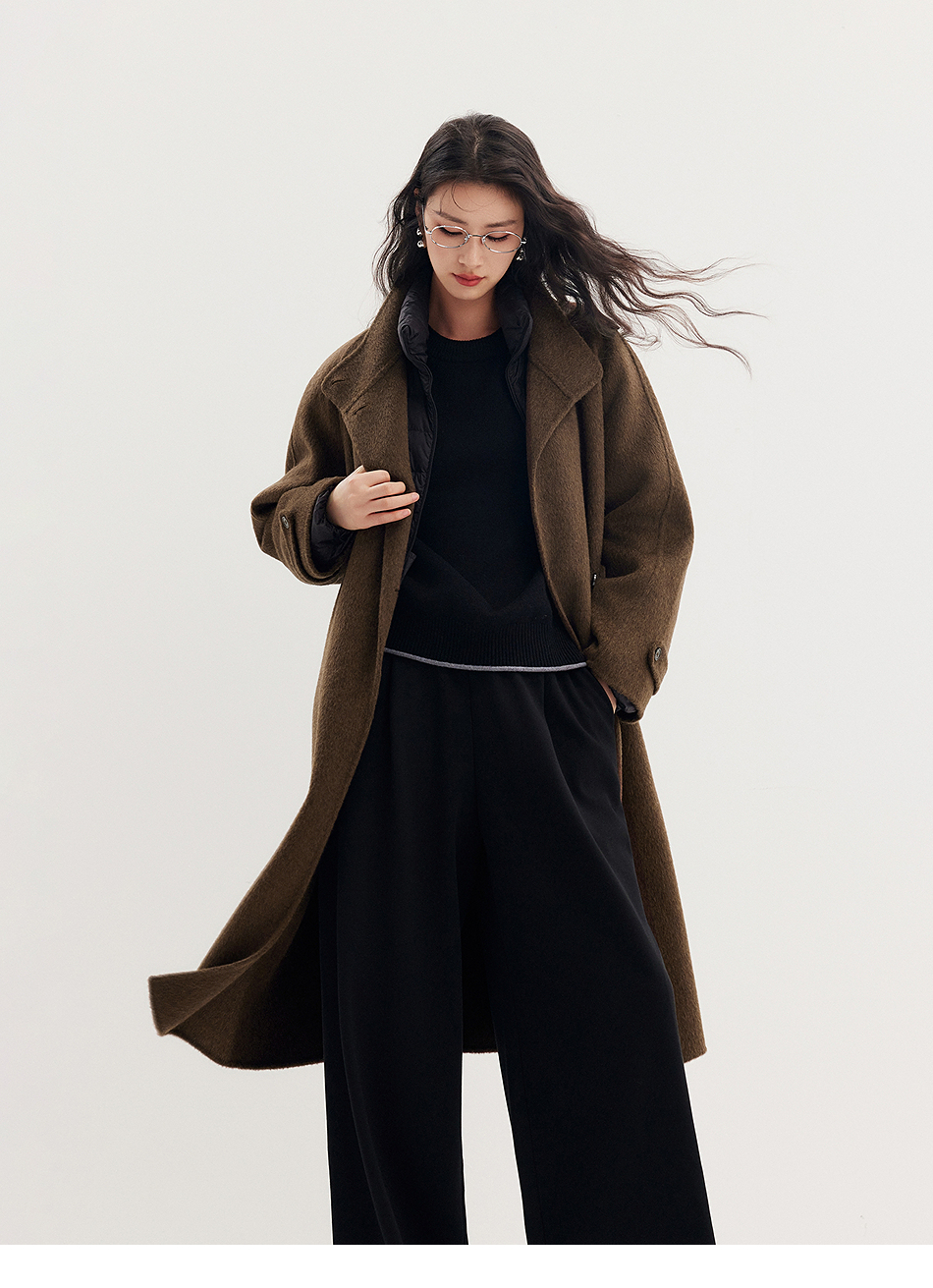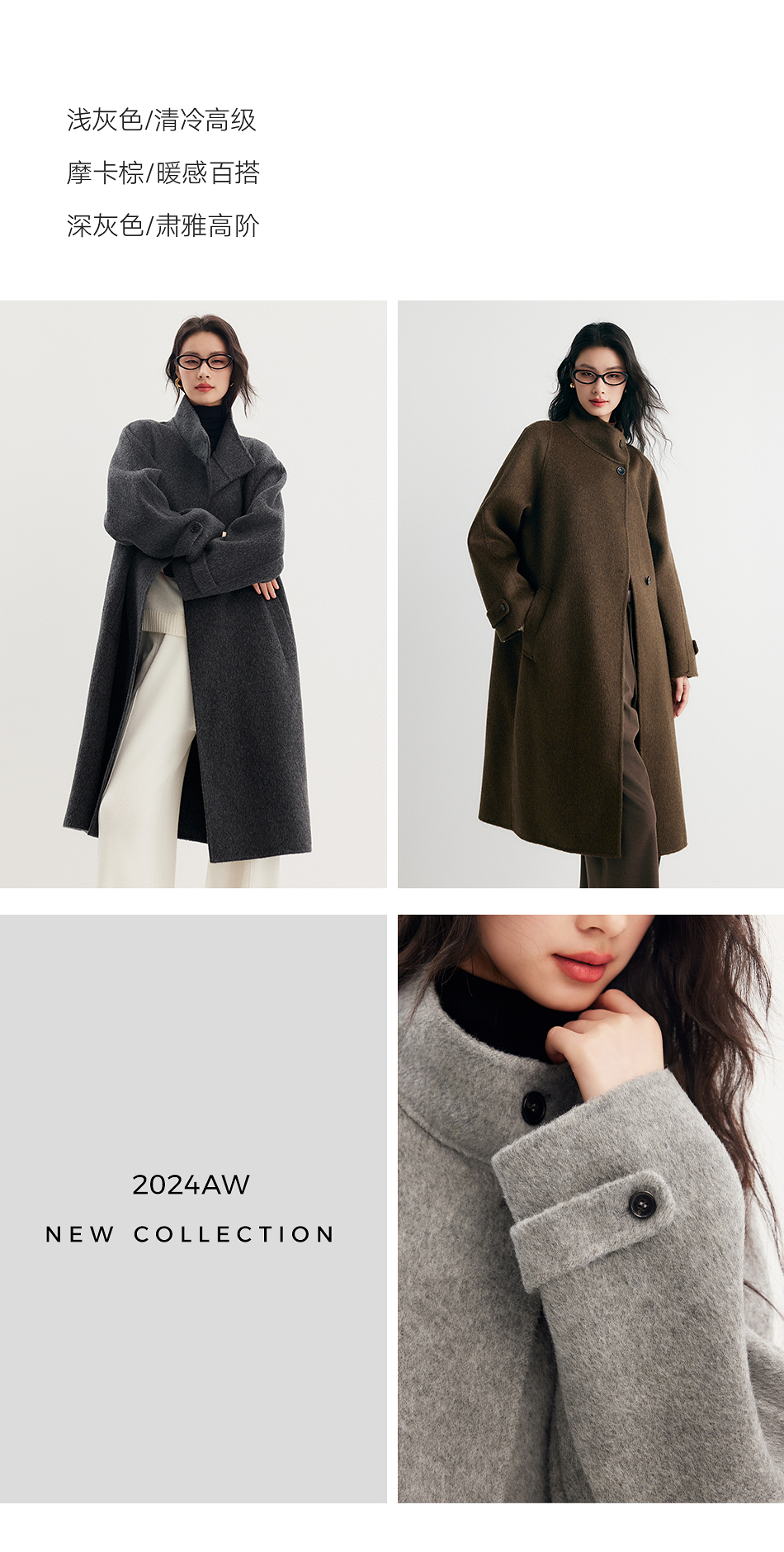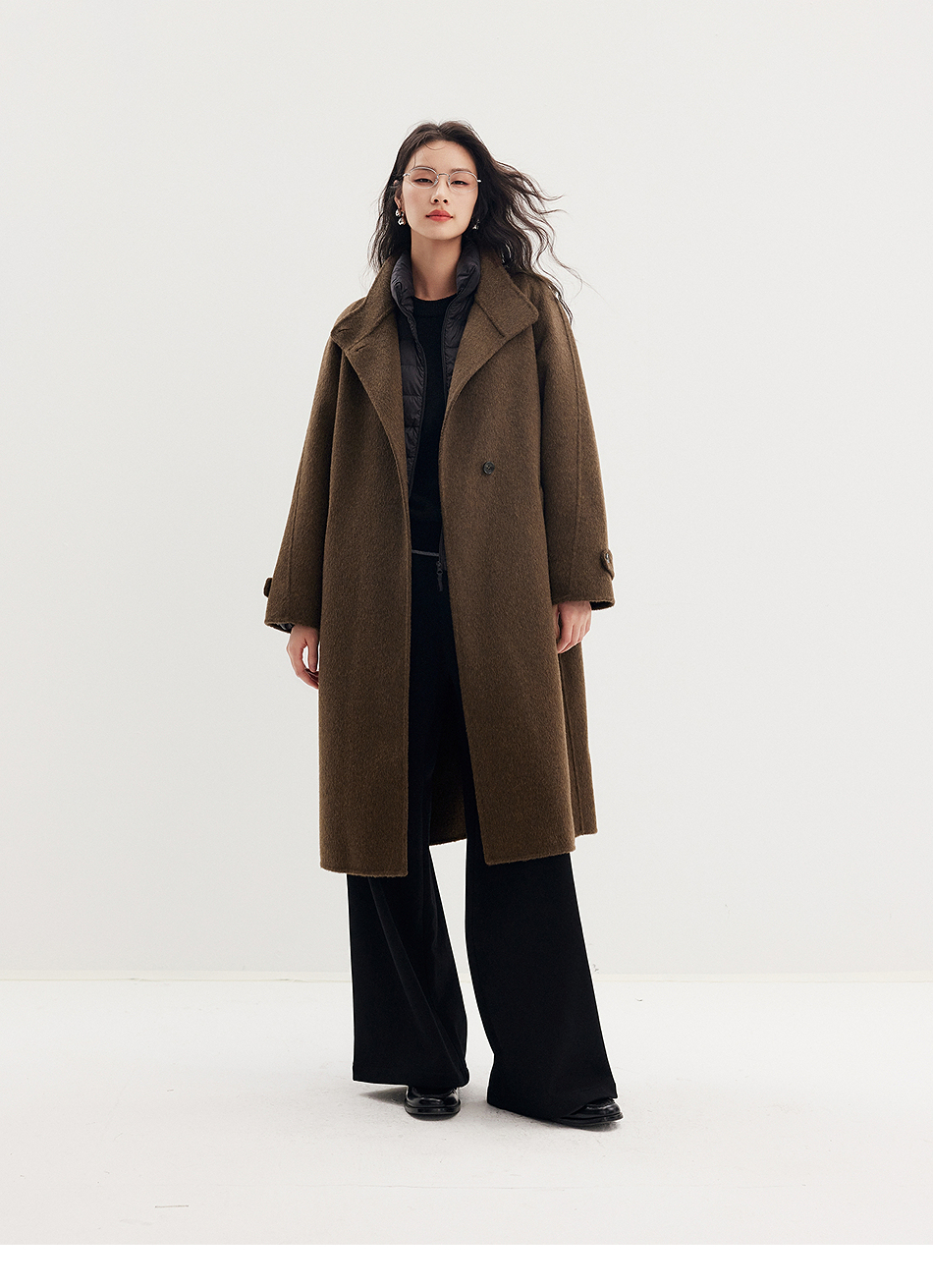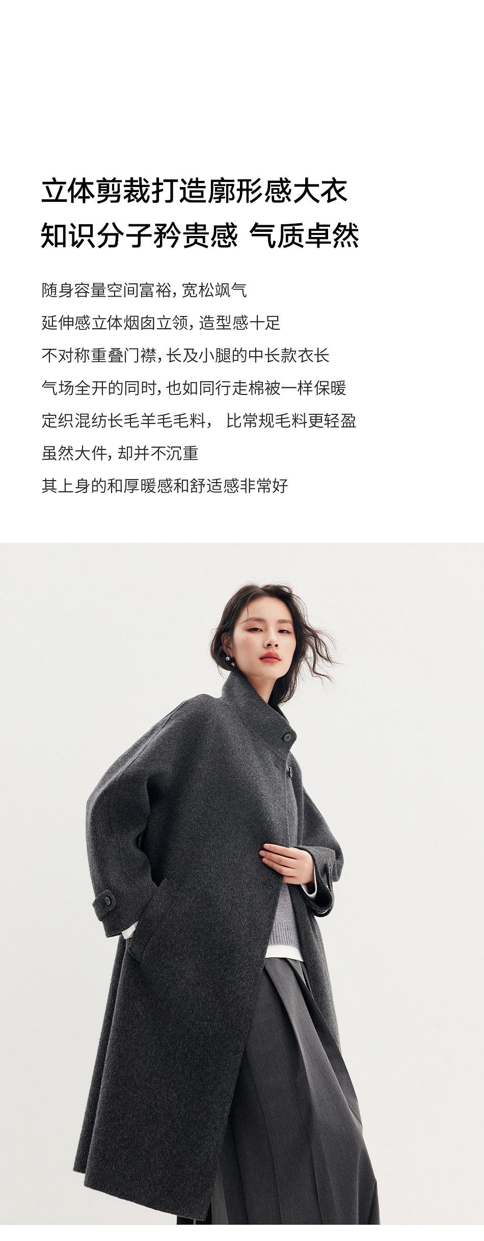 棉仓357666016-羊毛大衣简约立领单排扣廓形双面呢大衣