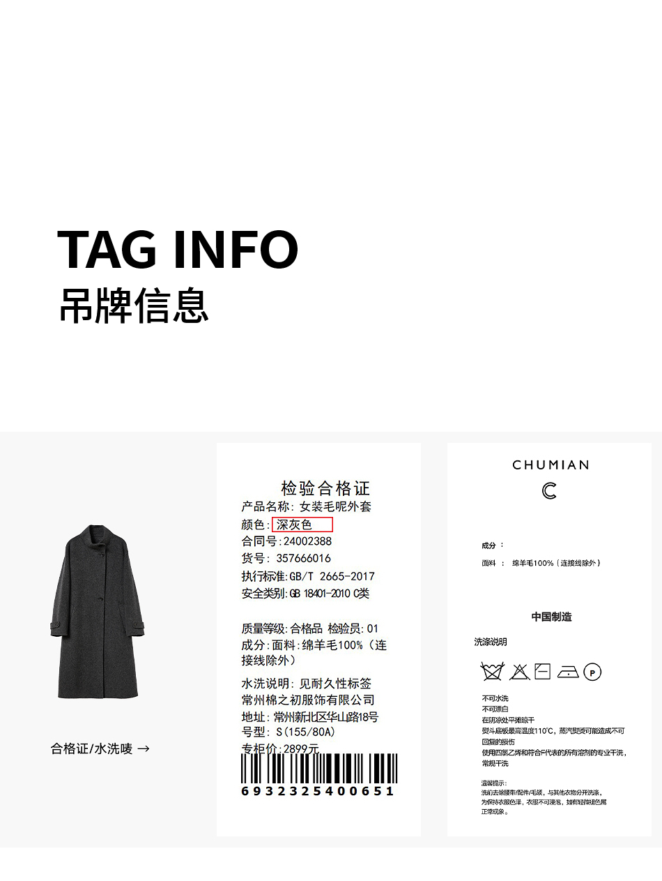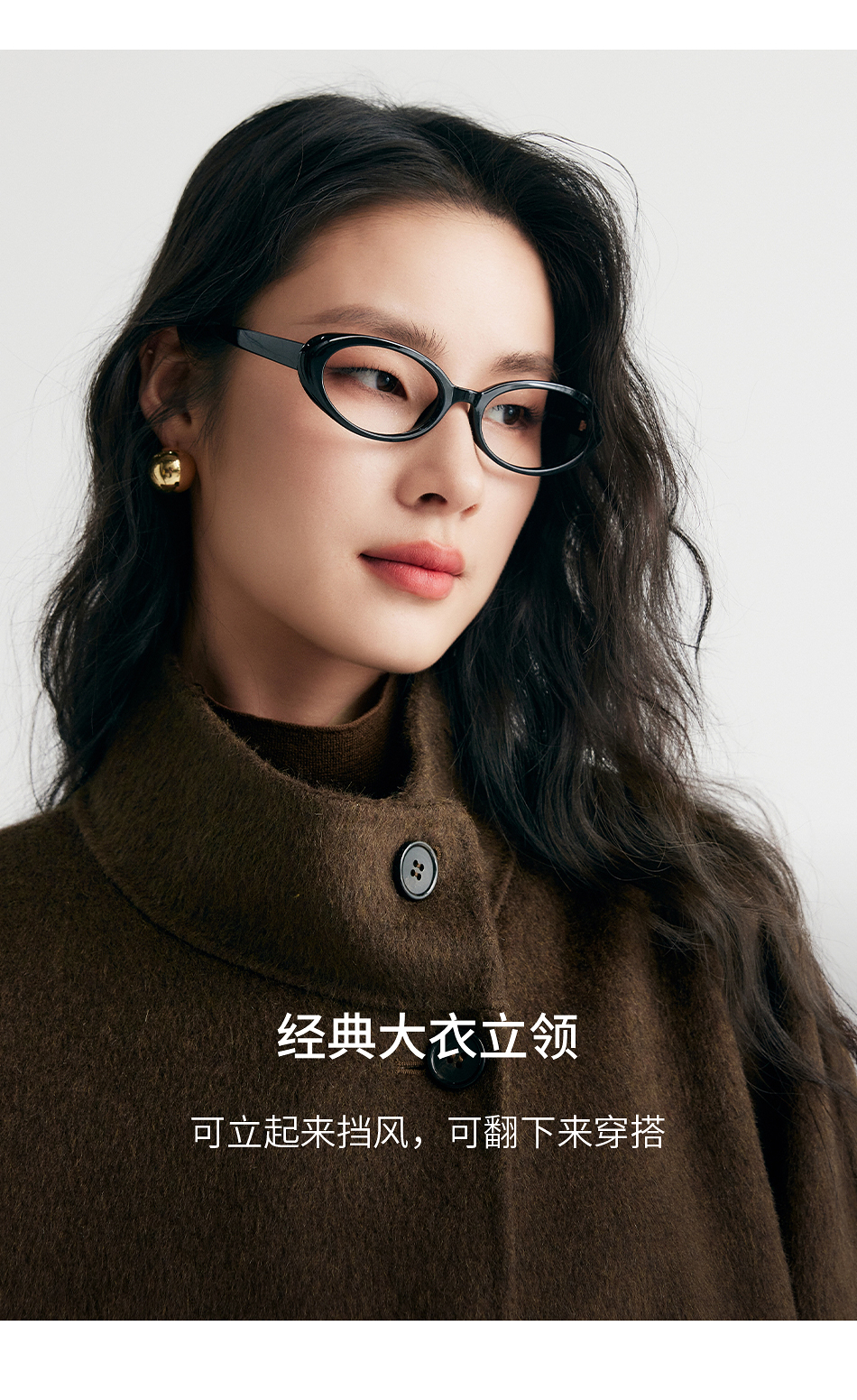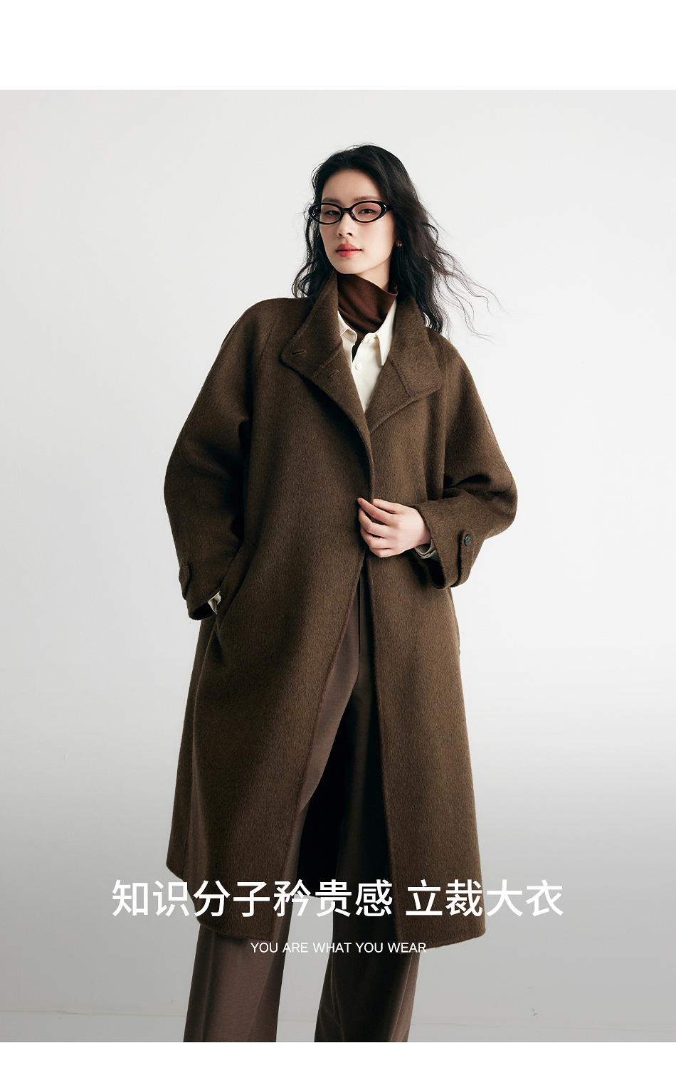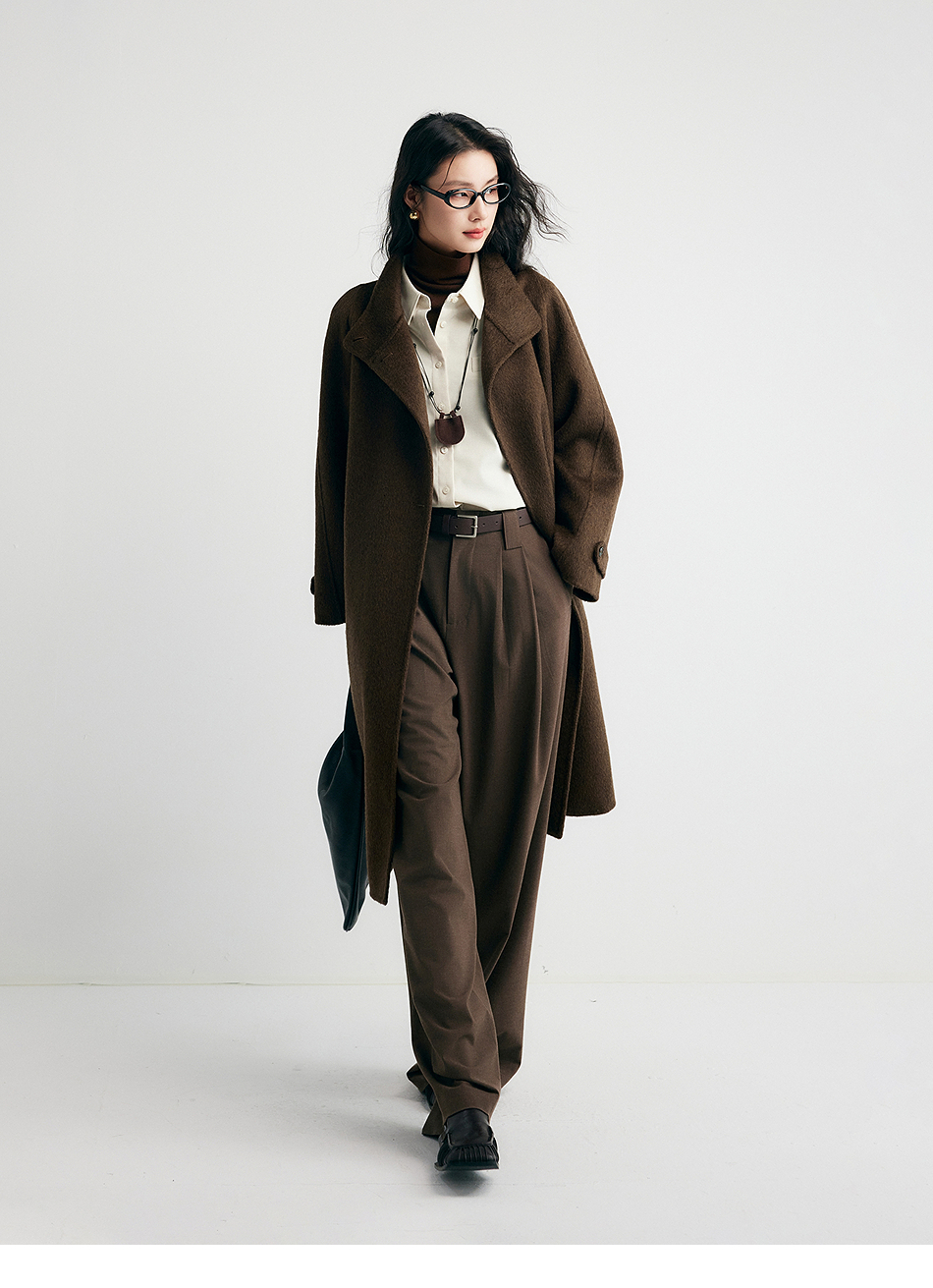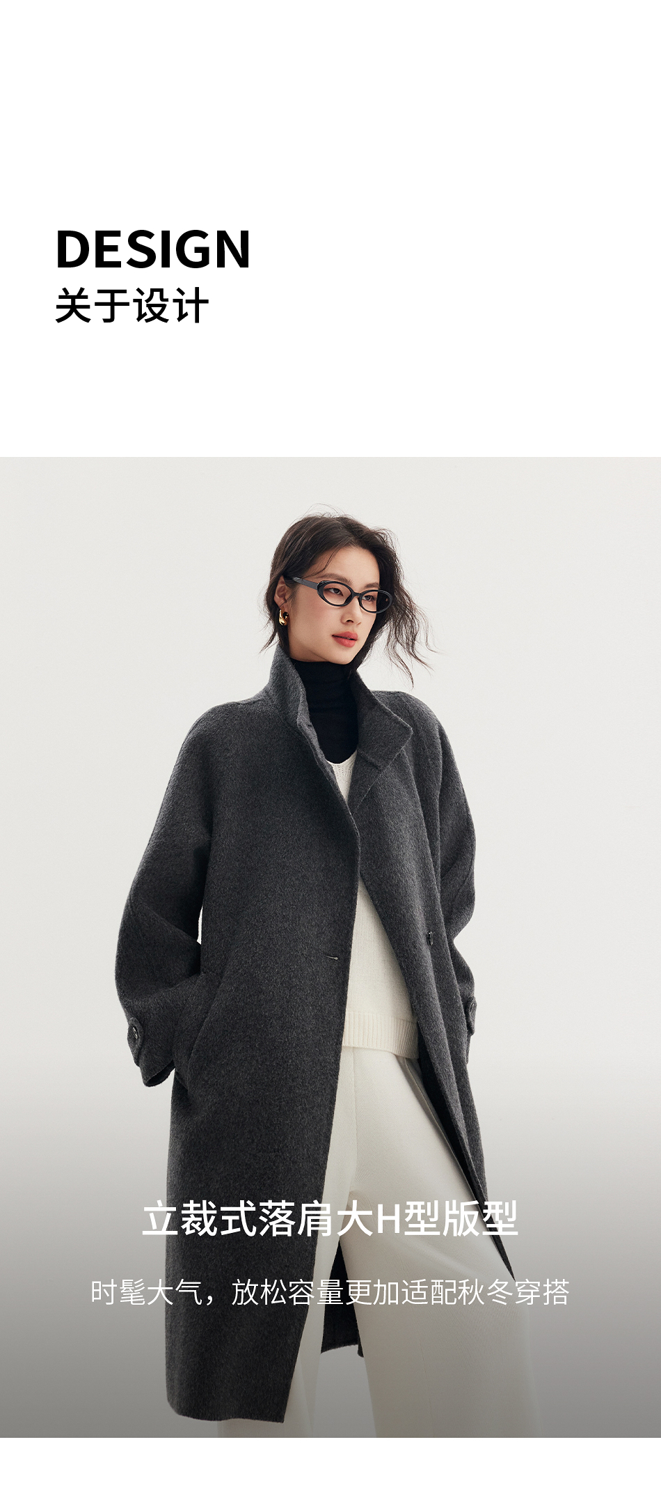 棉仓357666016-羊毛大衣简约立领单排扣廓形双面呢大衣