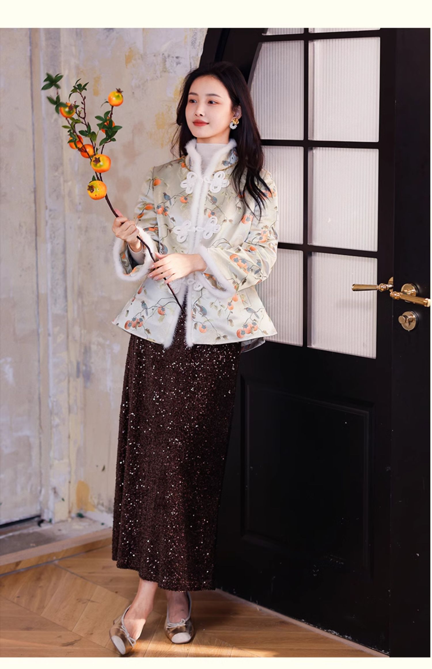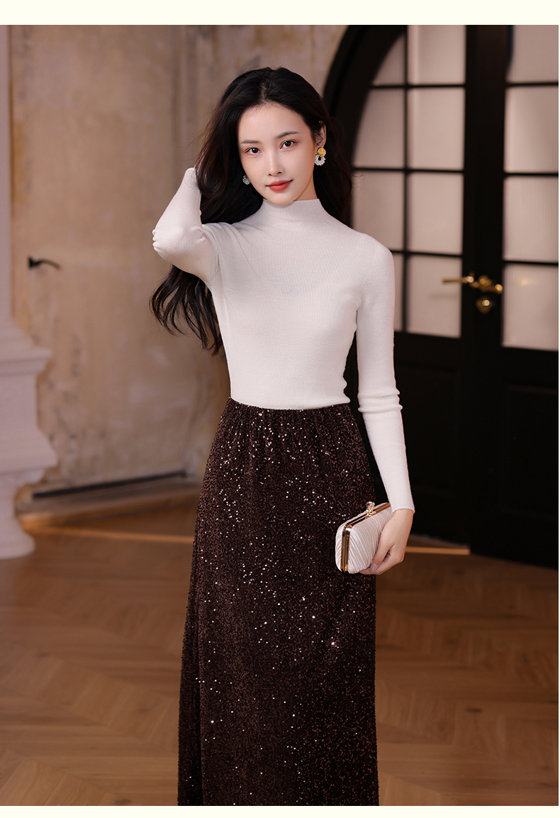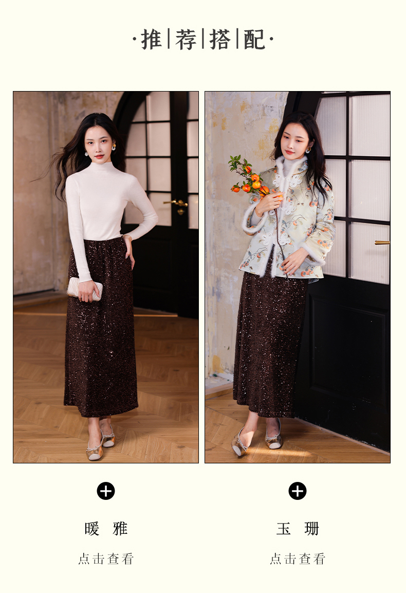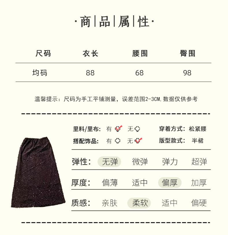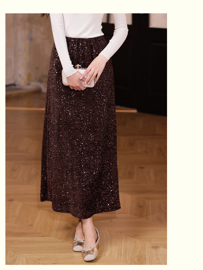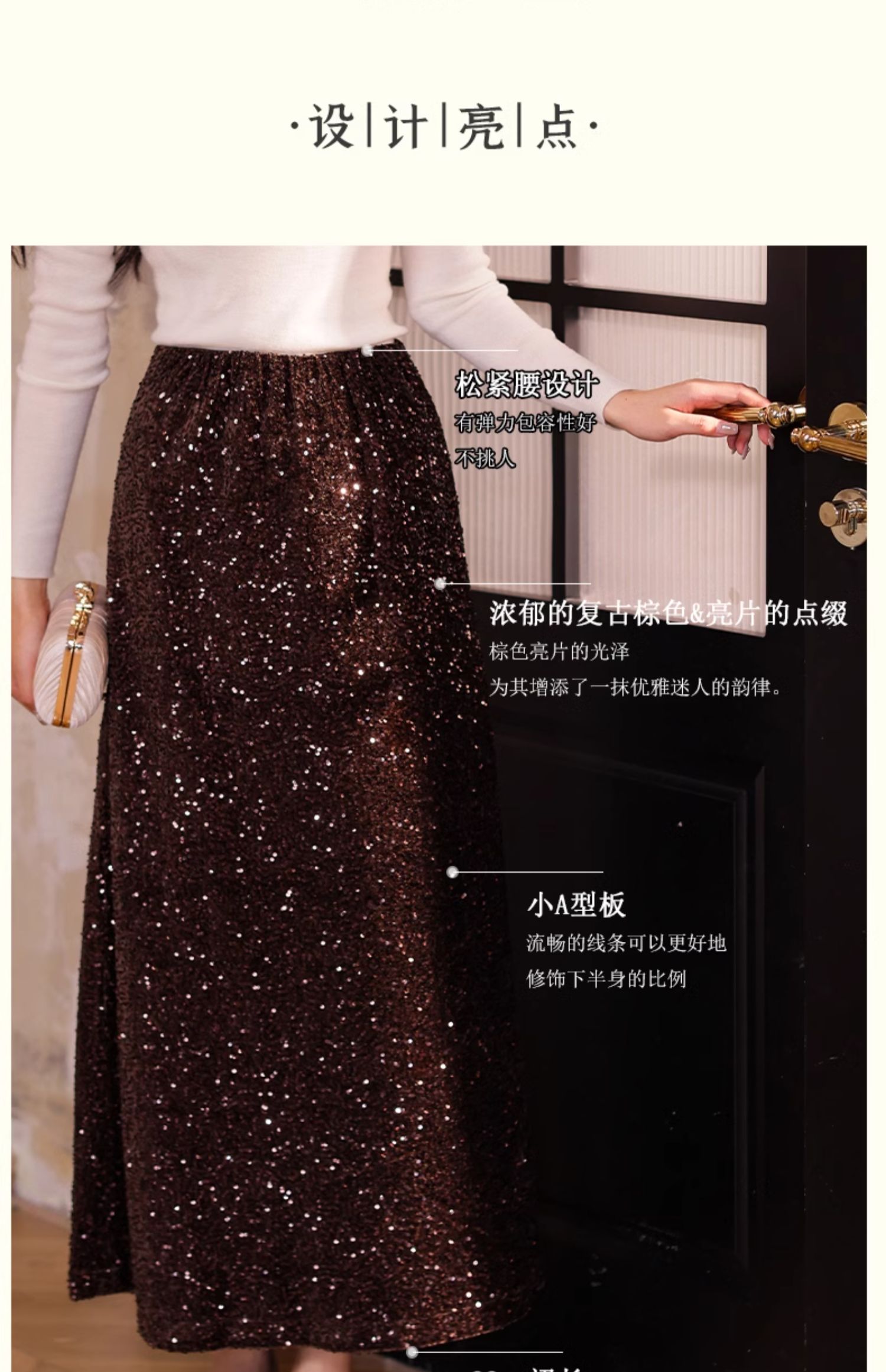 逸红颜 星烁 2025秋冬新款满天星亮片丝绒松紧腰时装A摆半身裙女