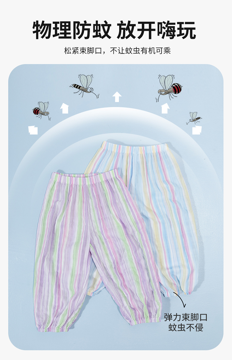 贝贝怡童装女童防蚊裤束脚儿童夏装凉感透气2024新款休闲宽松裤子