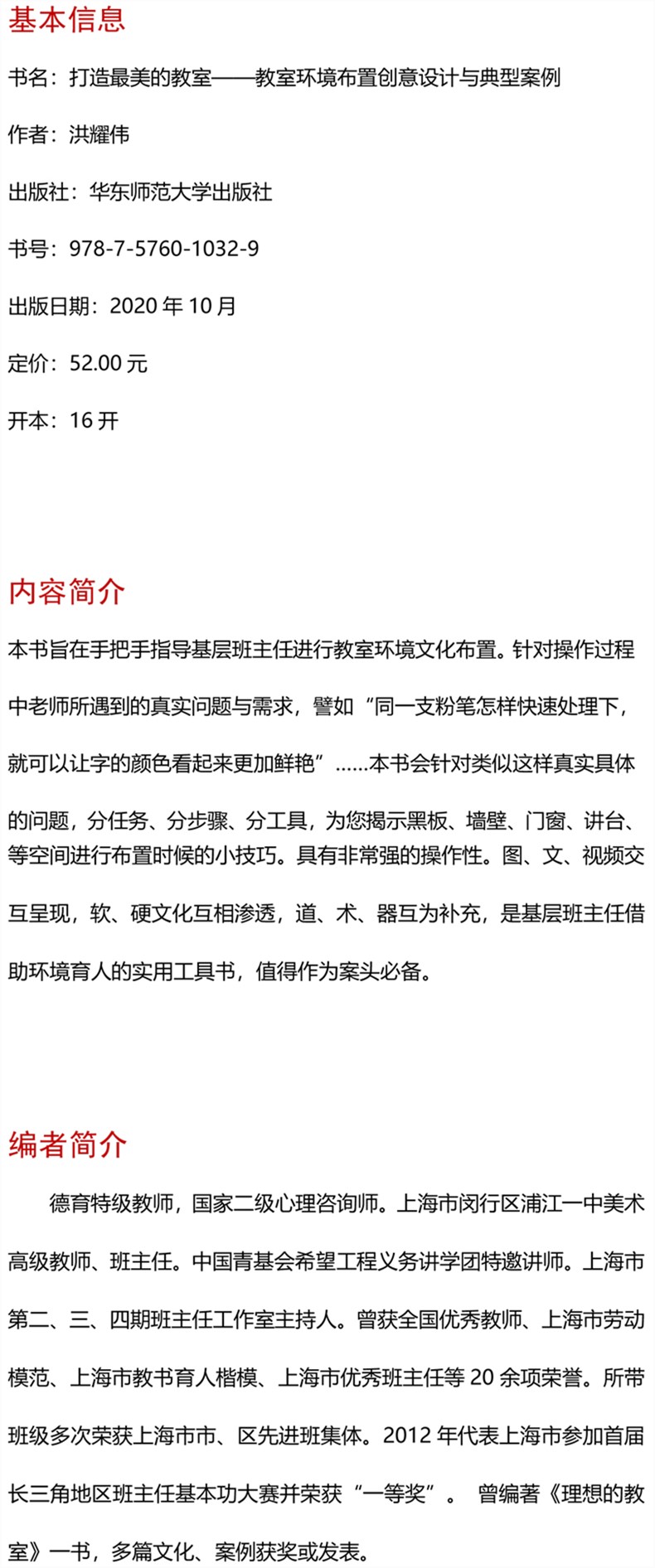 有干货:本书是“上海市第三期班主任带头人(洪耀伟)工作室”成员,长期实地考察和现场讨论后打磨的精品,实用、接地气,涉及教室布置的方方面面,是年轻班主任打造理想教室的指南手册,是资深班主任专业提升的好帮手。