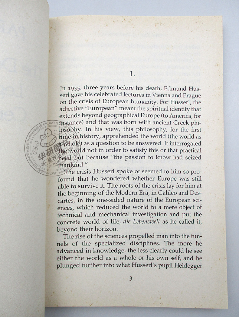 In 1935, three years before his death, Edmund Husserl gave his celebrated lectures in Vienna and Prague on the crisis of European humanity. For Husserl, the adjective “European” meant the spiritual identity that extends beyond geographical Europe (to America, for instance) and that was born with ancient Greek philosophy. In his view, this philosophy, for the first time in history, apprehended the world (the world as a whole) as a question to be answered. It interrogated the world not in order to satisfy this or that practical need but because “the passion to know had seized mankind.” The crisis Husserl spoke of seemed to him so profound that he wondered whether Europe wasstill able to survive it. The roots of the crisis lay for him at the beginning of the Modern Era, in Galileoand Descartes, in the one-sided nature of the European sciences, which reduced the world to a mereobject of technical and mathematical investigation and put the concrete world of life, die Lebenswelt ashe called it, beyond their horizon. The rise of the sciences propelled man into the tunnels of the specialized disciplines. The more headvanced in knowledge, the less clearly could he see either the world as a whole or his own self, and hep lunged further into what Husserl’s pupil Heidegger called, in a beautiful and almost magical phrase, “the forgetting of being.”