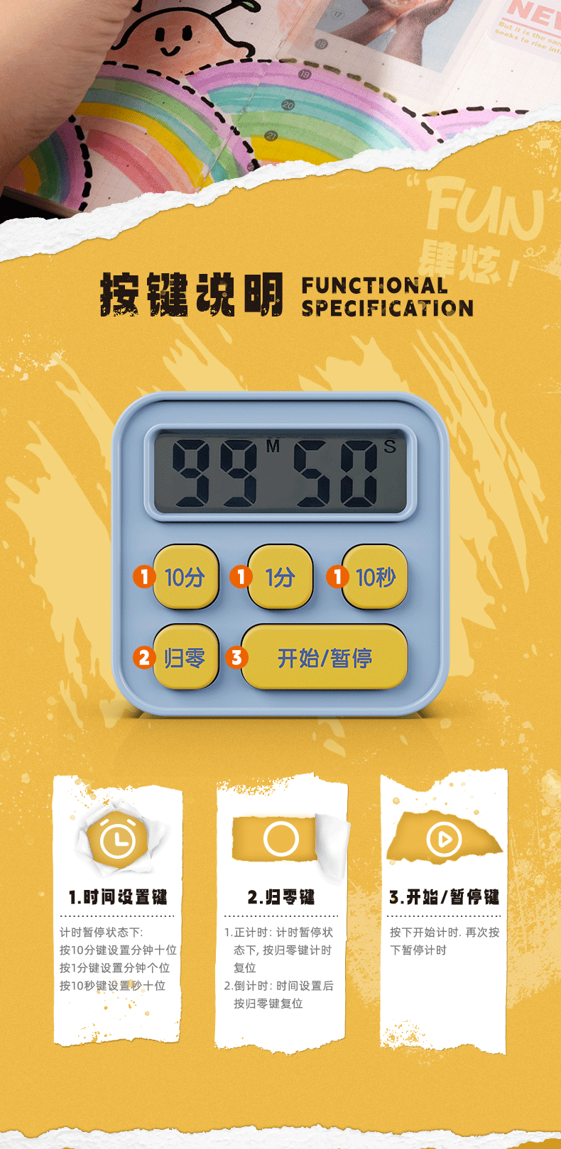 得力LE201磁吸计时器学习专用学生儿童做题秒表自律电子闹钟时间管理