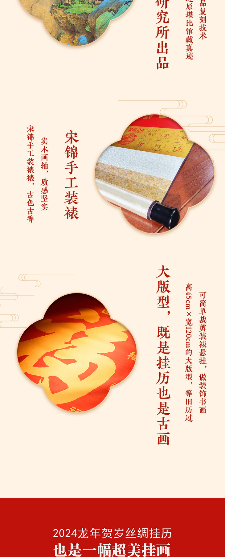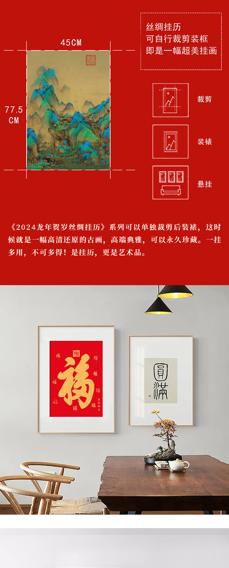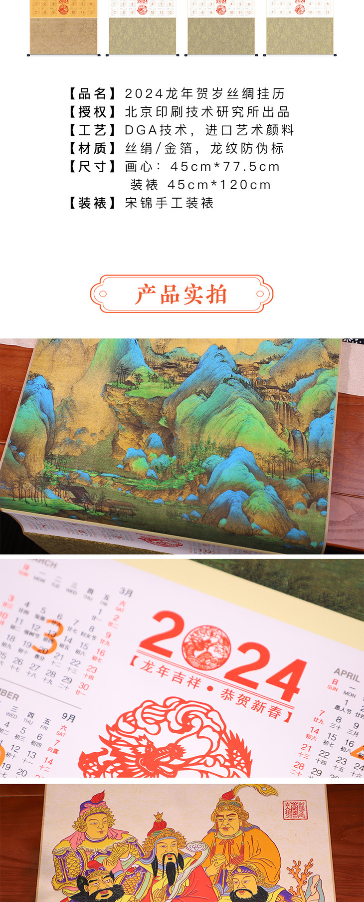 【现货】《2024龙年贺岁丝绸挂历》系列 北京印刷技术研究所出品 DGA技术还原 丝绢/金箔材质 龙纹防伪标 手工装裱