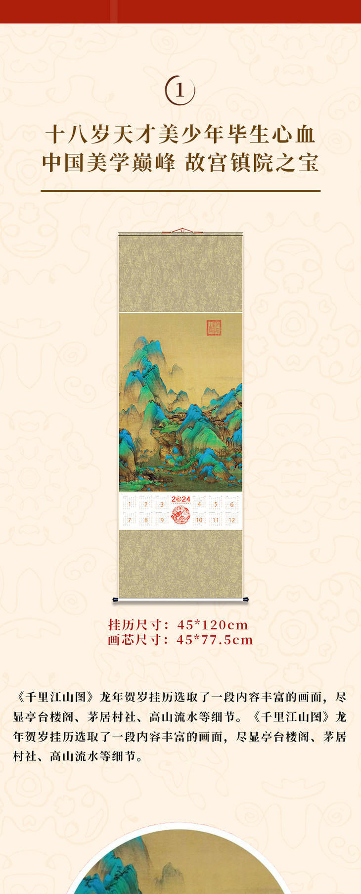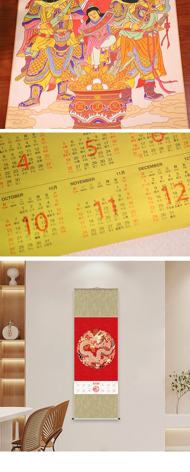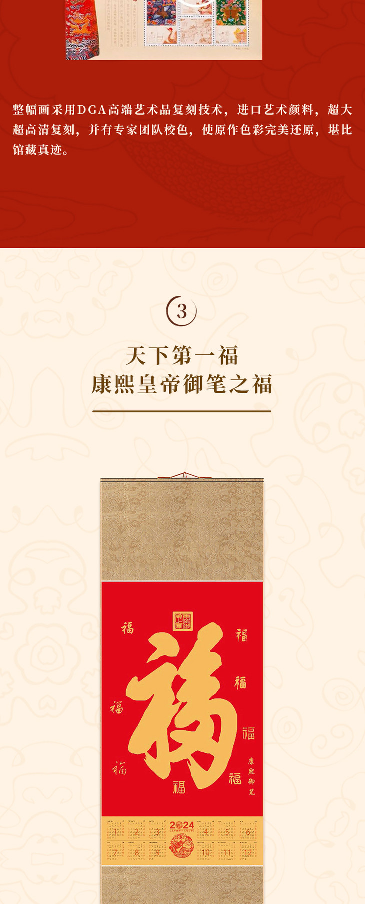 【现货】《2024龙年贺岁丝绸挂历》系列 北京印刷技术研究所出品 DGA技术还原 丝绢/金箔材质 龙纹防伪标 手工装裱