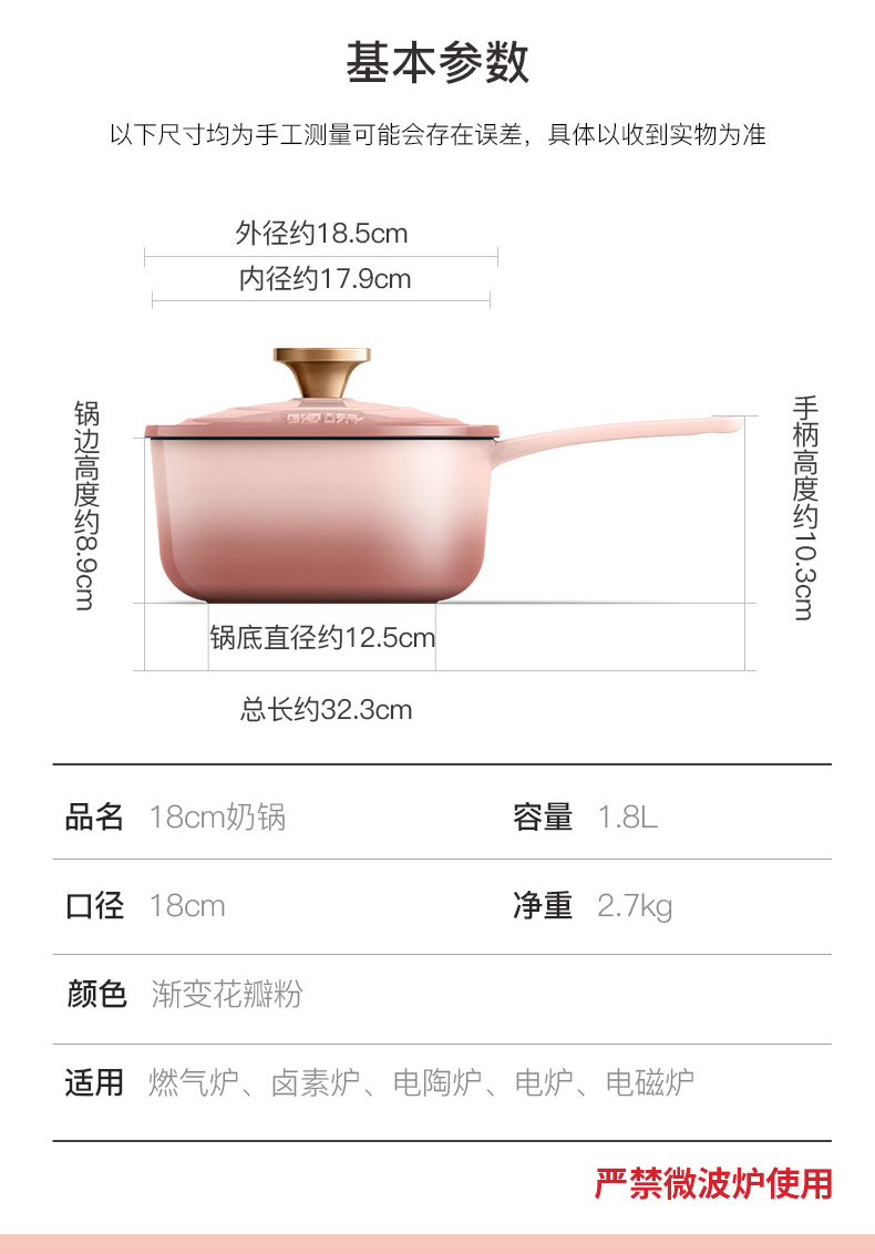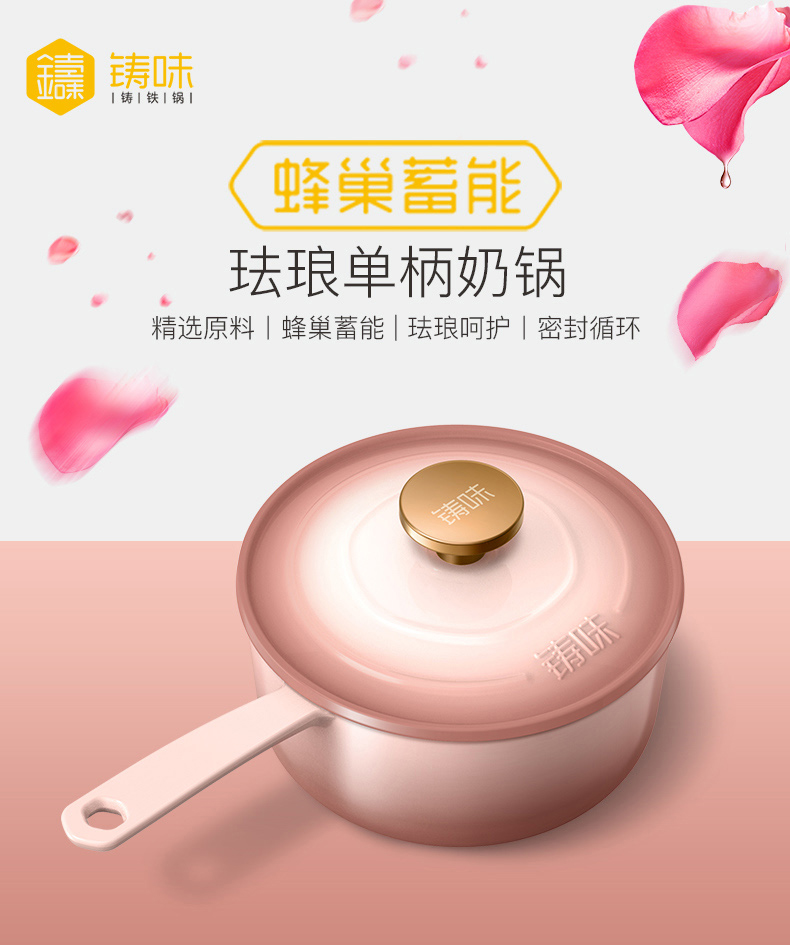 铸味 | 铸铁18cm奶锅汤锅 珐琅铸铁锅单柄小奶锅 搪瓷宝宝辅食奶锅 电磁炉通用