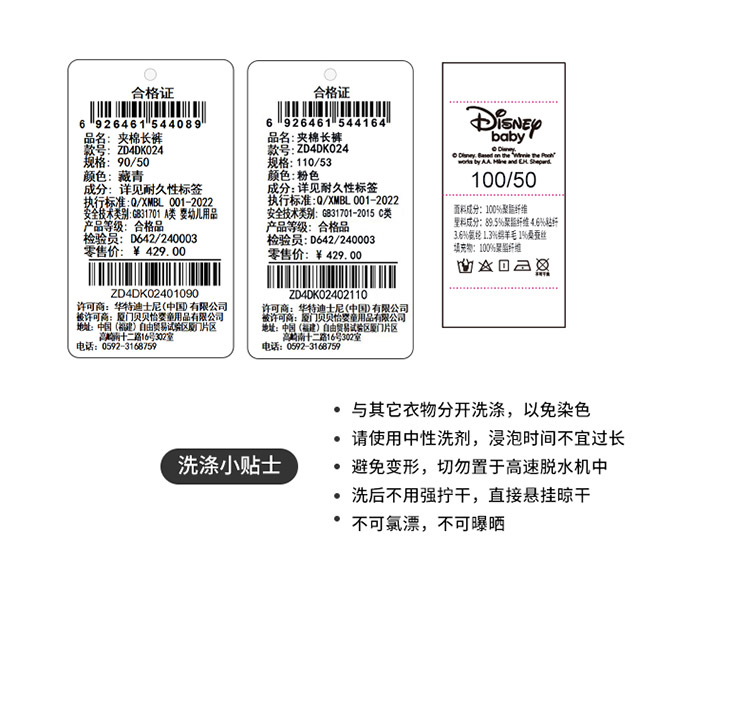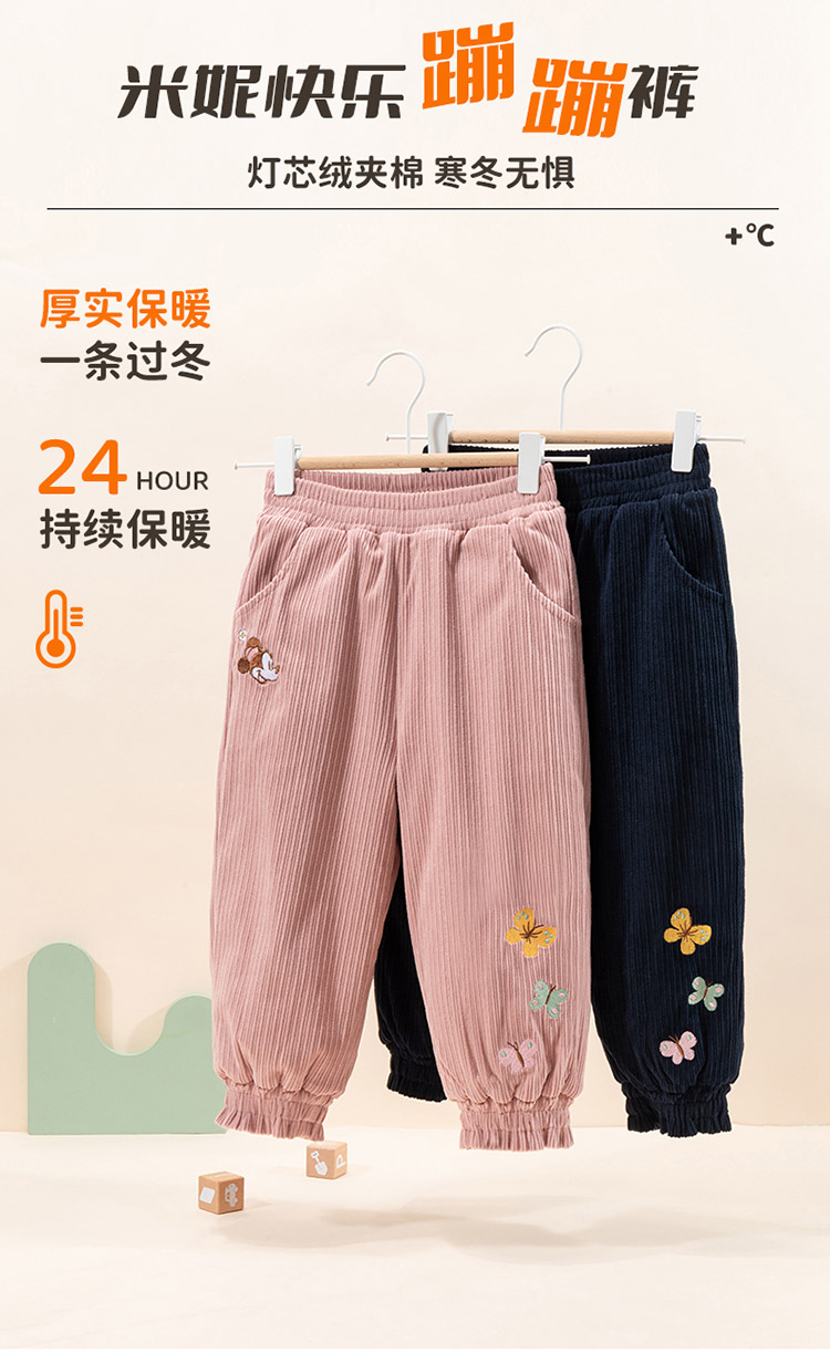 迪士尼女宝宝秋冬款夹棉保暖长裤ZD4DK024
