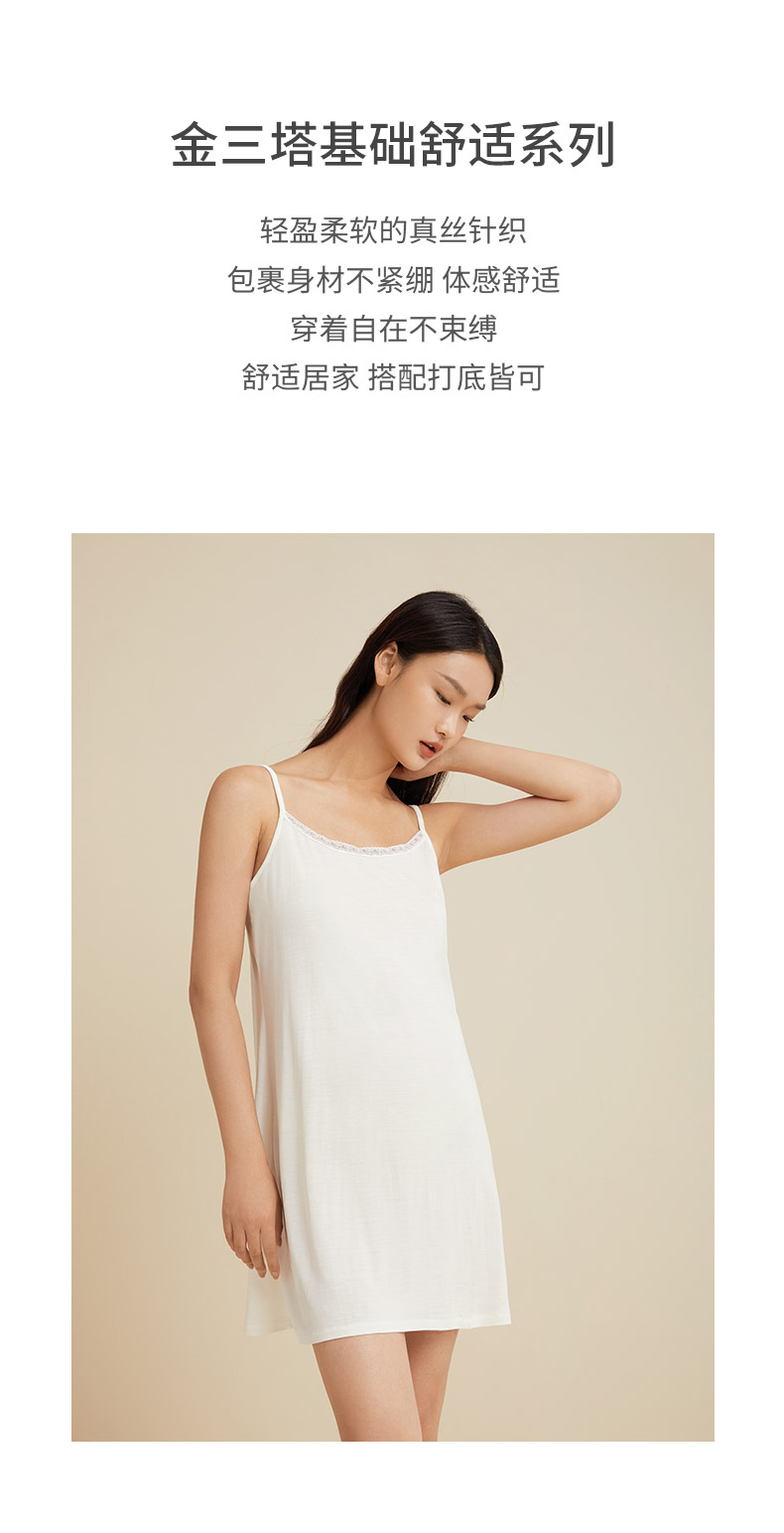 金三塔100%桑蚕丝亲肤舒适打底真丝吊带睡裙 性感睡衣女真丝衬裙 1YZF3B310