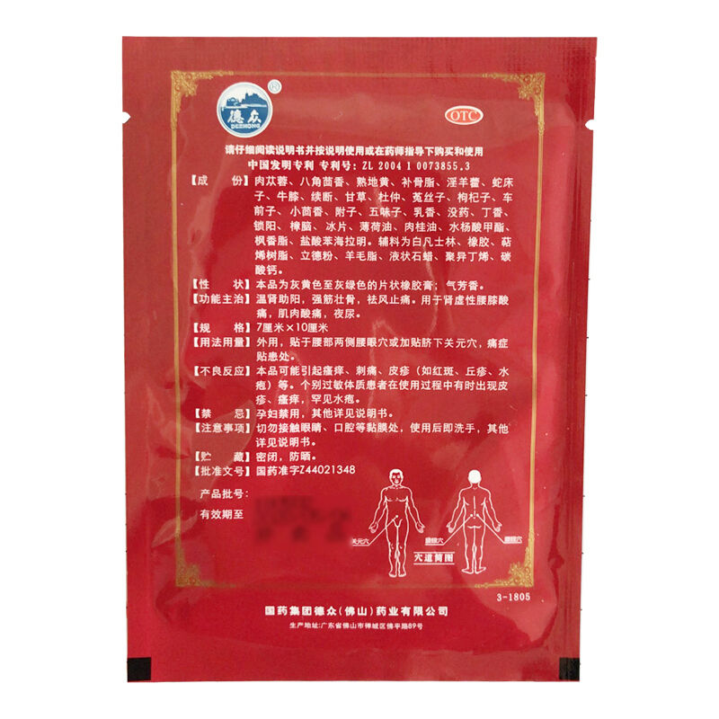 德众 腰肾膏 7cm*10cm*12贴 温肾助阳肾虚性腰膝酸痛补肾贴助阳膏
