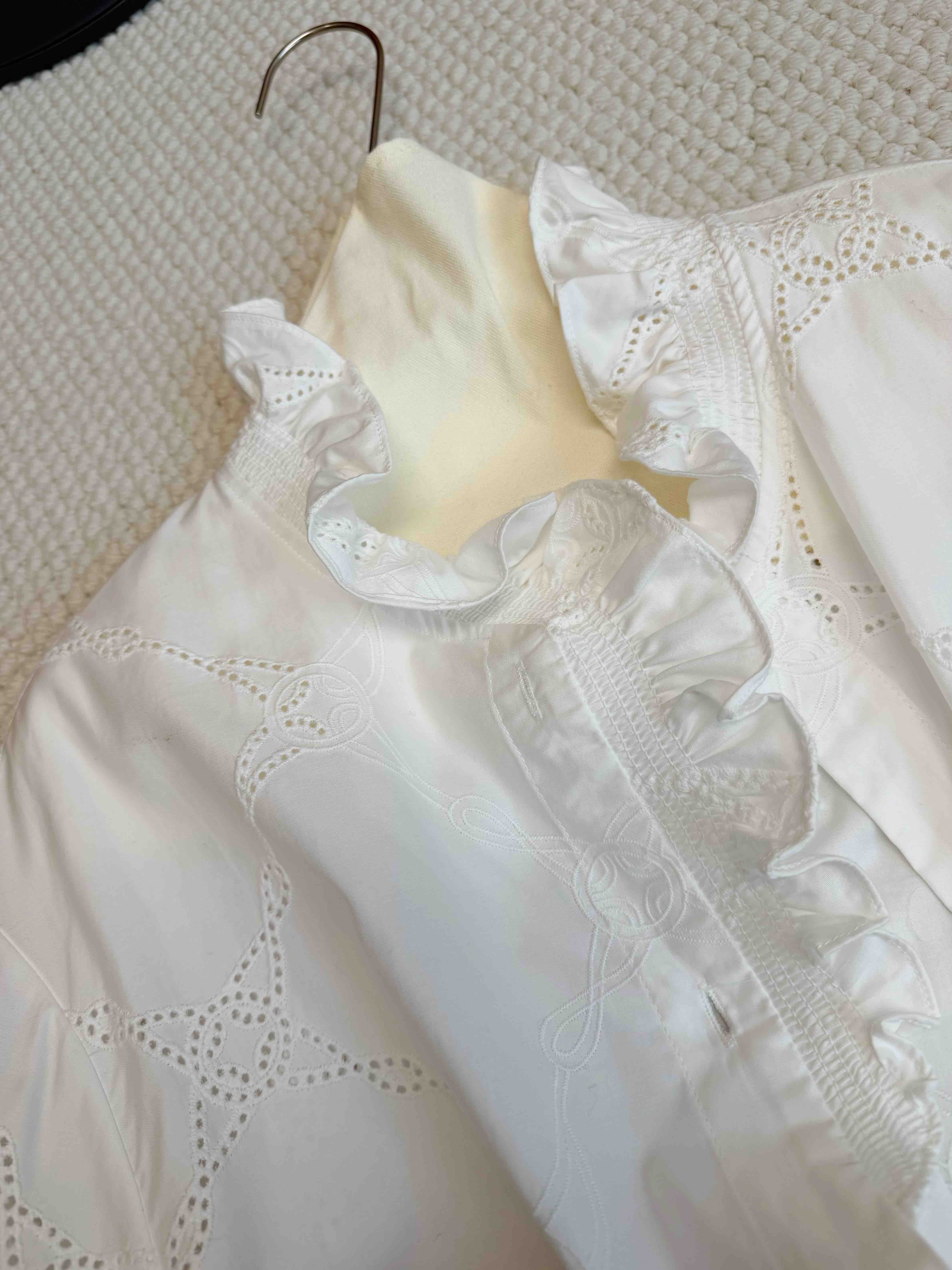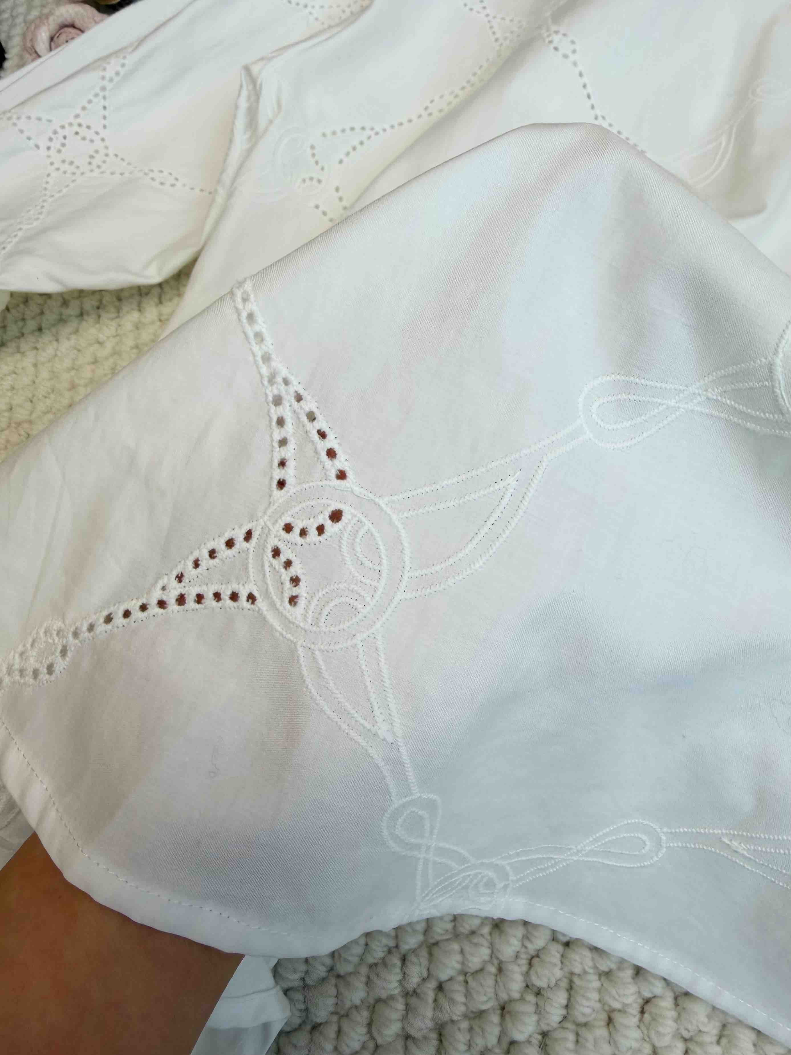 100%棉,H家原版面料,巨美腻!一个锁扣一半镂空刺绣,一半普通刺绣。