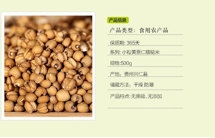 贵州小粒糯黄薏仁米 无硫熏 无添加 生态粗粮