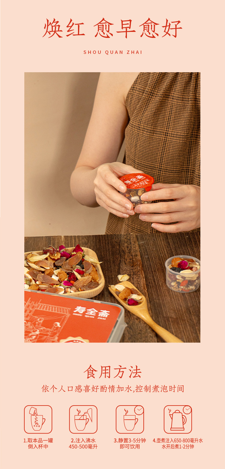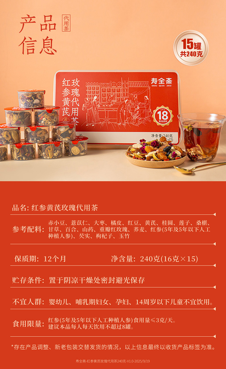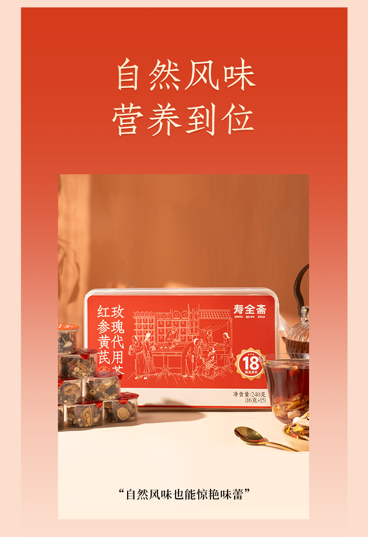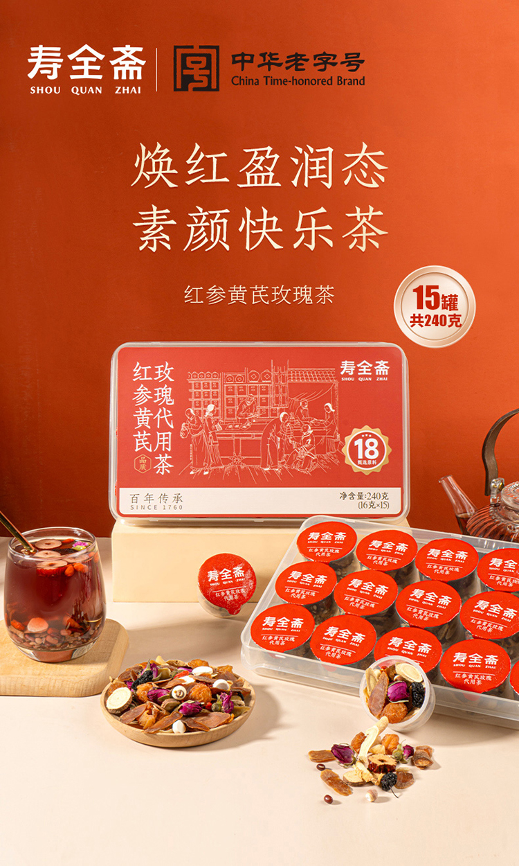 【寿全斋】红参黄芪玫瑰代用茶240g/盒 (16g*15罐)