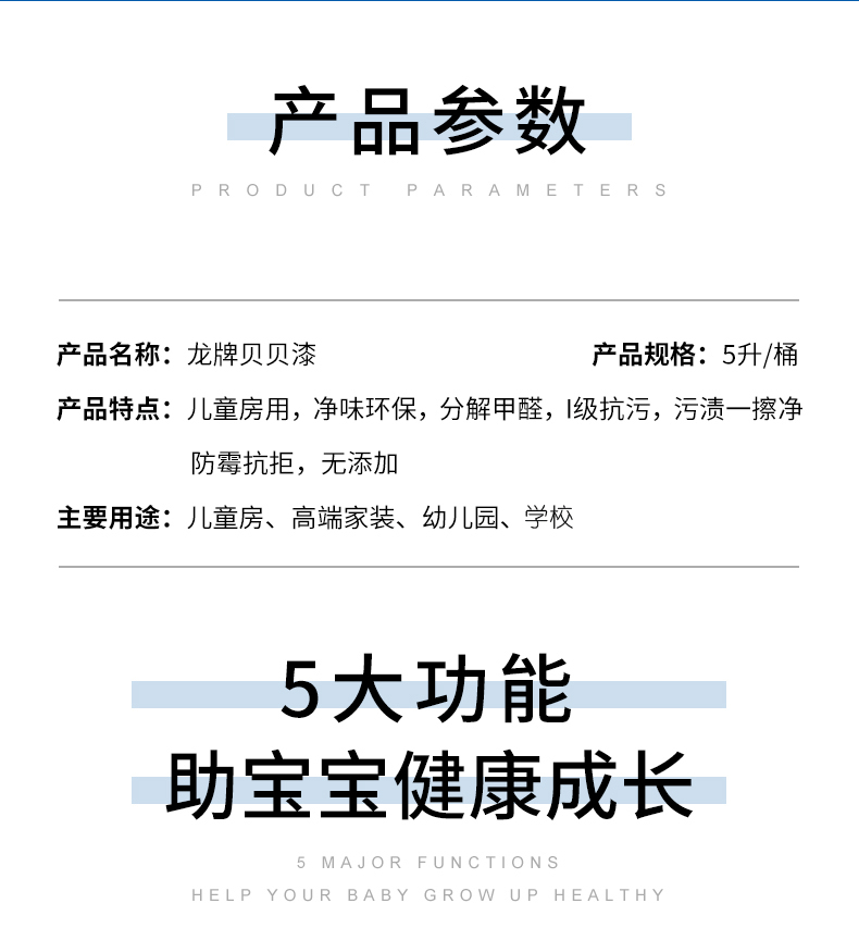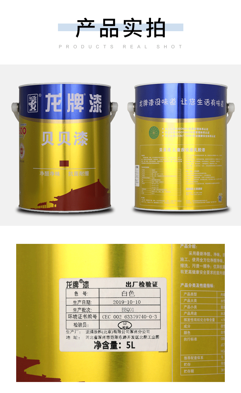 龙牌贝贝漆 净醛抗涂鸦内墙面乳胶漆 贝贝漆5L