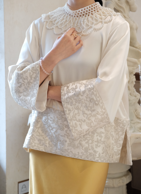 盛唐牡丹 | 珍珠白蝶恋花女上衣-半丝[特价品]