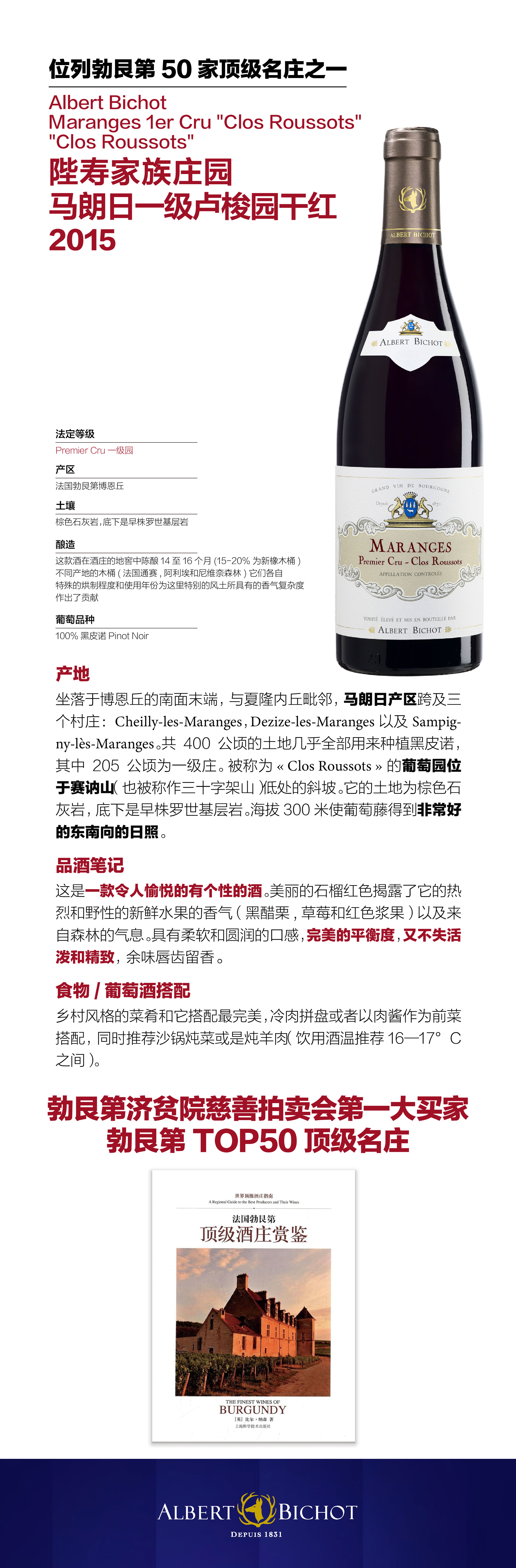 陛寿家族马朗日一级卢梭园干红2015/2012Albert Bitchot Maranges 1er Cru Clos Roussots