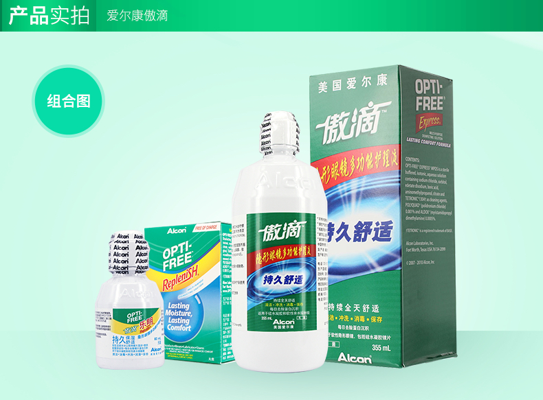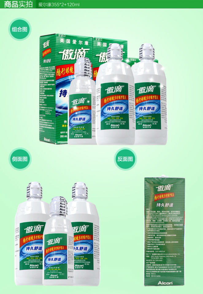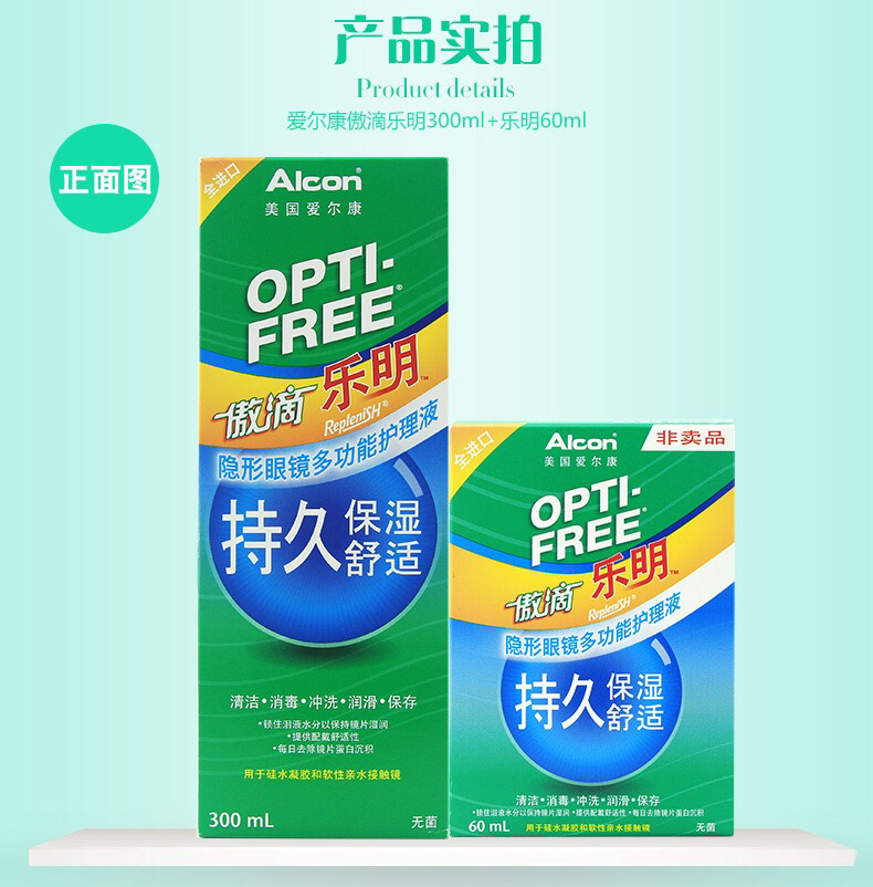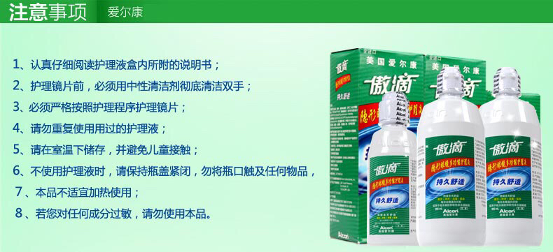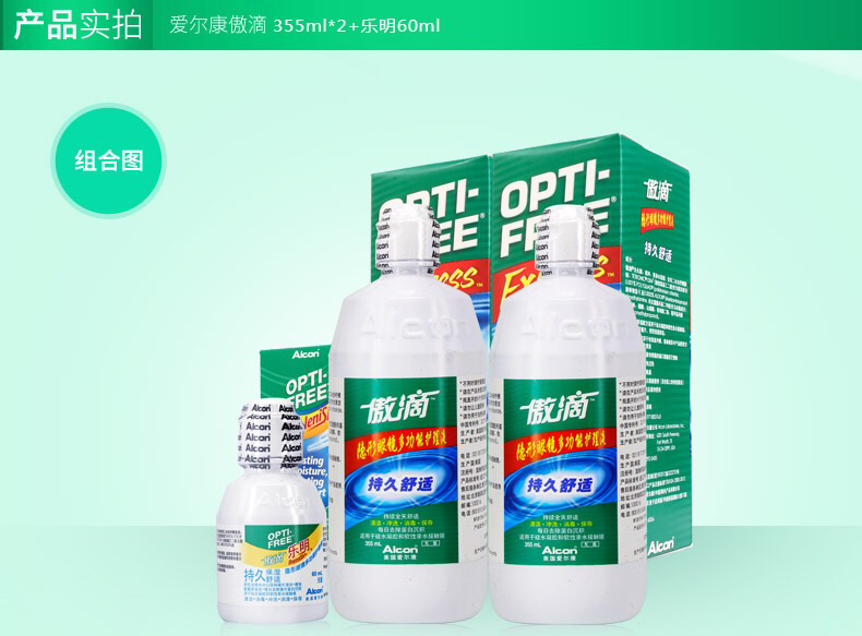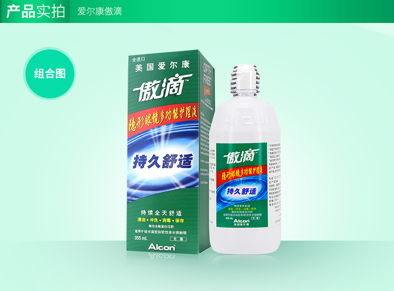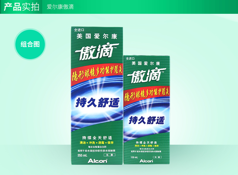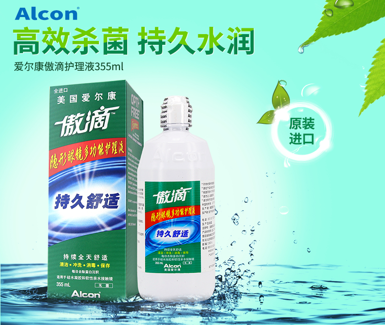 爱尔康隐形眼镜护理液傲滴120ml/355ml/乐明60ml,美瞳近视药水除蛋白,杀菌