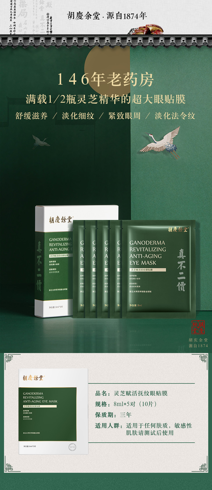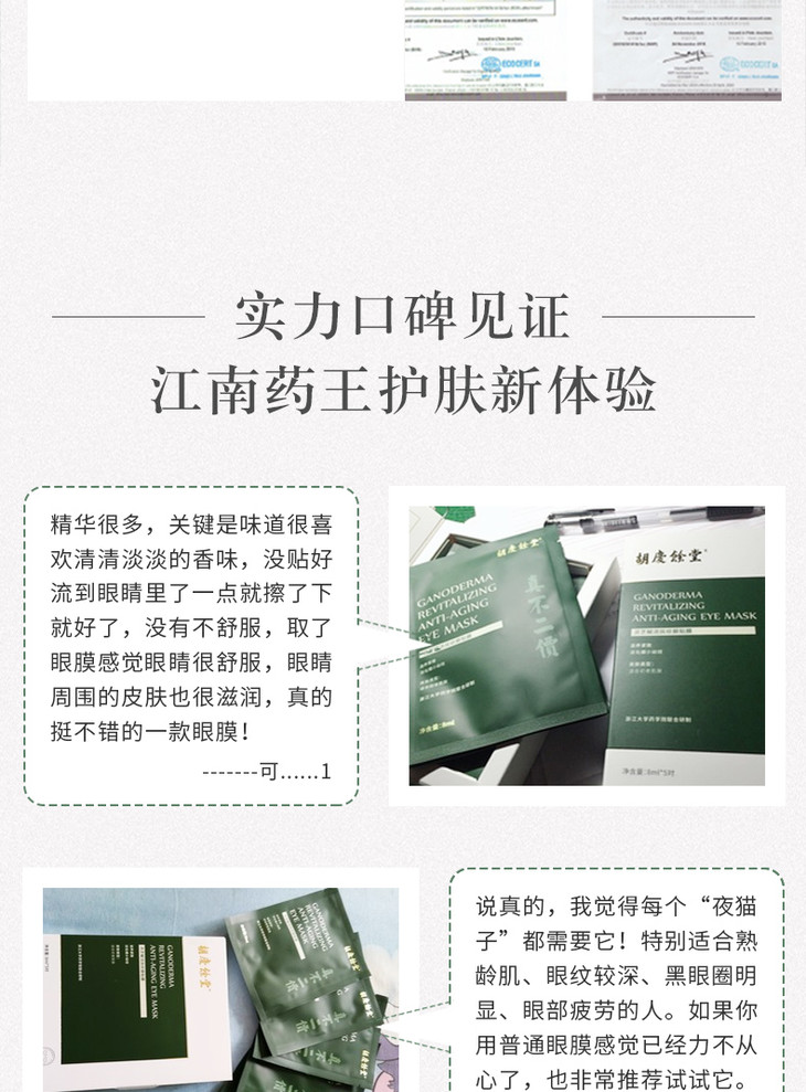 胡庆余堂 灵芝赋活抚纹 眼贴膜