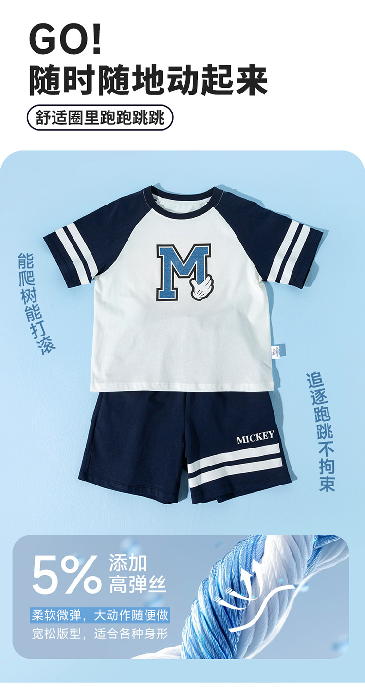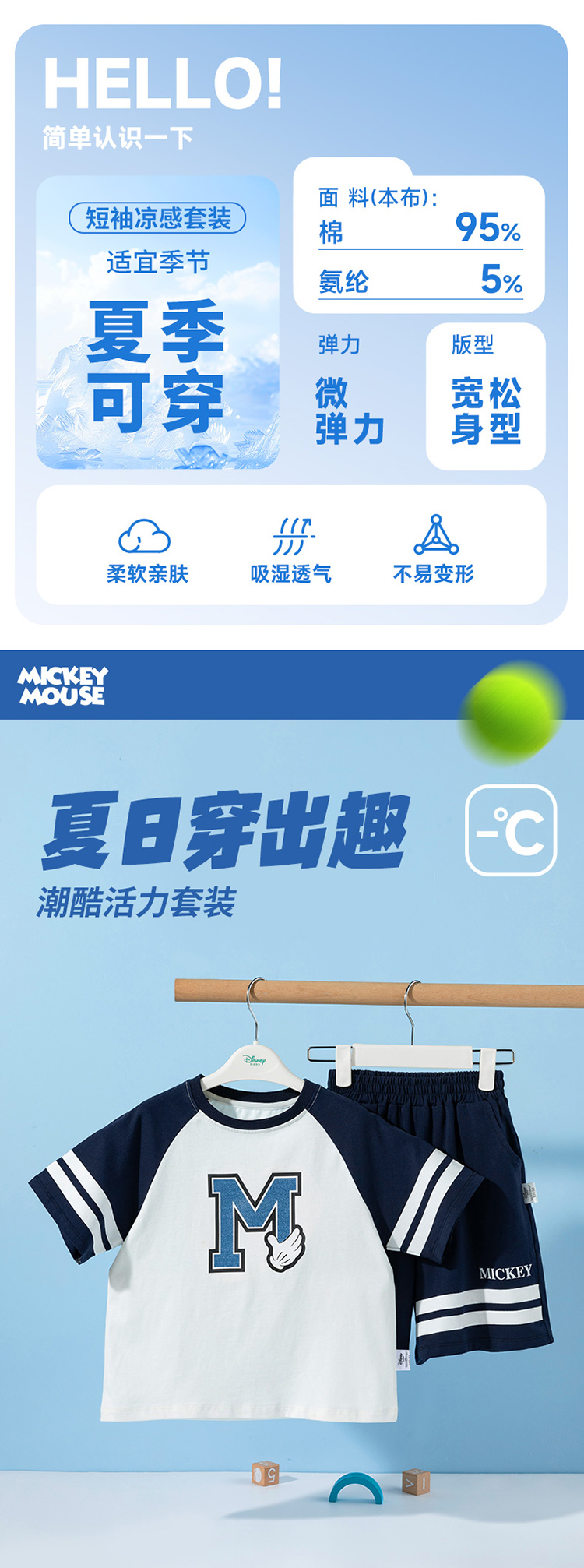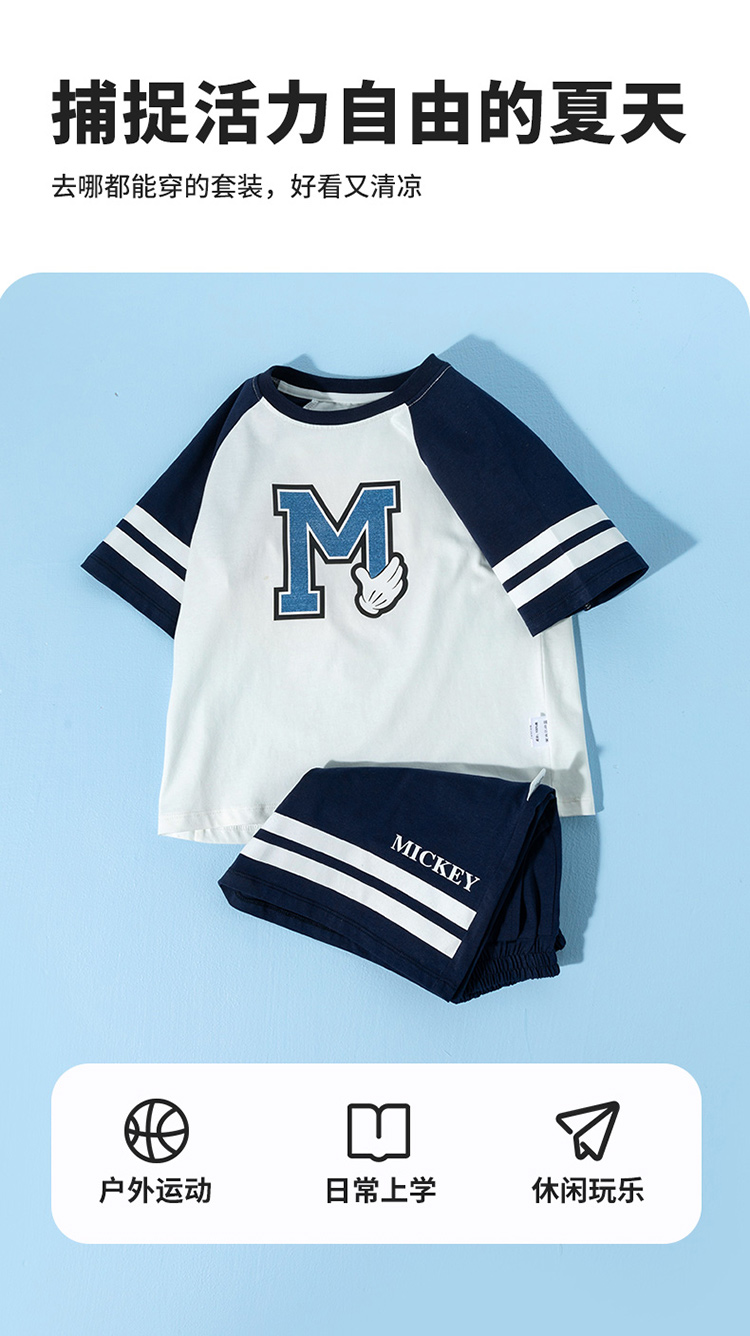 迪士尼2025夏季新款男童撞色凉感运动套装冰感短袖T恤轻薄透气短裤ZD2ET034