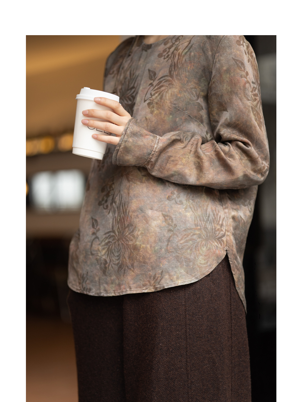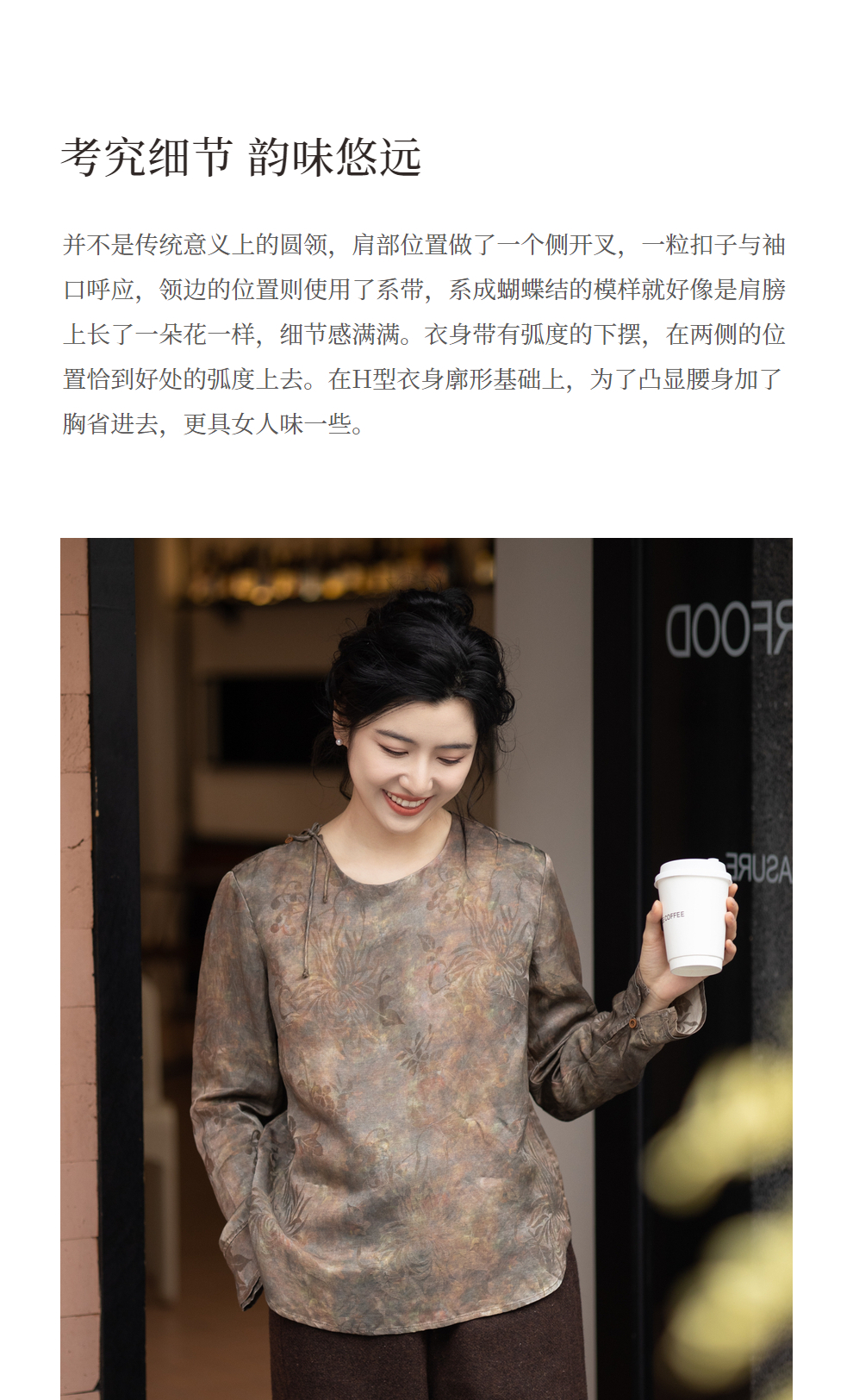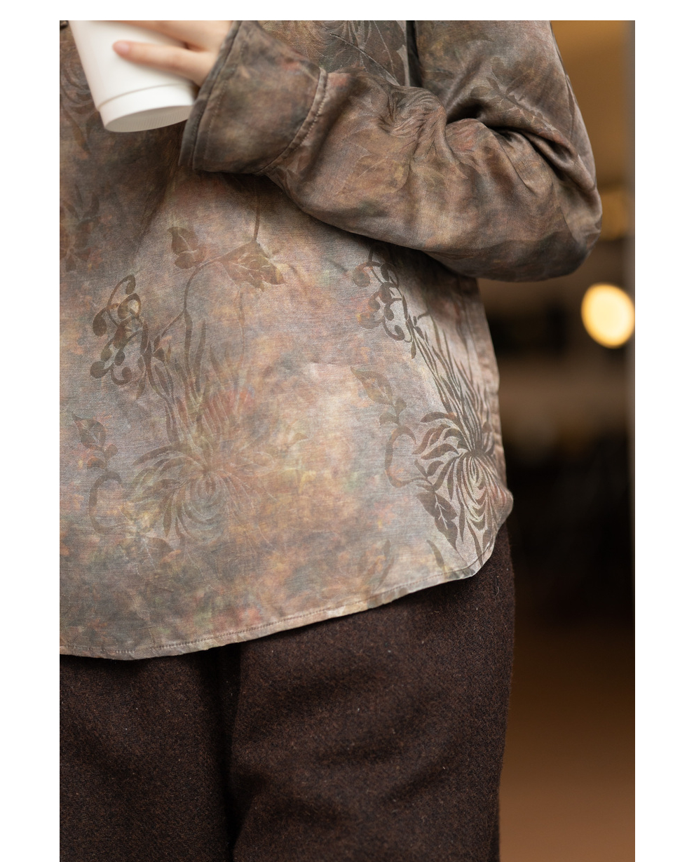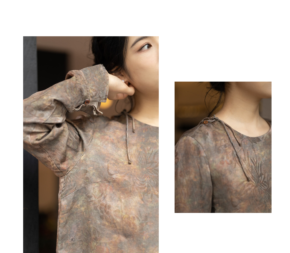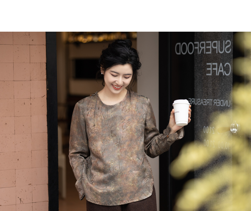 绽放1012朵/2023款圆领侧开叉长袖衬衫女