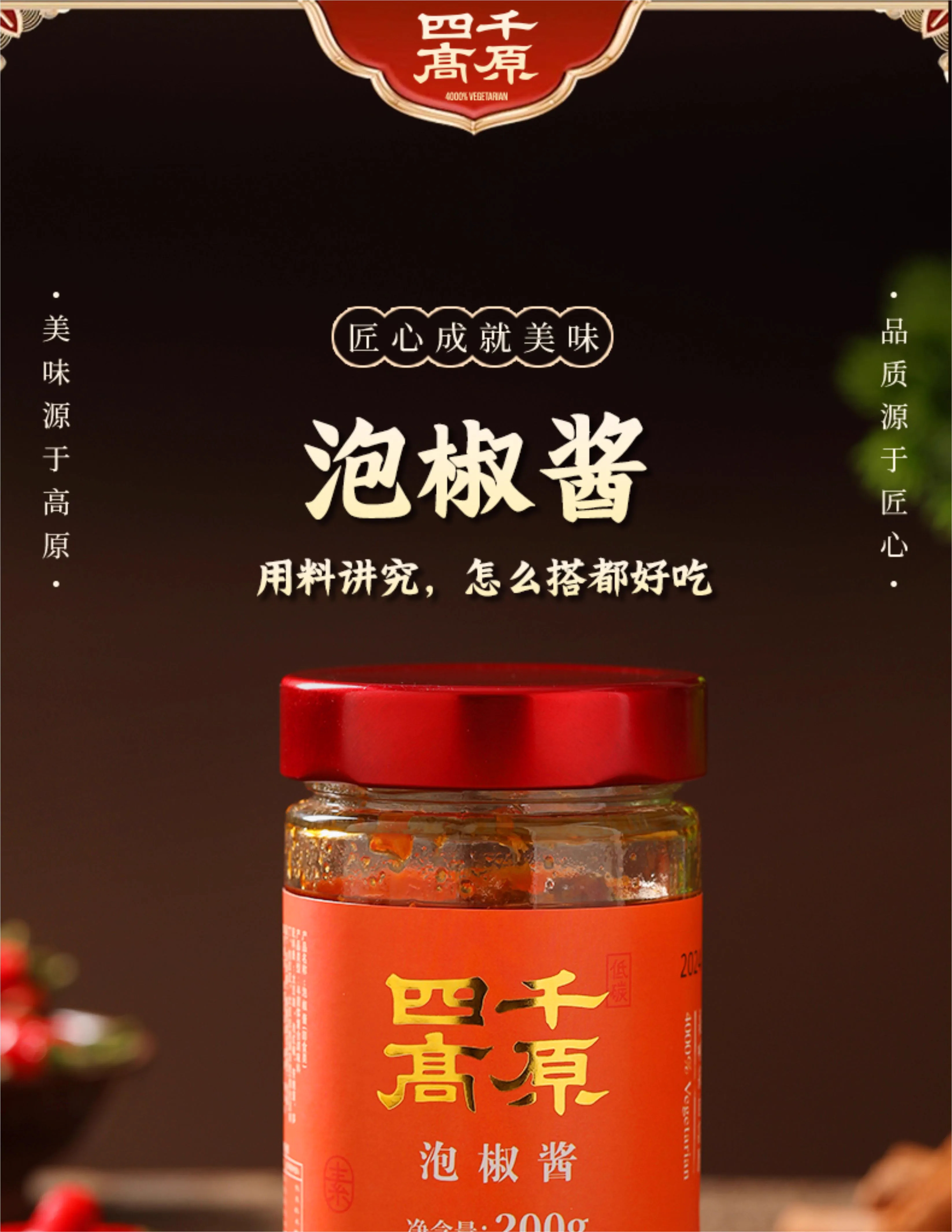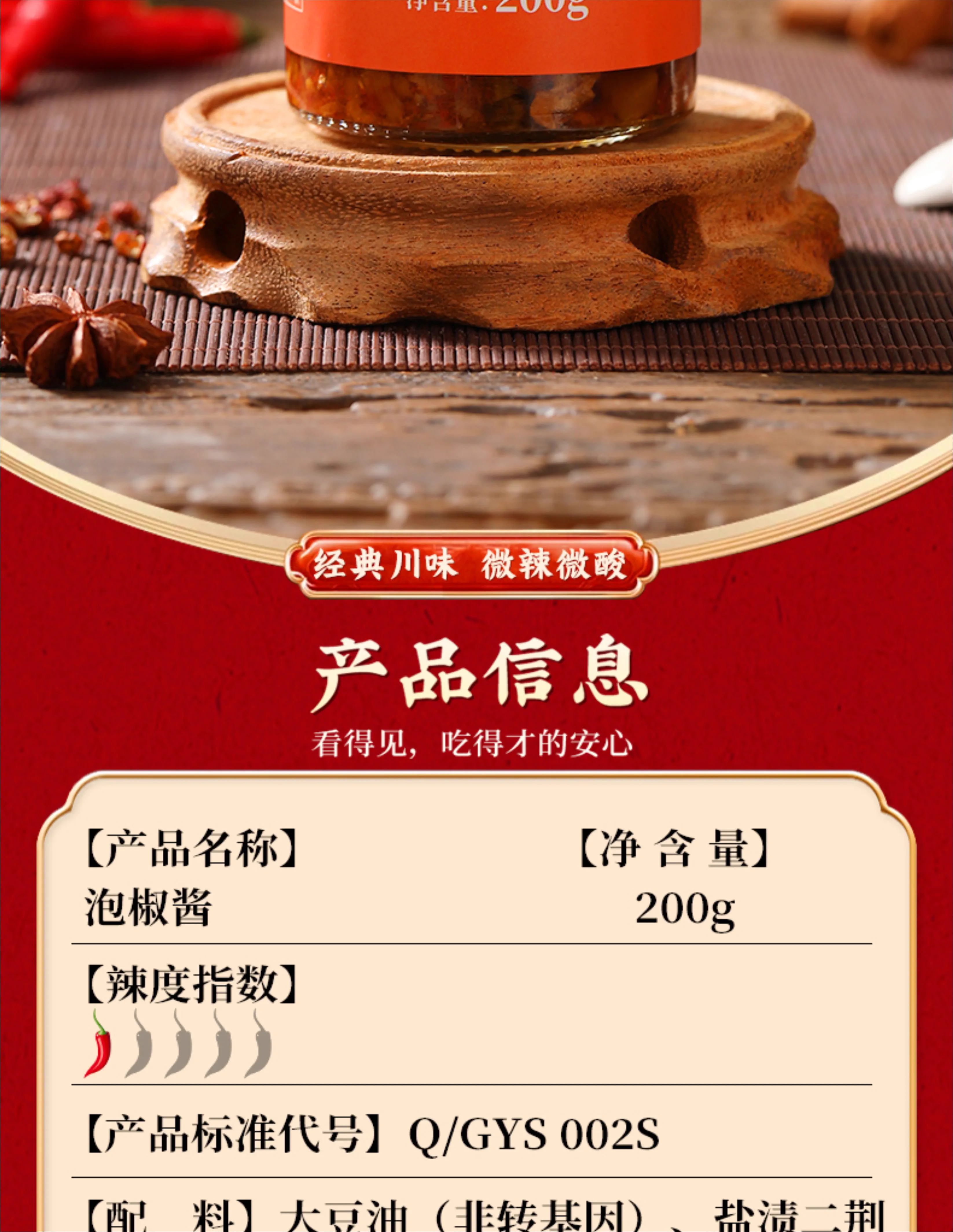泡椒酱 净素配料 微辣微酸 素辣酱拌菜拌饭拌面