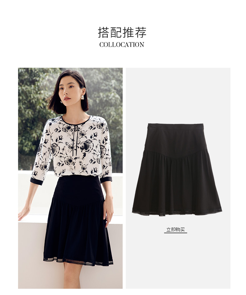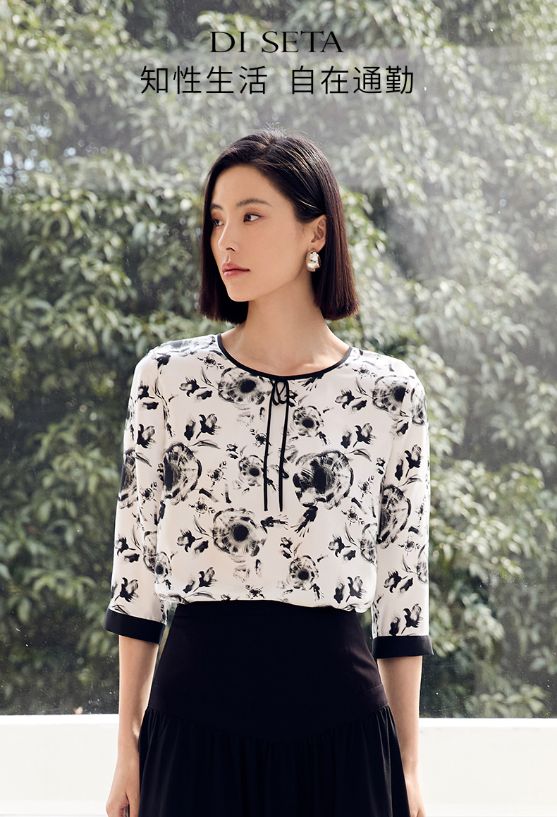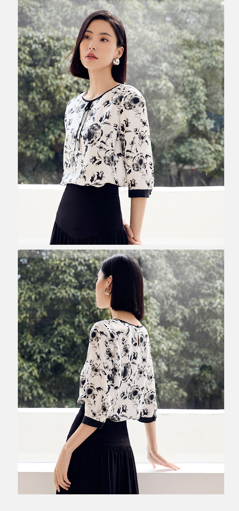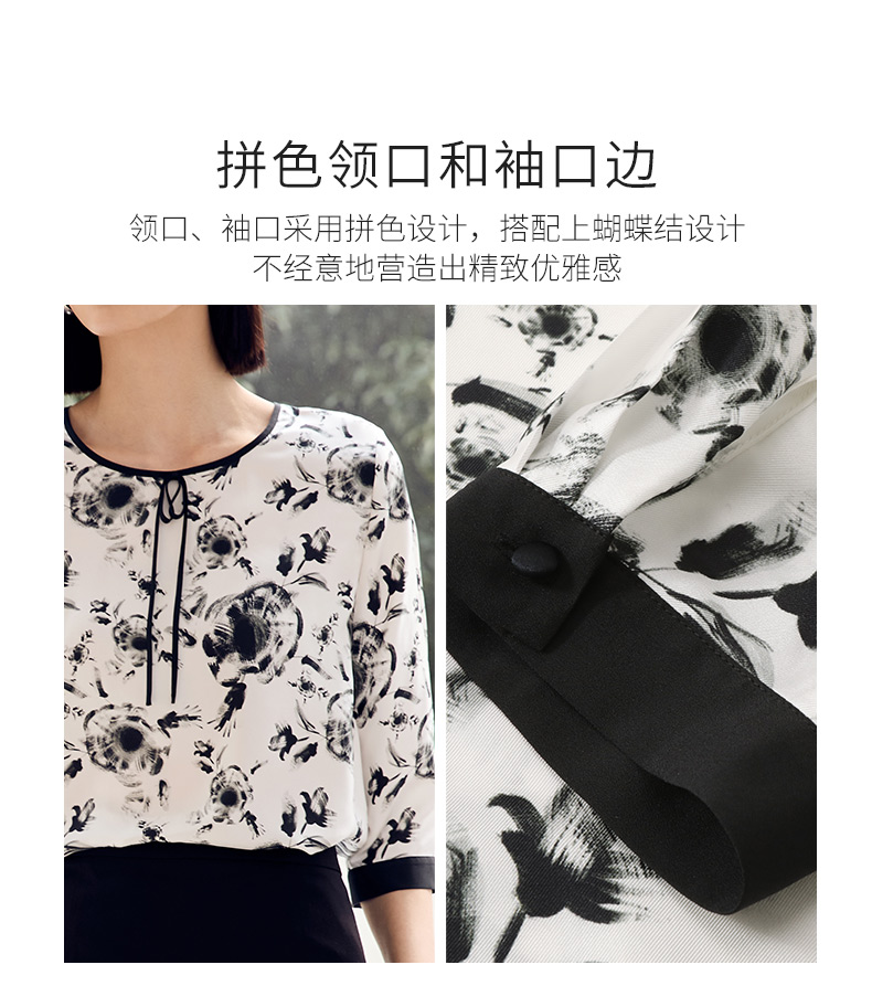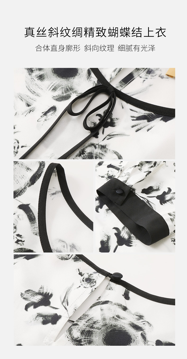 玳莎16mm斜纹绸蝴蝶结系带圆领真丝小衫女2023年夏季新款印花桑蚕丝上衣 DB31211