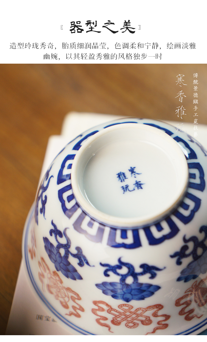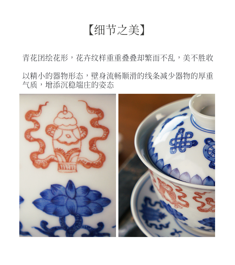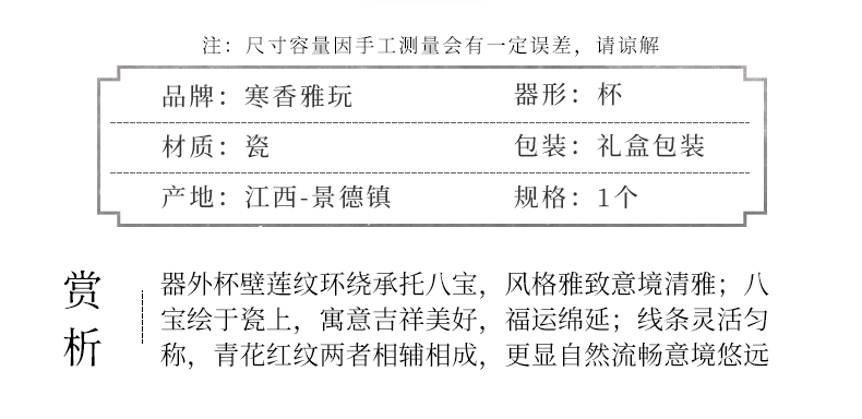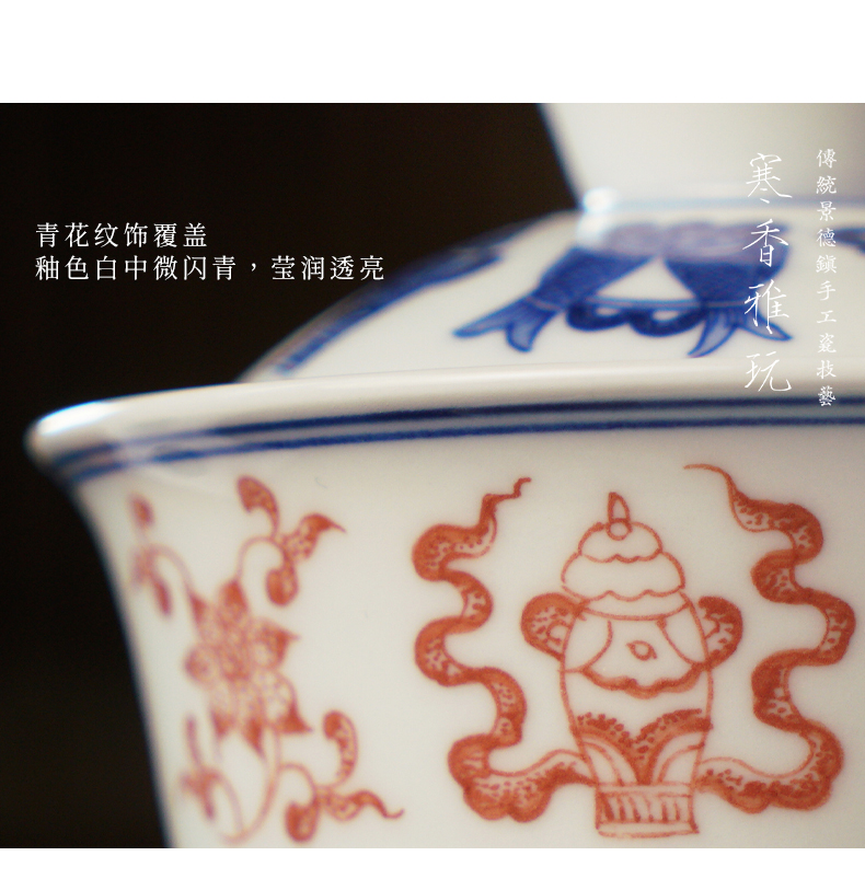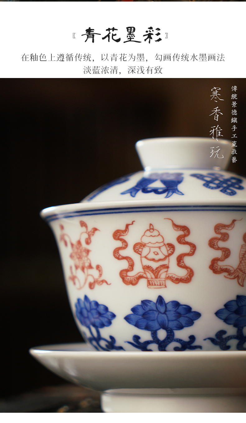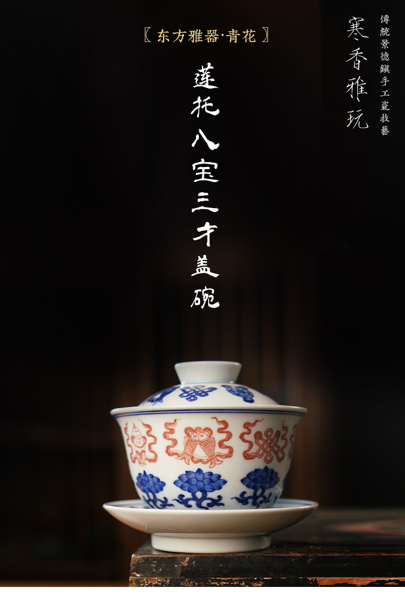 寒香雅玩青花莲托八宝三才盖碗(缺货)
