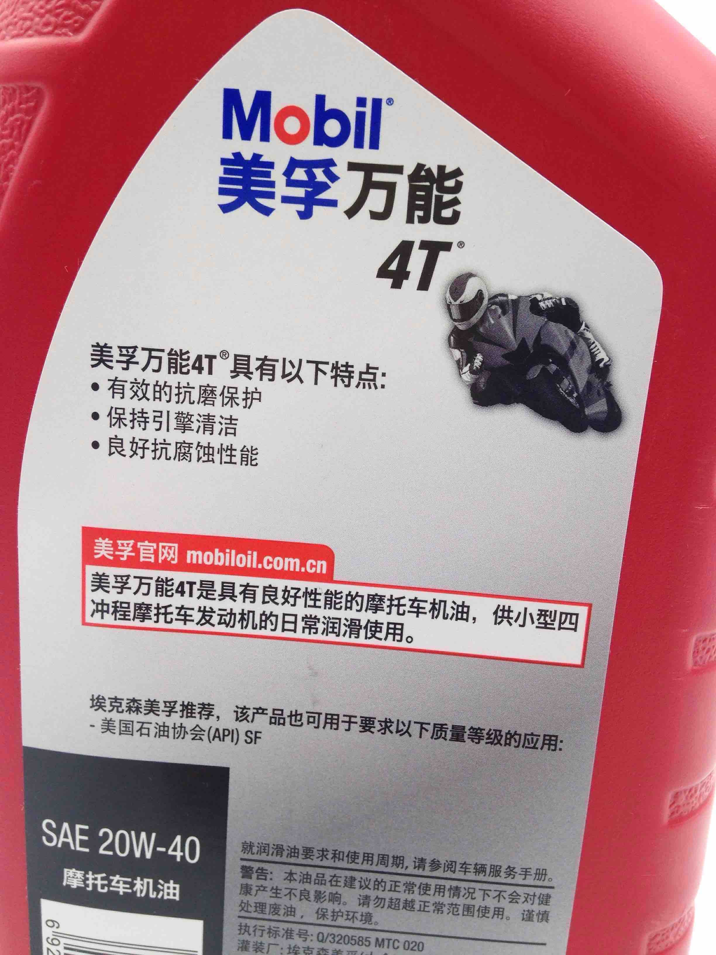 美孚万能4T摩托车机油20W-40