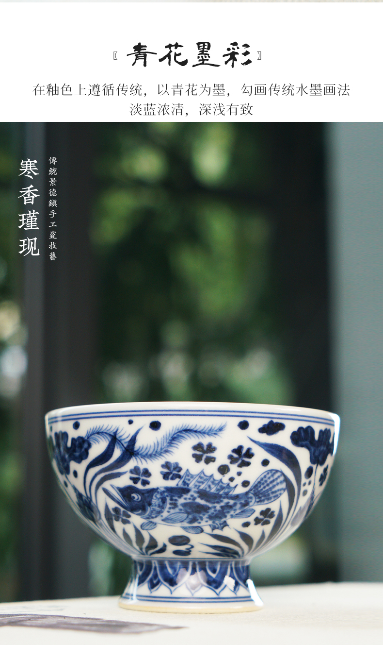 寒香瑾现元青花鱼跃莲池高足杯(缺货)