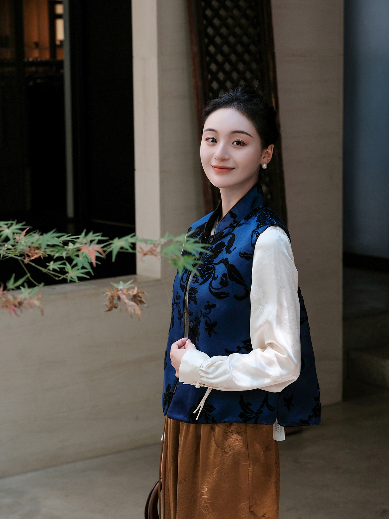 盛唐婧 |青花瓷两面穿扎染马甲 扎染面无扣子