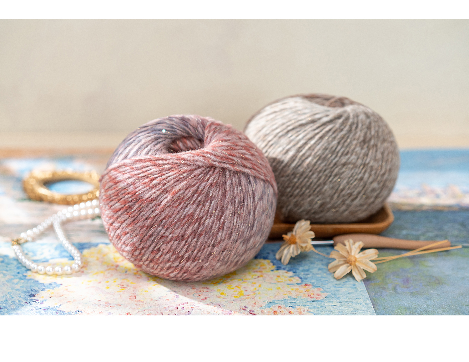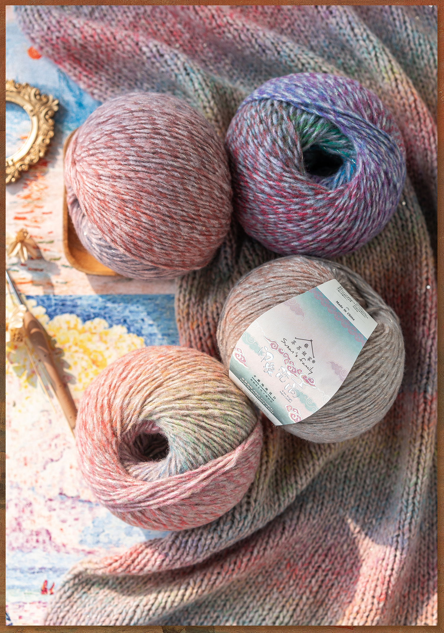 苏苏姐家印象梵高手工diy编织钩针棒针毛衣围巾段染亮片羊毛线团