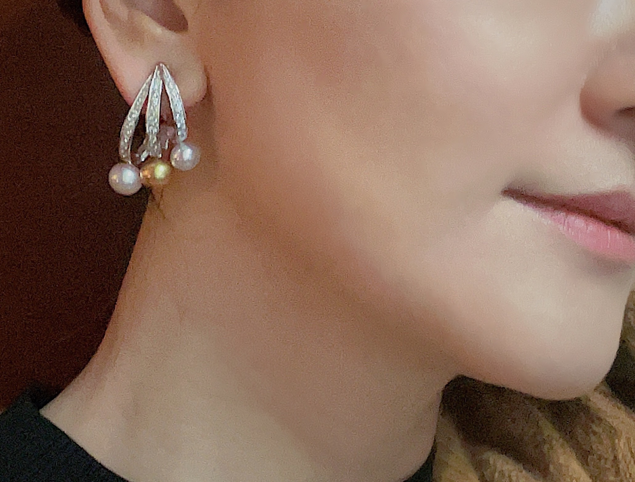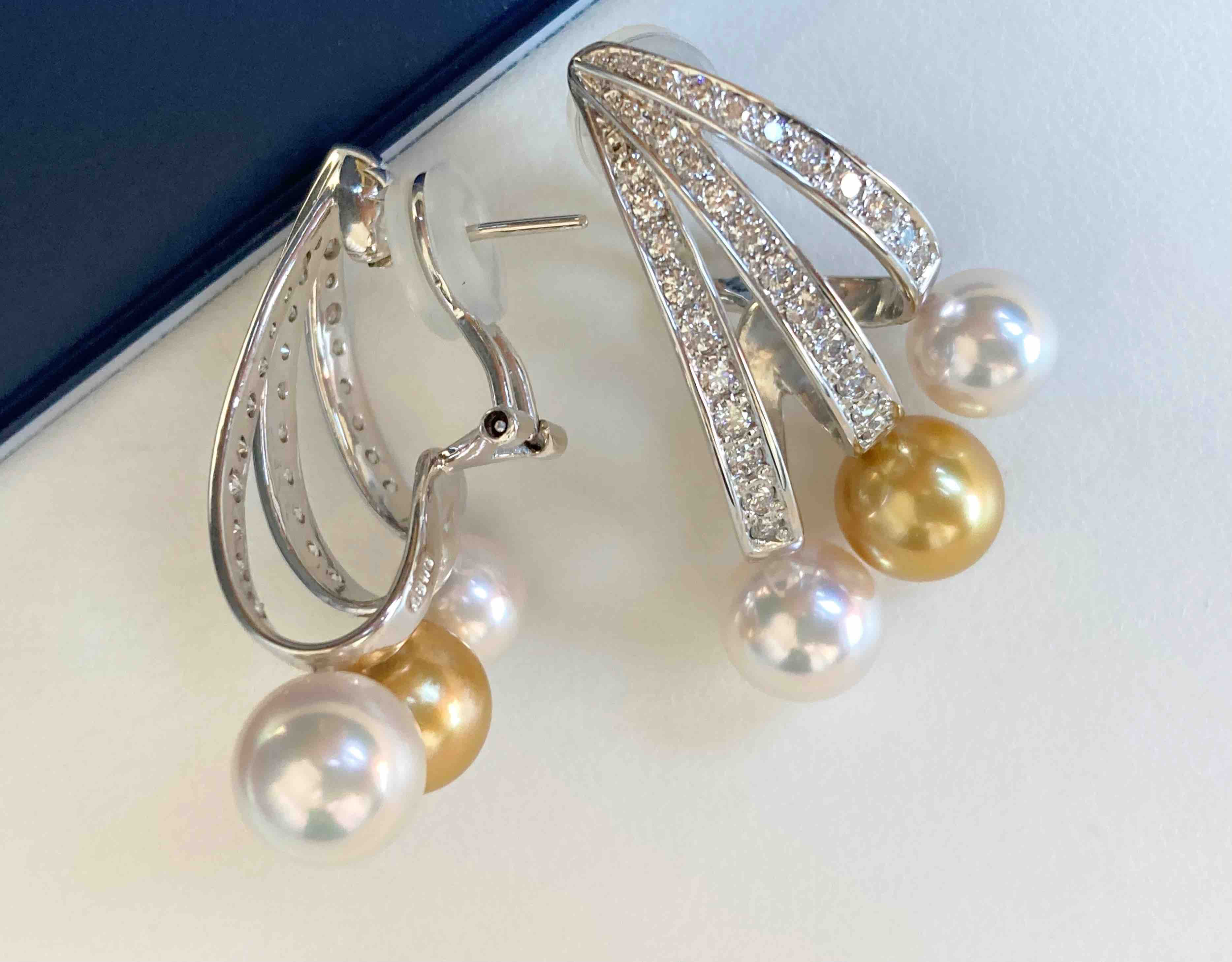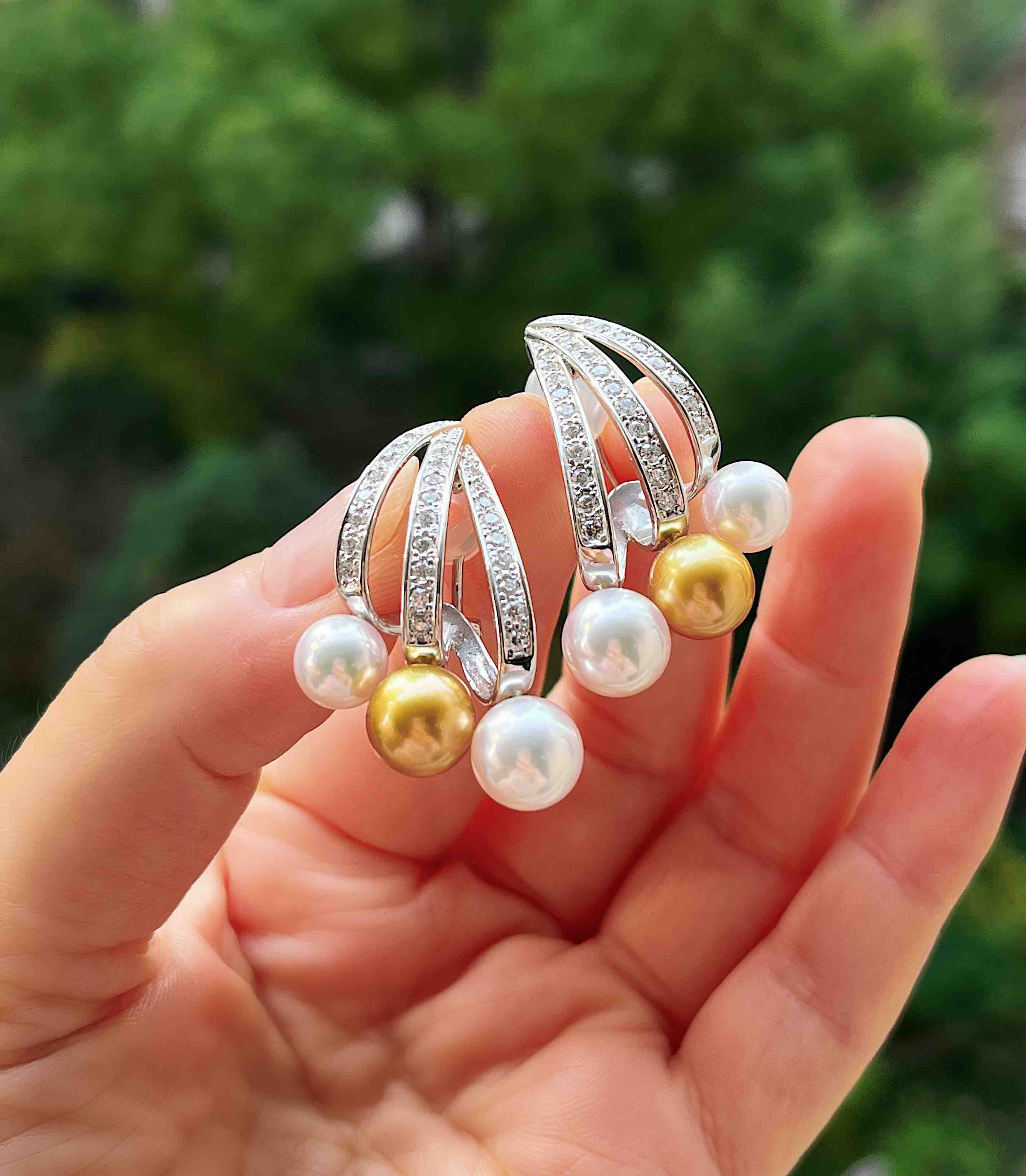 作品名称:18K镶钻石、Akoya和南洋珍珠耳钉