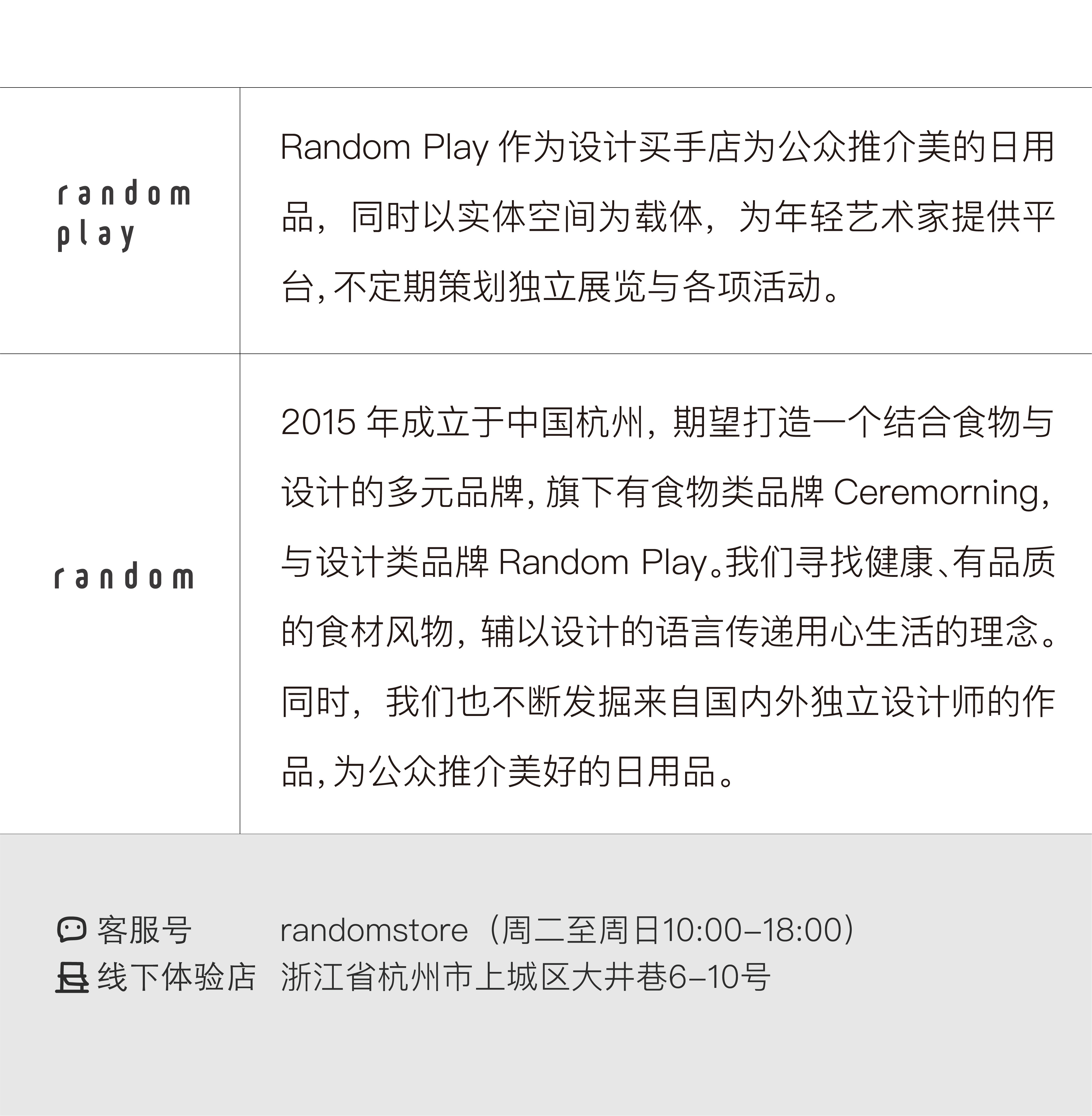 - Random是结合café与独立艺术设计的复合空间。我们致力于提供新鲜有机的饮品、甜点与沙拉,同时,也致力于引进国内外设计师的作品,并定期举办创意活动。希望倡导一种随心而至、健康精致的生活方式。