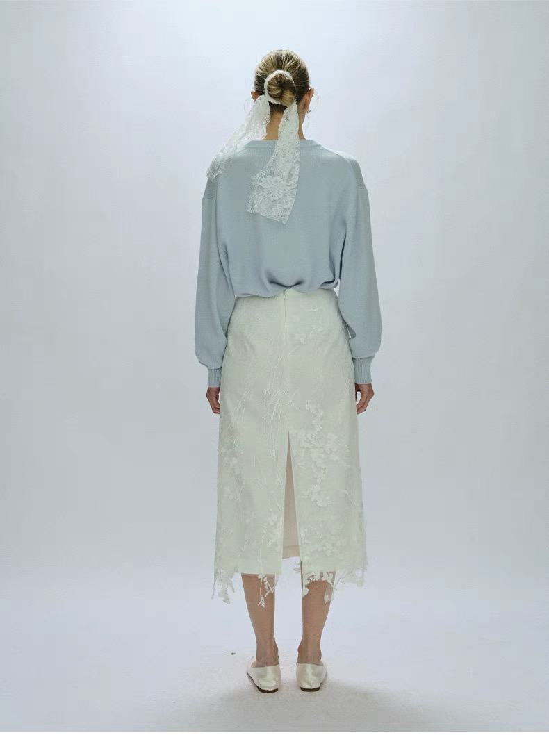 Viktoria Chan|AW23047 Amalia lace midi skirt [ 白 ]