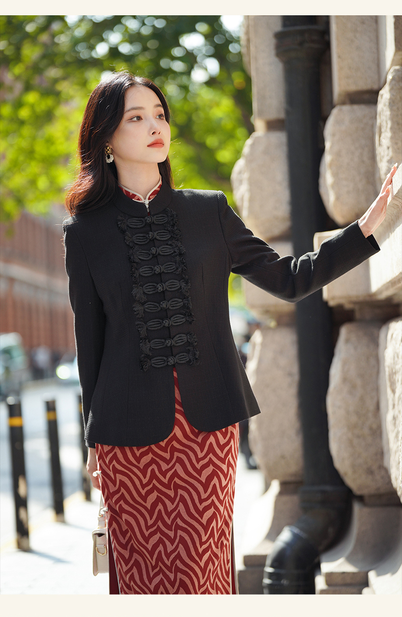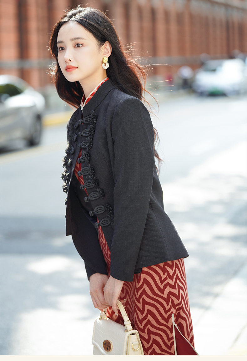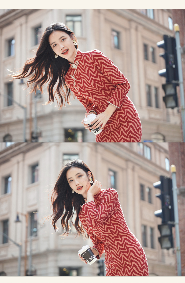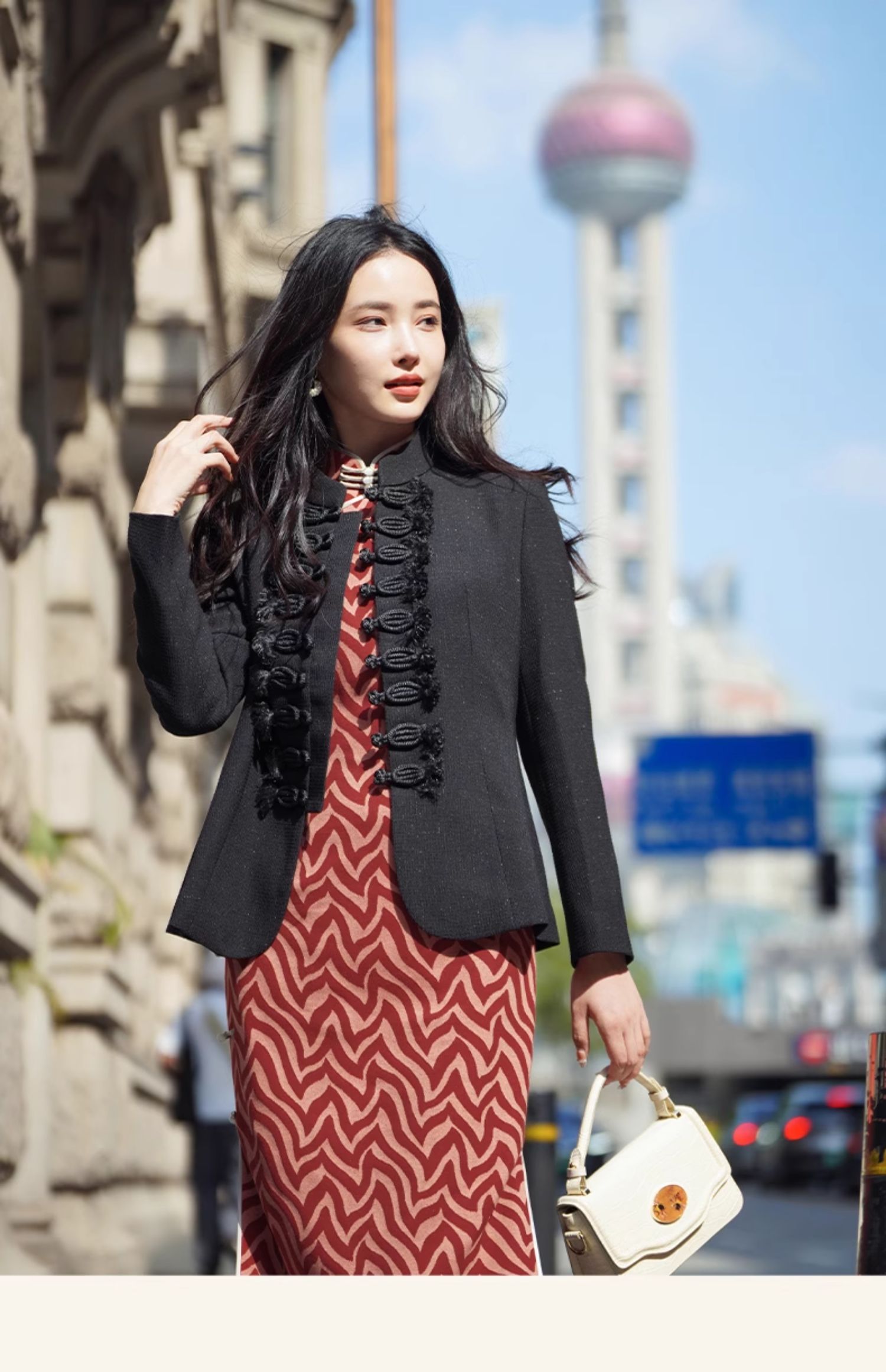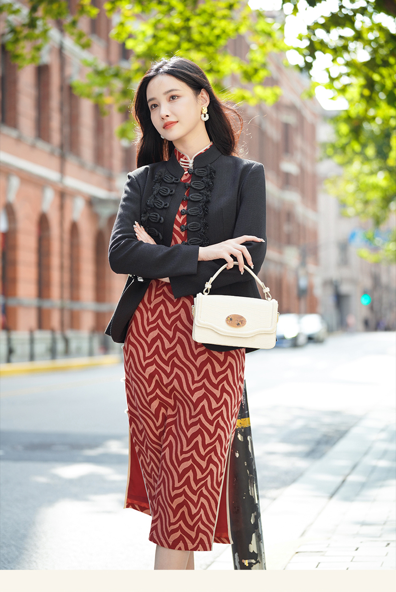 上海逸红颜海悦2025年冬季针织旗袍改良版连衣裙女长袖珊瑚红条纹