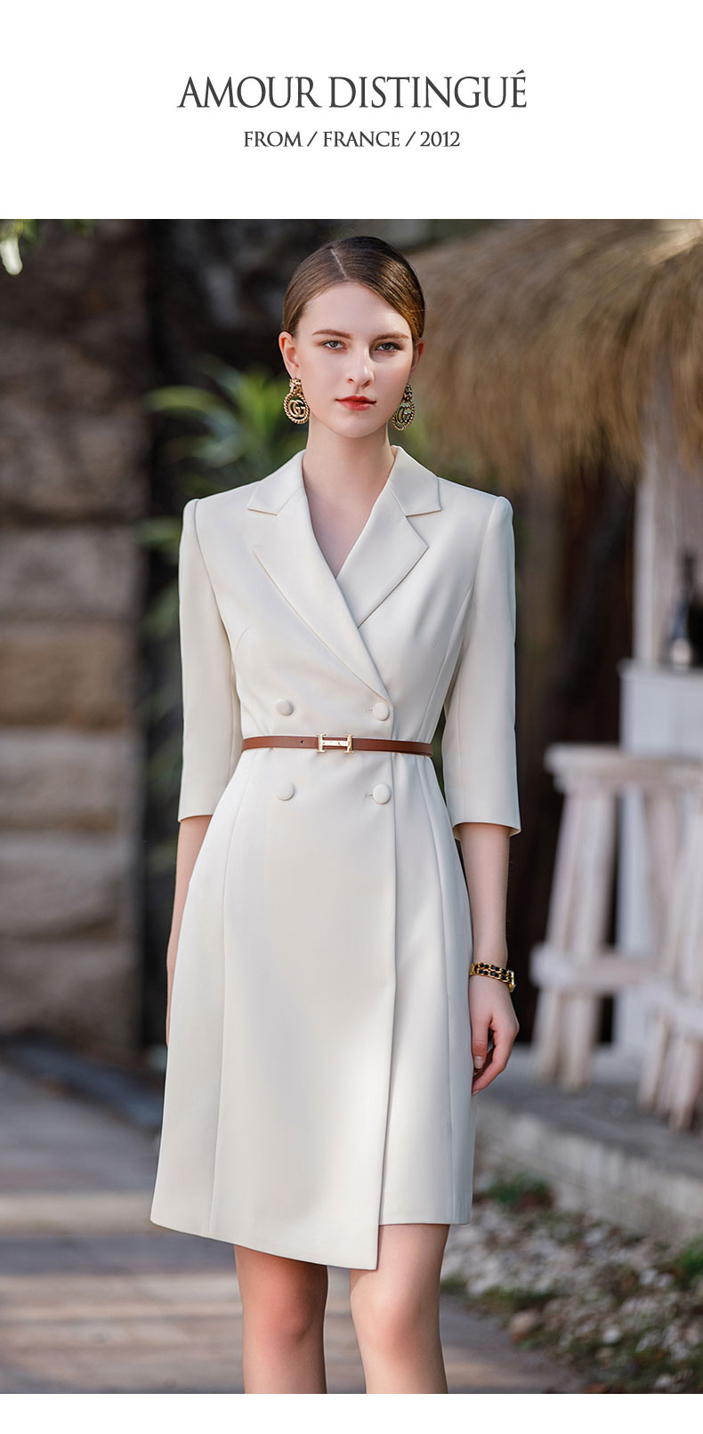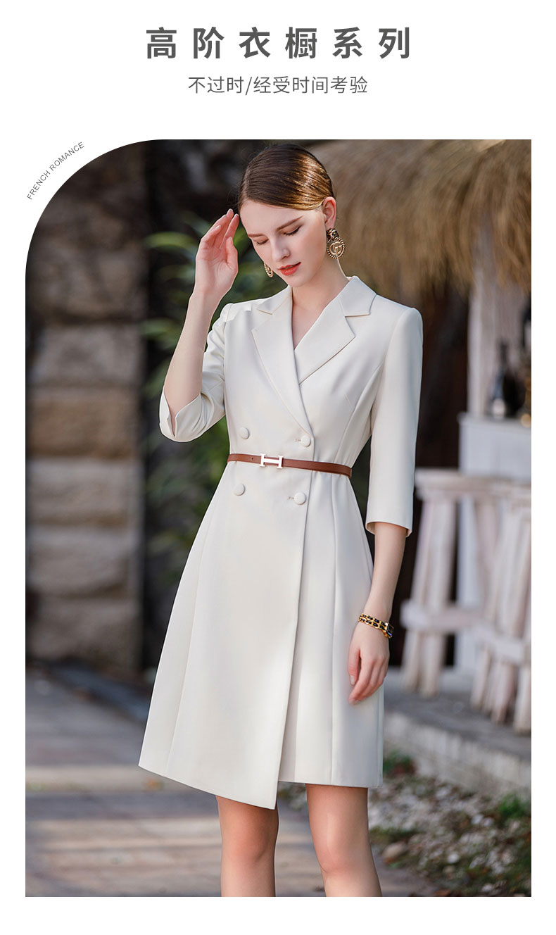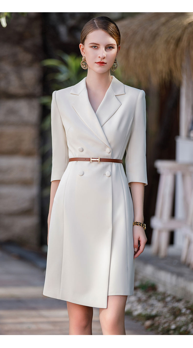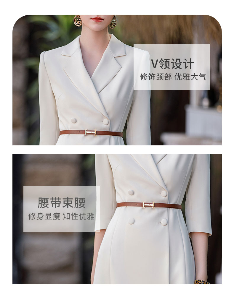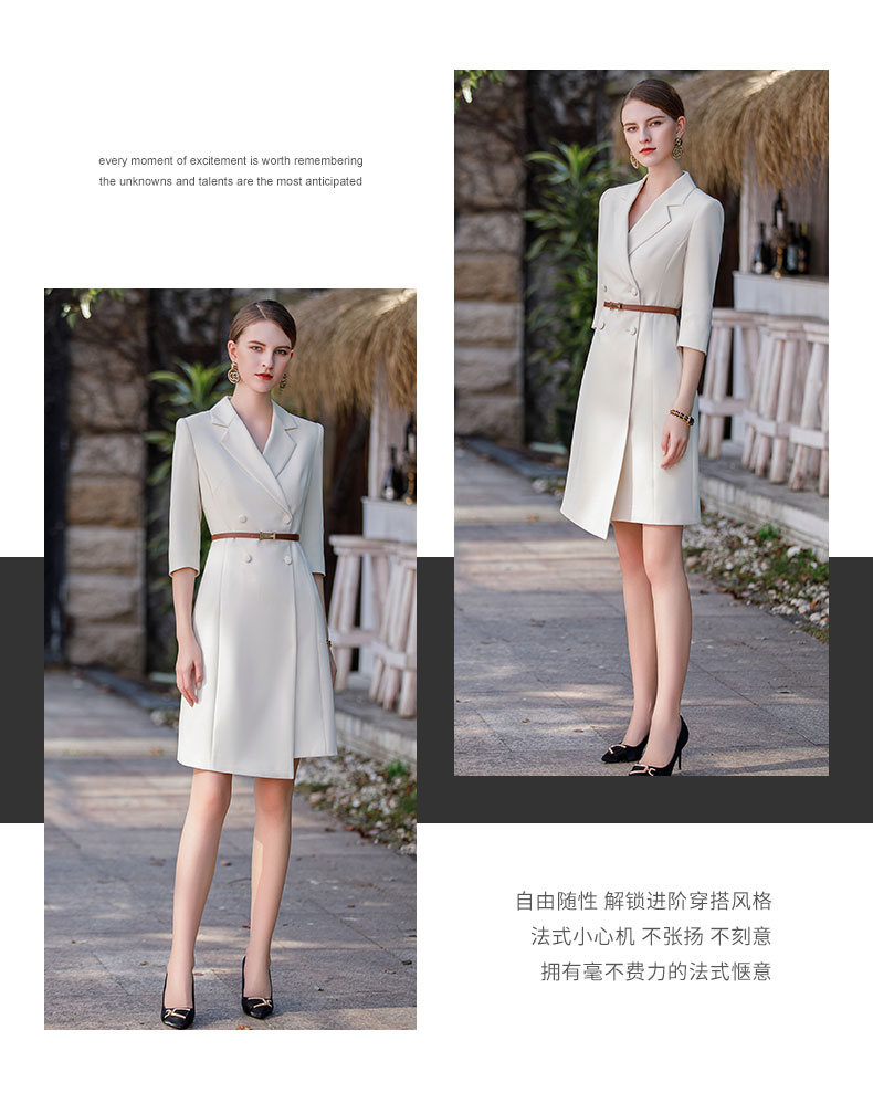 送腰带!浅色职业装女2023新款西装连衣裙不规则显瘦工作服主持人正装裙