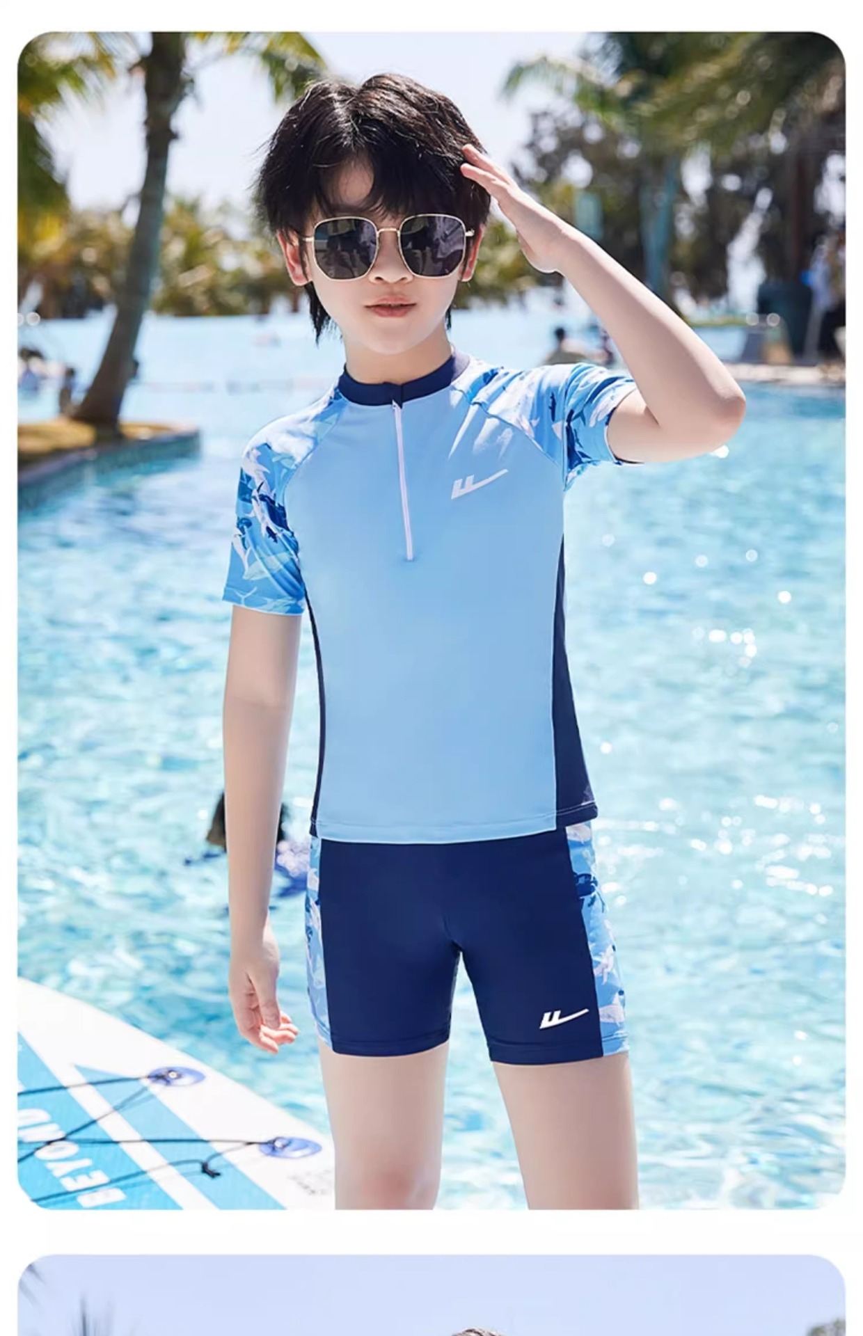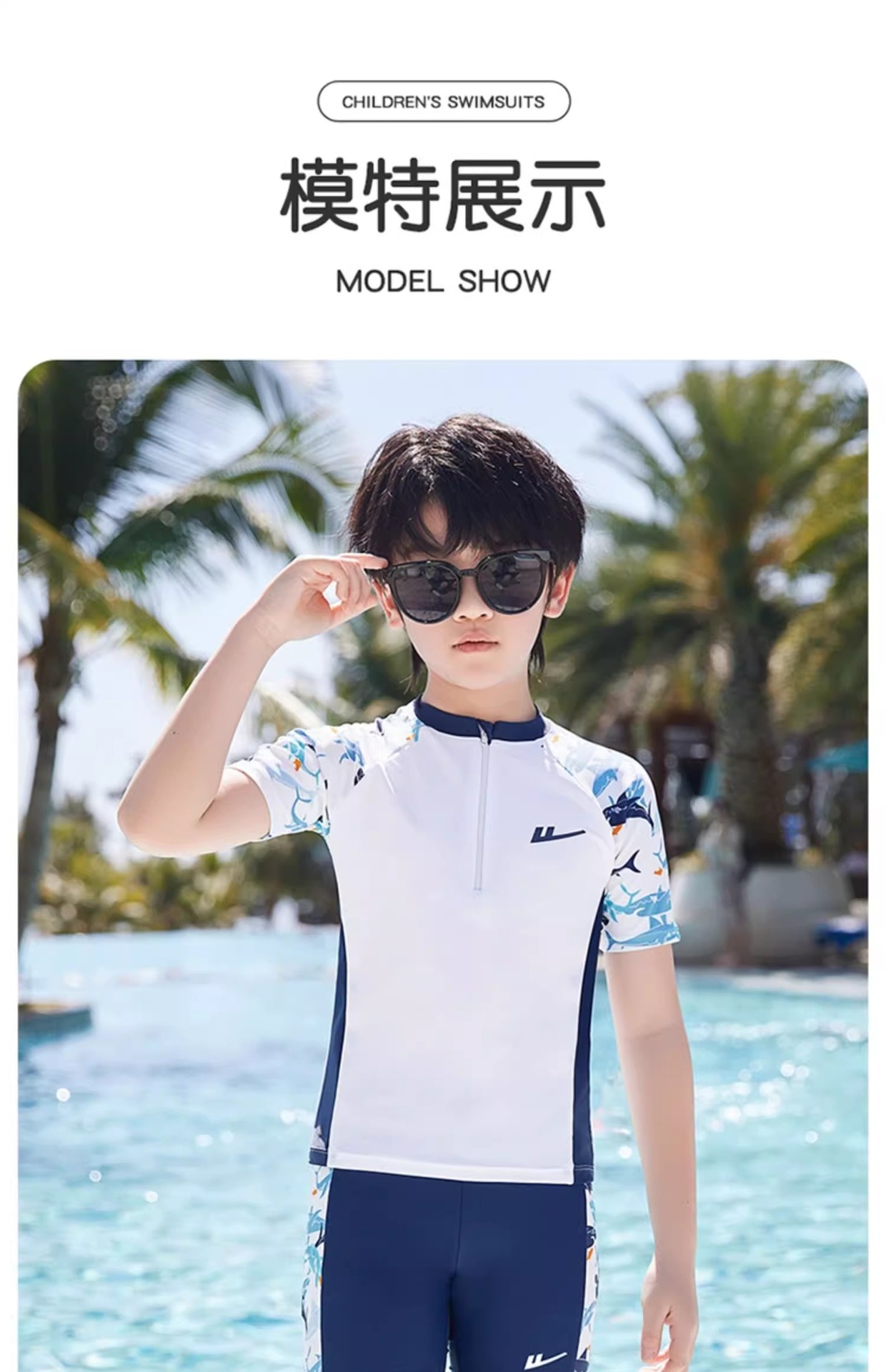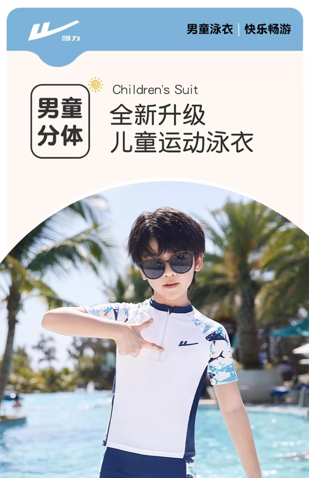 回力儿童泳衣男童中大童2024新款男孩分体游泳衣青少年泳裤套装_ym