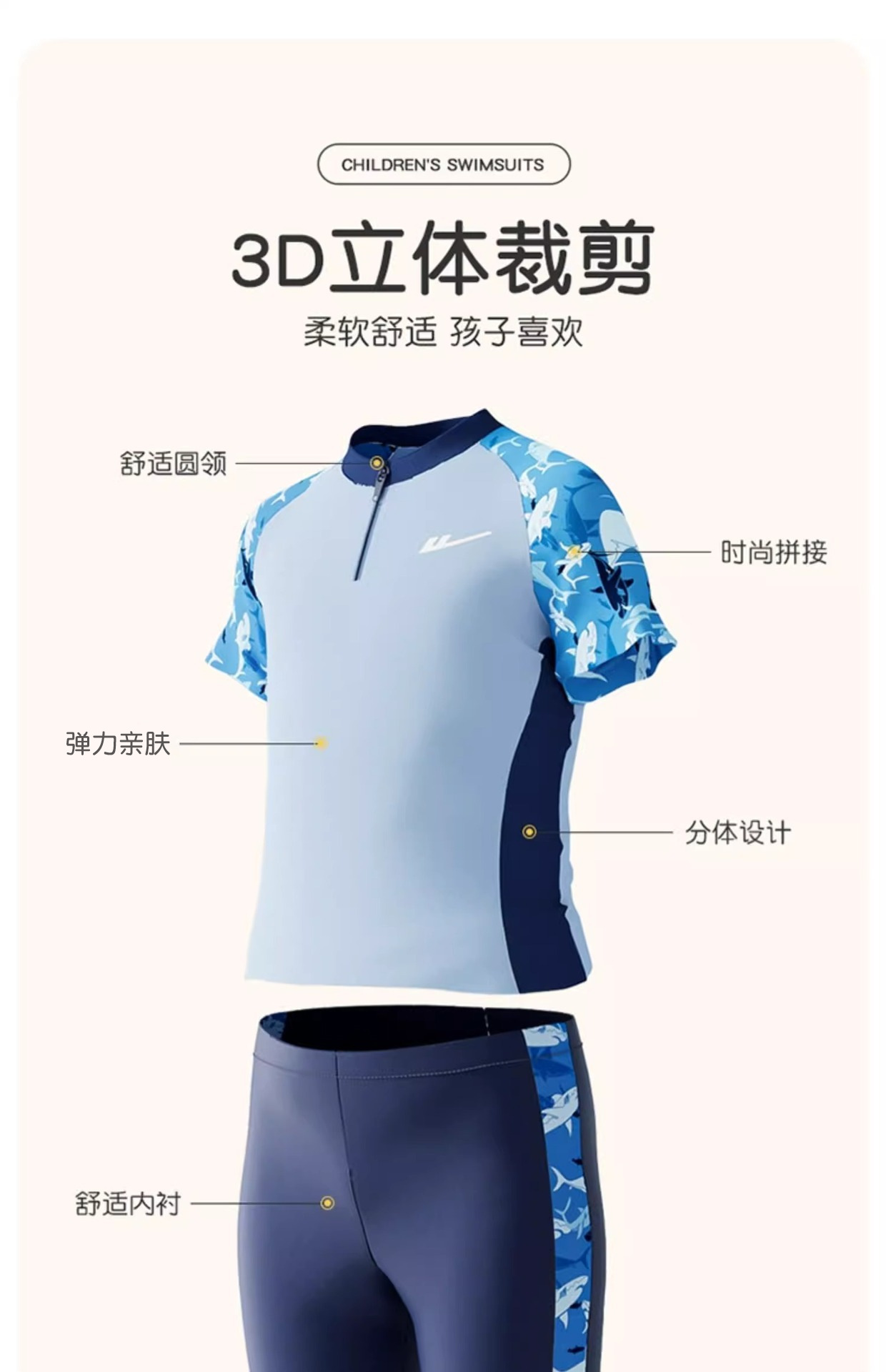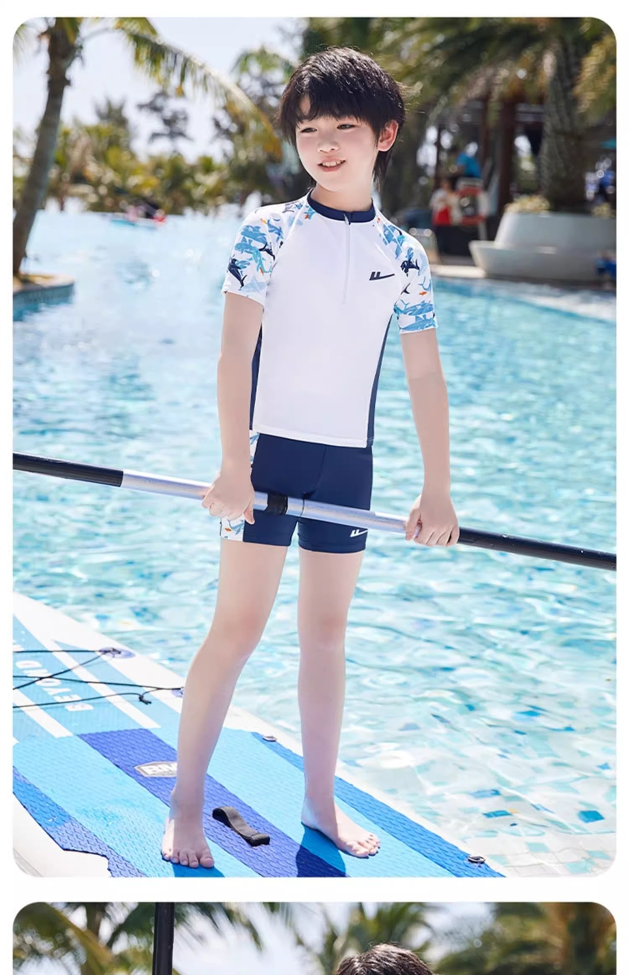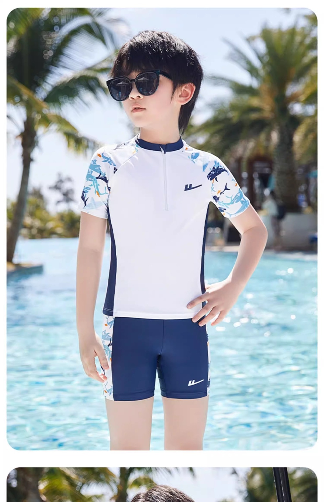 回力儿童泳衣男童中大童2024新款男孩分体游泳衣青少年泳裤套装_ym
