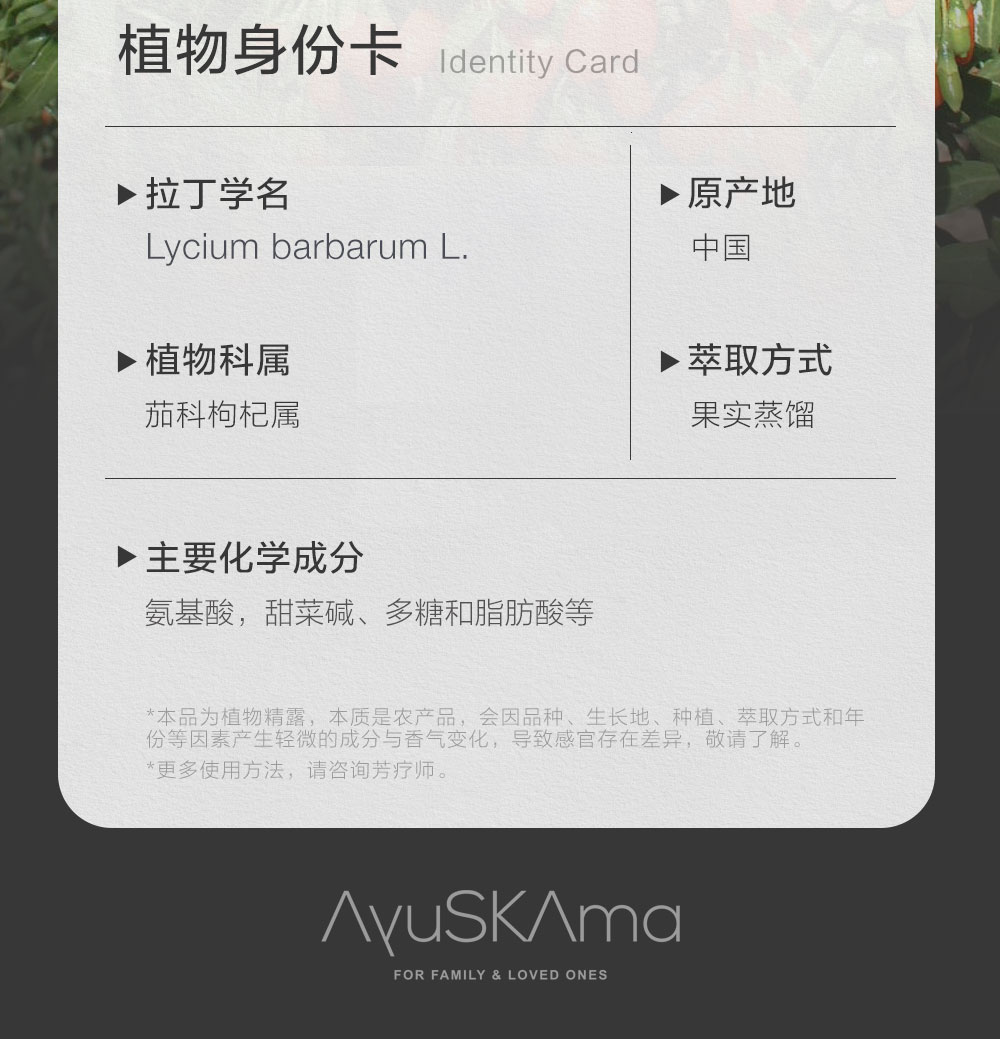 AyuSkAma的各种精露,也确实是太厉害!所谓精露,就是以提取露为目的,并且符合一系列标准提取的芳香蒸馏液,含有更丰富、更高含量的芳香分子,也叫饱和纯露。简单说,可以理解为,精露是更高品质的纯露,因为本身含有天然芳香分子可达到更好的活性防腐,从而避免添加其它防腐剂、酒精等添加剂,品质稳定,也更容易储存。相比普通纯露,精露的用量较小,减轻使用者的各种负担,同时有更好的效用。AyuSkAma的精露都是采用德国先进蒸馏设备,由蒸馏大师把控蒸馏细节,采用本地天然矿泉水和植物原料萃取蒸馏而成。